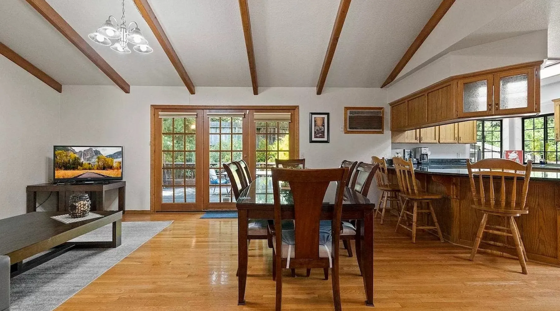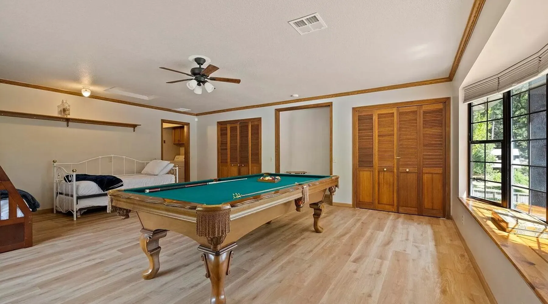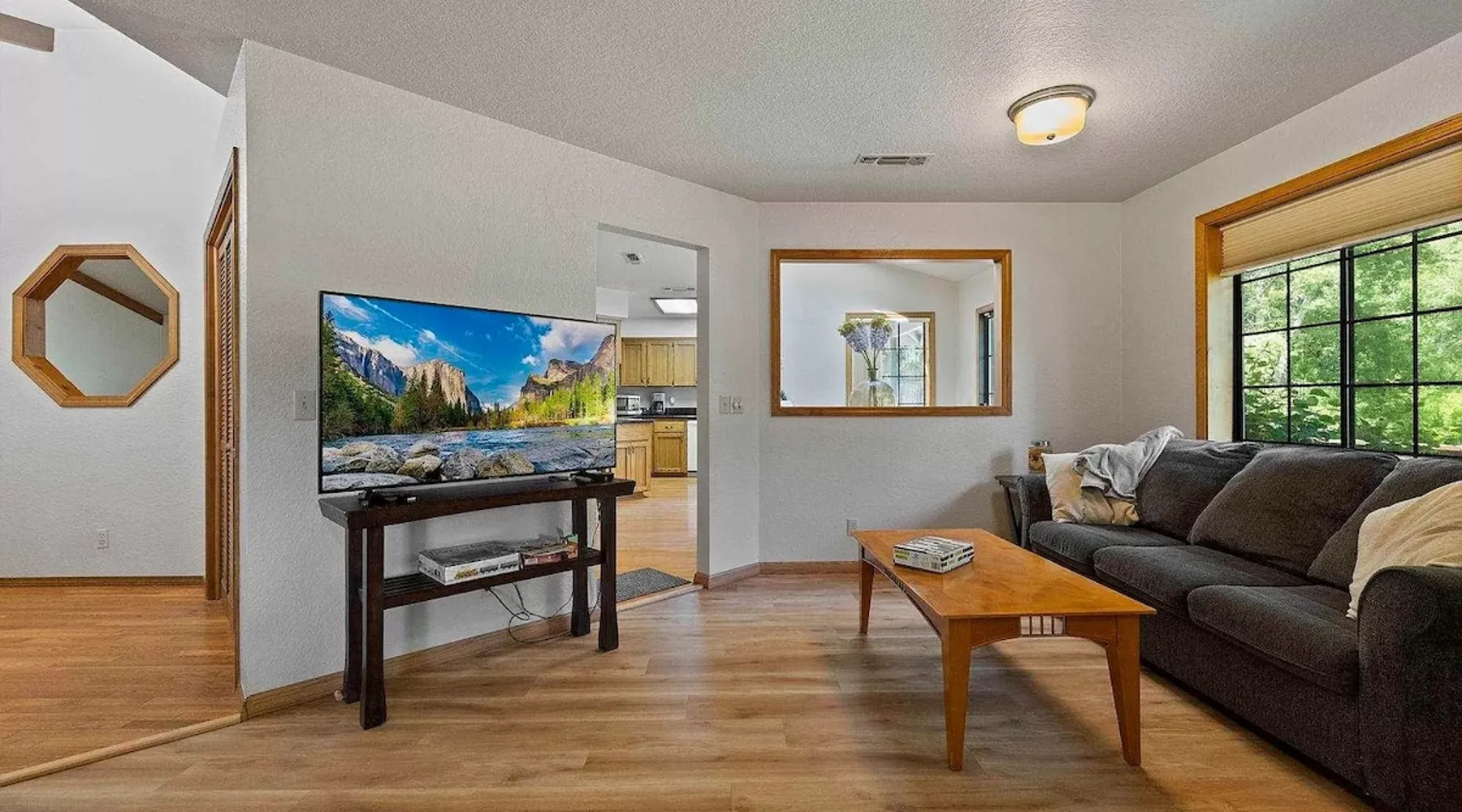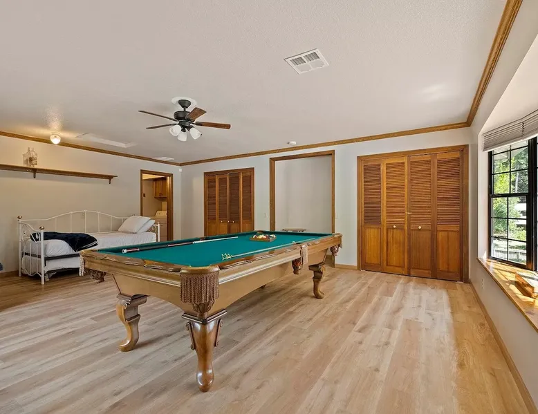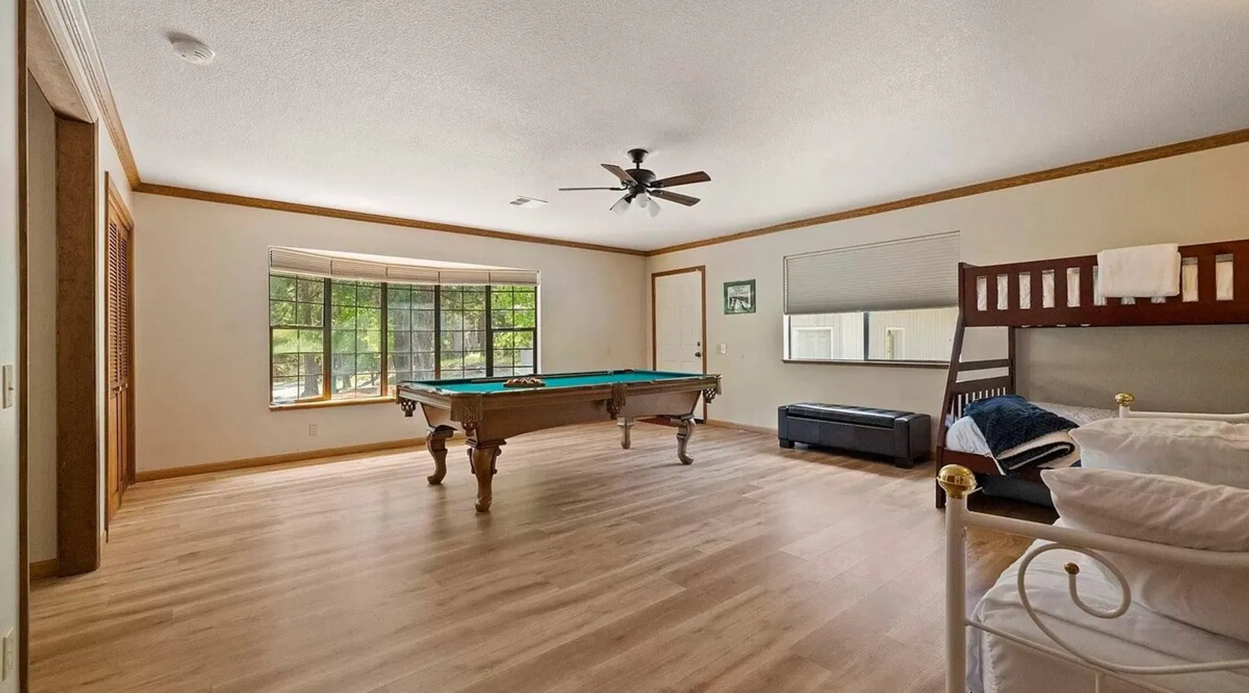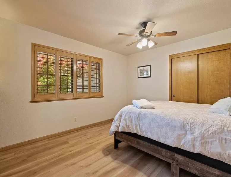 Escape to tranquil retreat in Twain Harte, nestled on over an acre of picturesque landscapes. Spacious and cozy 4-bedroom, 2-bathroom cabin welcomes up to 11 guests, ensuring everyone enjoys their own space. The expansive deck with a grill creates a romantic and relaxing haven for your evenings. If you crave activities, the nearby Golf Course and Twain Harte Lake are mere minutes away, while the exciting Dodge Ridge Ski Resort is just a 30-min drive. - Central A/C & Heat - Free WiFi Welcome to your ideal retreat for family & friends gatherings! ACCOMODATION → The master bedroom is a sanctuary with a king-size bed, a spacious dresser, a walk-in closet, and an attached master bath. The two guest bedrooms each feature queen-size beds, complete with dressers and closets for your convenience. The bonus room provides flexibility with a full-size bottom bunk, a single top bunk, and a day bed with a pull-out trundle, all equipped with twinsize mattresses. To accommodate larger groups, we provide 2 air mattresses along with extra pillows and linens. The bonus room boasts a pool table and a storage bench filled with engaging family games - enjoy! Our bathrooms are well-appointed with complimentary shampoo, conditioner, body wash, beach towels and a hair dryer for your comfort. We prioritize a clean and welcoming environment. Rest assured, all linens, towels, and floor mats are freshly washed and sanitized with disinfecting products. LIVING SPACE & KITCHEN → The common areas are designed for relaxation and entertainment. One space features a large sectional, a TV with streaming services, and a cozy fireplace. Another area includes a comfy sofa with TV, dining table for 8 and a kitchen island with seating for 3. Experience culinary convenience in our well-appointed kitchen, featuring a coffee maker, blender, waffle maker, microwave, and toaster. From pots and pans to an array of spices, silverware, and plates, every essential is within arm's reach. To kickstart your day, enjoy complimentary coffee grounds, creamer and sugar! OUTDOOR OASIS → Step outside and immerse yourself in the serenity of the spacious furnished back deck. Enjoy a dining area with a gas grill, sun loungers, a basketball hoop and an outdoor horseshoe pit. Ample driveway parking is at your disposal, while please note that the garage is currently inaccessible to guests. LOCATION → Experience both tranquility for a peaceful getaway and excitement for adventurous sightseeing in this stunning location, surrounded by breathtaking scenery. - 4 Min from downtown Twain Harte - 6 Min from the 9-hole Twain Harte Golf Course and Twain Harte lake - 30 Min from Dodge Ridge Ski Resort and Black Oak Casino Finally, some heartfelt words from our valued guests: ***** “A group of friends stayed at the house over the weekend and it exceeded our expectations. We really enjoyed our visit, especially the private setting of the home. We had a fun time with the horse shoe pits and pool table. The kitchen was stocked nicely and accommodated our needs for several cooked meals. The two living areas were great, and the beds were comfortable. Overall, it was just a really relaxing, beautiful, and fun place to stay. It was a great value, and I'd love to stay again.” - Erik, June 2023 “Really underrated place loved the stay, loved the host, really good stay for anyone with family and friends.” - Uriel, July You will have exclusive access to the property, ensuring privacy and enjoyment during your stay. * Guests will have full access to their rental along with all the appliances and amenities included with your stay, excluding the garage. * Keyless entry into the home. Your check-in process is just a code away for added convenience. * Feel free to contact us for any service at any time; from 10am-6pm and 24/7 in an emergency! * If you have any questions about your stay at all, please feel free to ask us for assistance; we'll do our best to help make this an enjoyable experience for everyone involved! Just some of the cabin's amenities to note: ~Keyless Entry ~Indoor Fireplace ~Fully Equipped Kitchen ~Central A/C and Heating (rare in this area!) ~Free Guest Wifi ~Complimentary Coffee ~Large, Furnished Back Deck ~Gas Grill ~Basketball Hoop ~Complimentary Shampoo, Conditioner, and Body Wash ~Free Driveway Parking (can fit multiple cars) ~ Streaming Services for TV ~Pool Table ~Board Games & Outdoor Horseshoe Pit ~Beach towels ~Blow dryer ~Additional pillows and linens if you want to bring an air mattress! Other things to note * Always check the weather before your trip and pack accordingly. * A welcome email with the key code will be sent a few days before your arrival. * Please note that cell service can be unreliable in the area, so it's advisable to have essential information written down before arriving. * Due to fire season from May to October, fires of any kind are strictly prohibited on the premises. * To ensure a healthy and pleasant stay for everyone, we maintain a strict no-smoking policy. This policy encompasses traditional smoking, vaping, and the use of electronic cigarettes. We kindly ask that you refrain from smoking in any form within the premises. * No parties or events are allowed on the property to maintain the peaceful environment around. In case of any damage or mess caused during your stay, penalties may apply. * Guests agree to pay for damages they have caused. * To maintain a harmonious environment for all our guests, we have a strict ‘no pets’ policy. * For the safety of both guests and property, external security cameras have been installed around the house. If you have any concerns, please inform us. There are absolutely no cameras inside the house. Additional Rules Make your stay a stress-free experience by following our house rules: * Check-in time starts at 4 PM and check-out time is before 11 AM to allow us to prepare for the next guests. * This tranquil neighborhood promotes serenity. We appreciate your cooperation