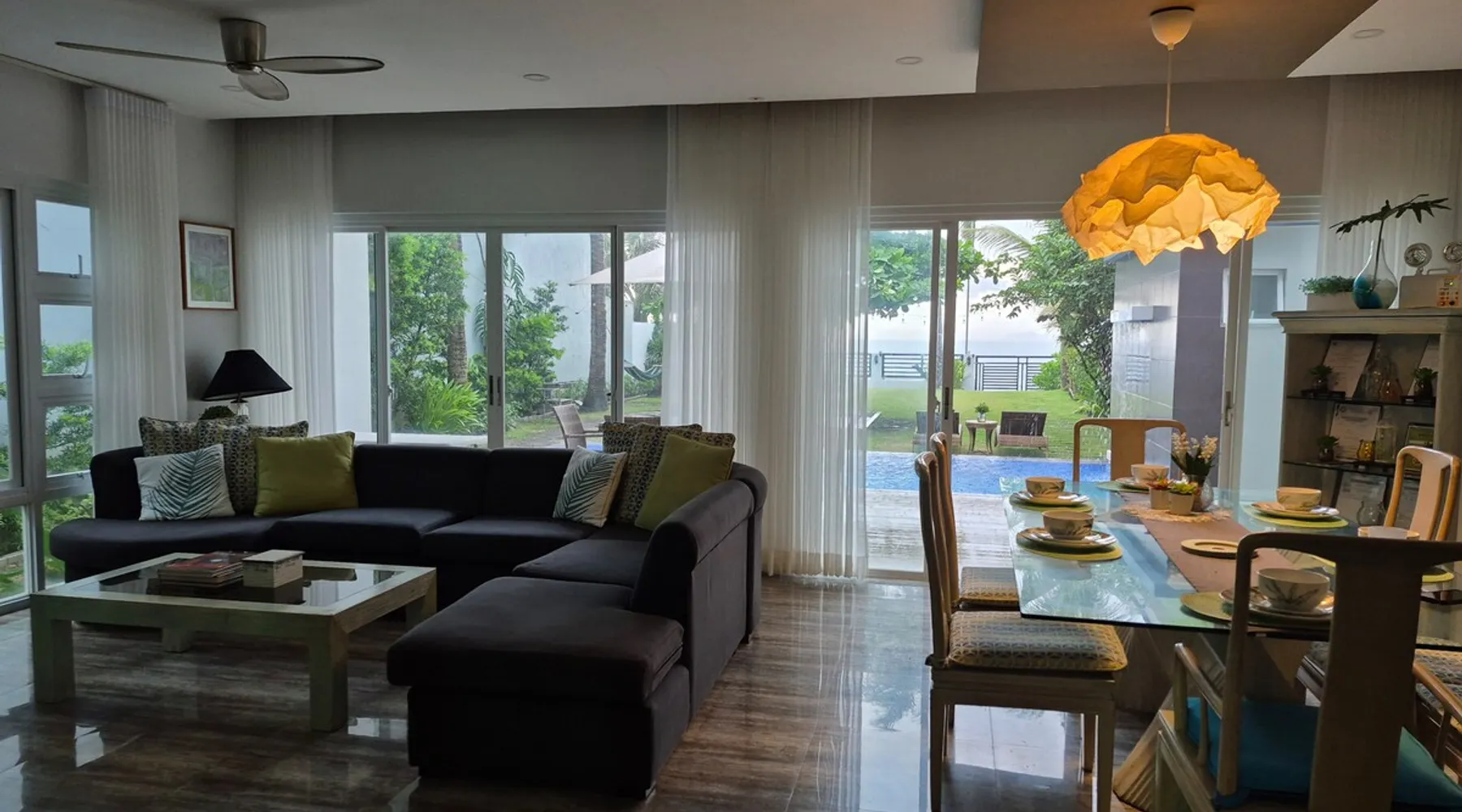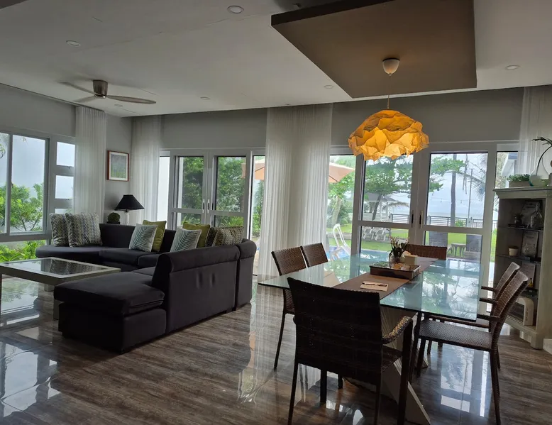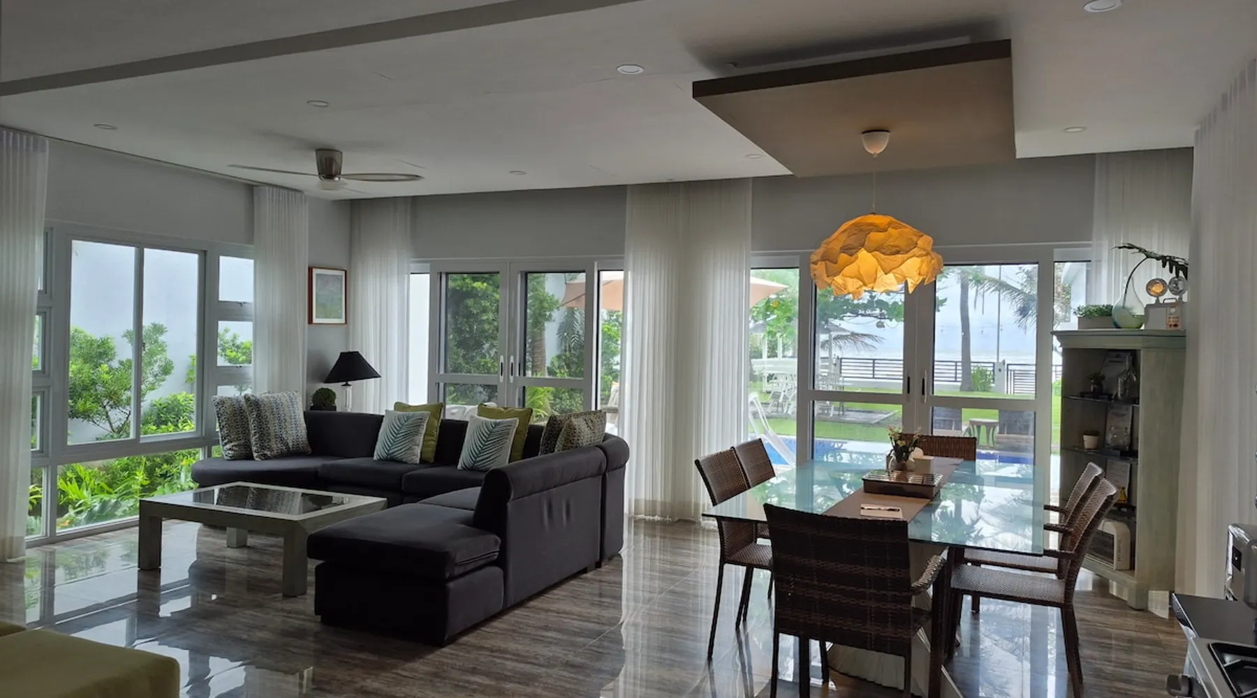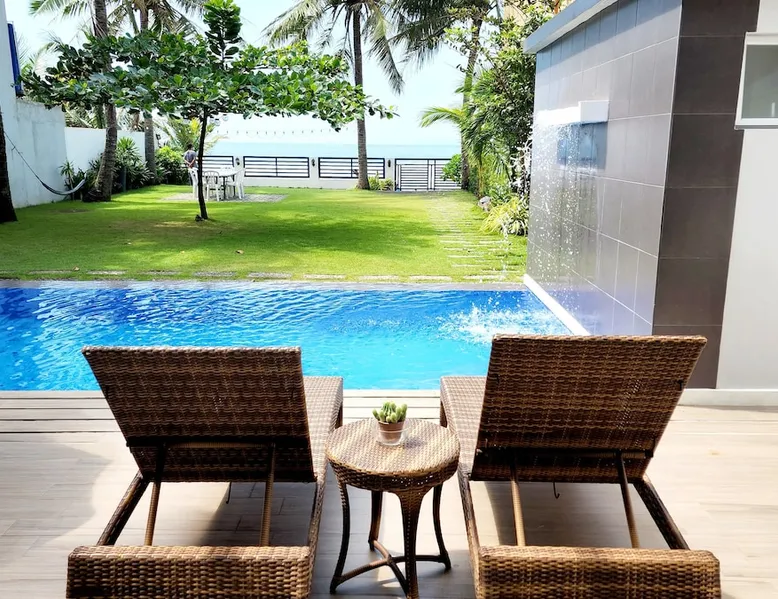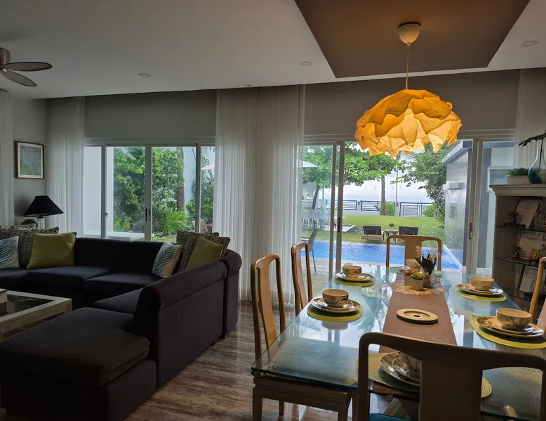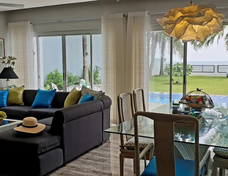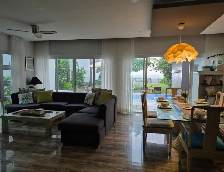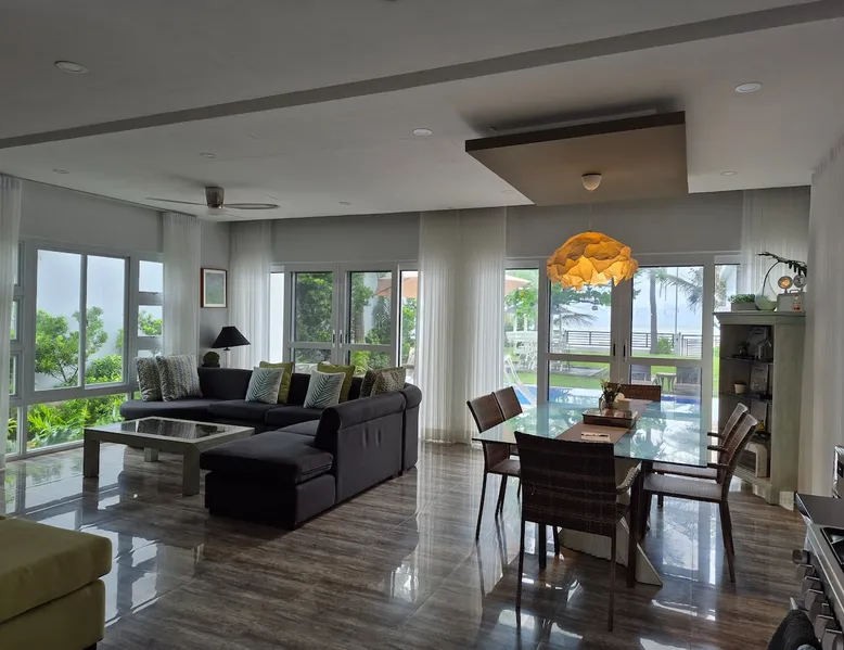 Live in an exclusive beachfront home with pool, carefully designed and boasts of spacious lawn and garden. Located at the meeting of two coastal towns of Lian and Nasugbu in Batangas, your Casita is an oasis of real peace and quiet, just 30 minutes away from Twin Lakes in Tagaytay. It is ideal for family and friends wanting to escape to a private hideaway not far from the city. Open for reservations from August 2020. The space Grab a book from the shelves, a beach chair and a beer and head to the water. Here you can sit and watch the boats go by and melt the tension away as you feel the breeze and listen to the calming sound of the waves. The sunset, on a lovely day, is breathtaking! The Casita is your own private hideaway. The two adjoining bedrooms upstairs allow for a quiet family bonding or a romantic private moment for a couple in each room. The third and 4th bedrooms are ideal for a few more guests to retire to after a private dinner party by the pool which, when lighted, provides an idyllic backdrop for a memorable stay. The open-style living/dining/kitchen area is clad in shimmering white paint and glass curtains. Its internal decors are personal and touching, making for a warm, comfortable environment. Like all the rooms, this area is air-conditioned. A large smart TV is on the wall. The fully equipped kitchen is provided with pots and pans, silverwares and dinnerwares and all that can make you feel you're home. Guest access The guests can have an access to the entire villa, the swimming pool and garden. The beach is for you to explore. I love sharing my home and have it enjoyed by guests who would respect and appreciate it and all that come with it. The fantastic view of the ocean, stunning sunsets and a sandy beach are yours to admire. Other things to note Smoking is not allowed inside the villa Use of illegal substances are not allowed inside the property Firearms and ammunitions of any kind with or without a permit is not allowed inside the property Other deadly weapons are not allowed inside the property Pets are not allowed without permission Tinkering with the electricals, plumbing and other parts of the house are not allowed Dumping of wastes in the waters are not allowed. The Caretaker and the Housekeeper who live just across the street are available to attend to your needs, from check in to 10PM. A small amount of gratuity will be appreciated for a job well done. Other things to note: The villa has 4 bedrooms which are furnished with beds good for 12 guests maximum. Please include your helpers and drivers in the count. Children 5 years old and below will not be counted as they can share beds with their parents. The sofas and chairs in the living room can be temptingly comfortable for sleeping but please use the bedrooms. You may bring cooked food and food to cook in the kitchen. A Personal Videoke is provided for your enjoyment. please use it carefully Parties and loud music are not allowed. We can provide banana leaves for boodle fights. Please turn off aircon and lights when not in use. Conserve water.