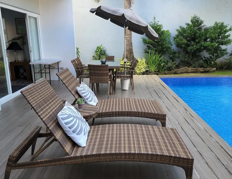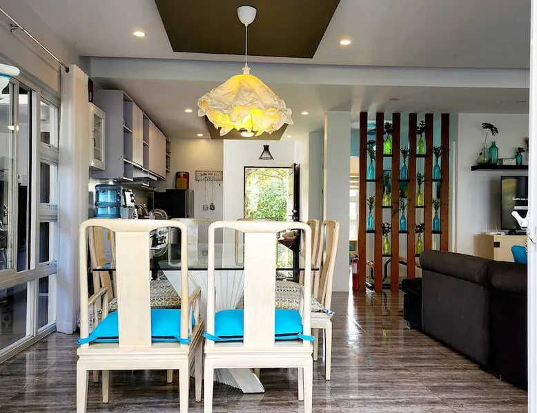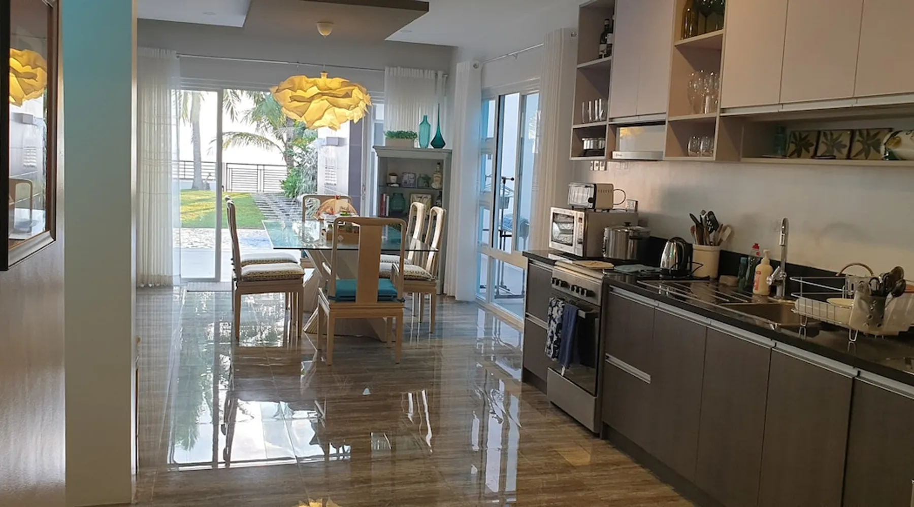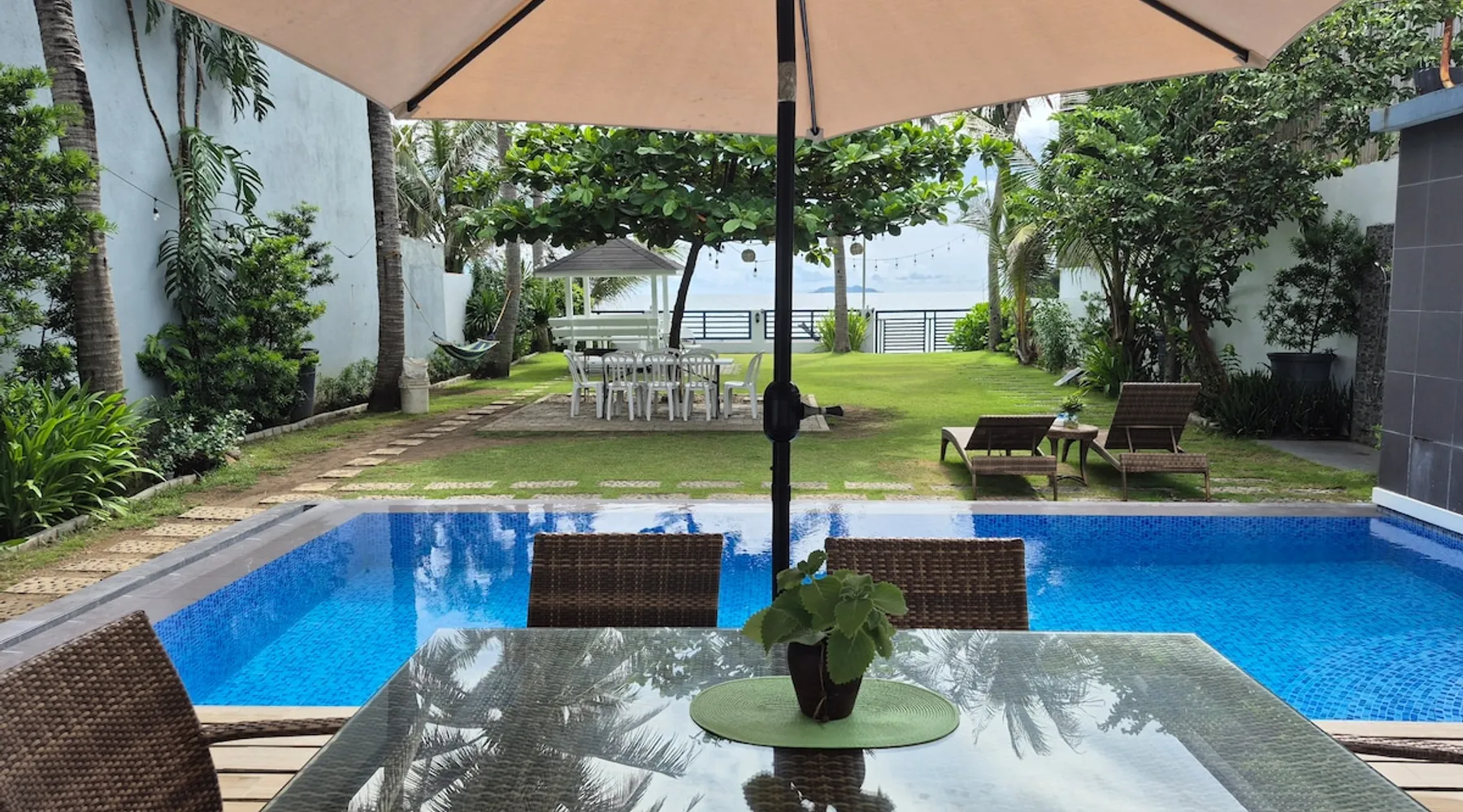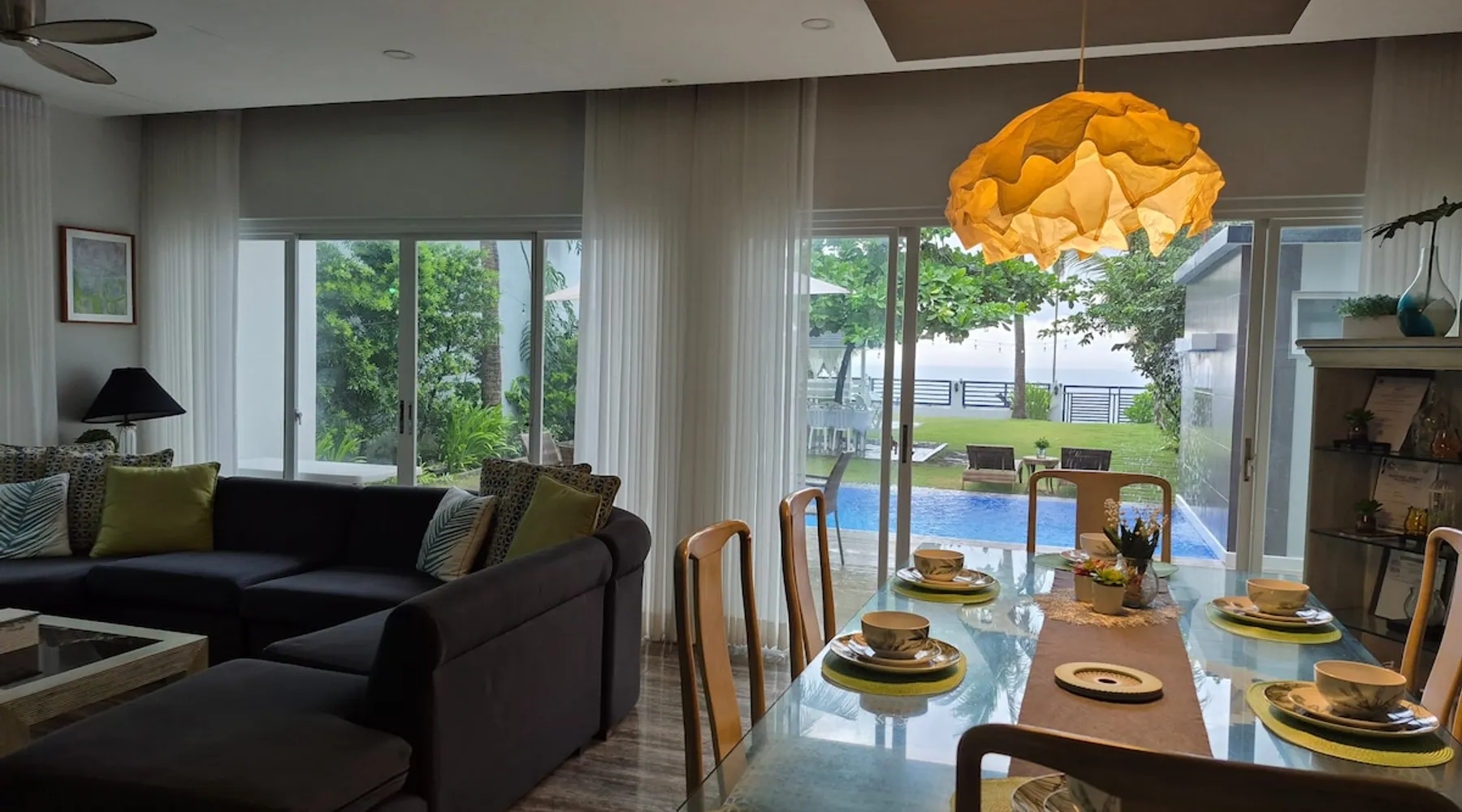 Live in an exclusive beachfront home with pool, carefully designed and boasts of spacious lawn and garden. Located at the meeting of two coastal towns of Lian and Nasugbu in Batangas, your Casita is an oasis of real peace and quiet, just 30 minutes away from Twin Lakes in Tagaytay. It is ideal for family and friends wanting to escape to a private hideaway not far from the city. Open for reservations from August 2020. The space Grab a book from the shelves, a beach chair and a beer and head to the water. Here you can sit and watch the boats go by and melt the tension away as you feel the breeze and listen to the calming sound of the waves. The sunset, on a lovely day, is breathtaking! The Casita is your own private hideaway. The two adjoining bedrooms upstairs allow for a quiet family bonding or a romantic private moment for a couple in each room. The third and 4th bedrooms are ideal for a few more guests to retire to after a private dinner party by the pool which, when lighted, provides an idyllic backdrop for a memorable stay. The open-style living/dining/kitchen area is clad in shimmering white paint and glass curtains. Its internal decors are personal and touching, making for a warm, comfortable environment. Like all the rooms, this area is air-conditioned. A large smart TV is on the wall. The fully equipped kitchen is provided with pots and pans, silverwares and dinnerwares and all that can make you feel you're home. Guest access The guests can have an access to the entire villa, the swimming pool and garden. The beach is for you to explore. I love sharing my home and have it enjoyed by guests who would respect and appreciate it and all that come with it. The fantastic view of the ocean, stunning sunsets and a sandy beach are yours to admire. Other things to note Smoking is not allowed inside the villa Use of illegal substances are not allowed inside the property Firearms and ammunitions of any kind with or without a permit is not allowed inside the property Other deadly weapons are not allowed inside the property Pets are not allowed without permission Tinkering with the electricals, plumbing and other parts of the house are not allowed Dumping of wastes in the waters are not allowed. The Caretaker and the Housekeeper who live just across the street are available to attend to your needs, from check in to 10PM. A small amount of gratuity will be appreciated for a job well done. Other things to note: The villa has 4 bedrooms which are furnished with beds good for 12 guests maximum. Please include your helpers and drivers in the count. Children 5 years old and below will not be counted as they can share beds with their parents. The sofas and chairs in the living room can be temptingly comfortable for sleeping but please use the bedrooms. You may bring cooked food and food to cook in the kitchen. A Personal Videoke is provided for your enjoyment. please use it carefully Parties and loud music are not allowed. We can provide banana leaves for boodle fights. Please turn off aircon and lights when not in use. Conserve water.