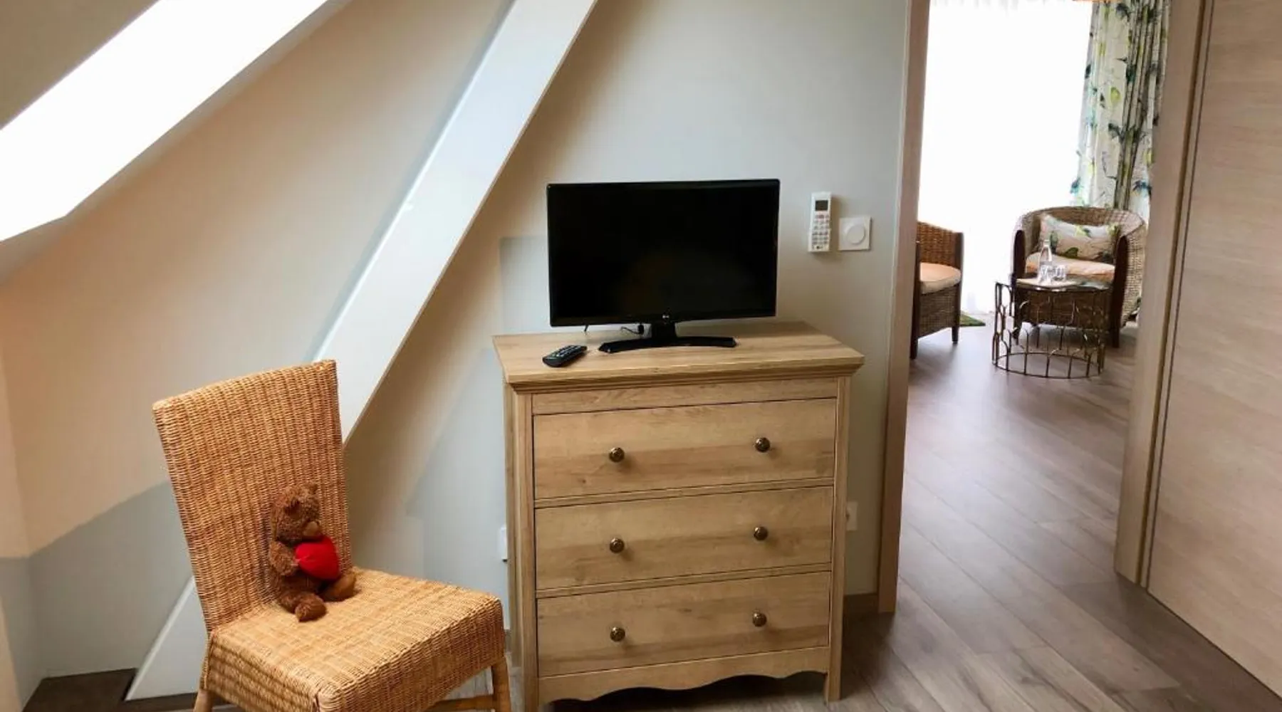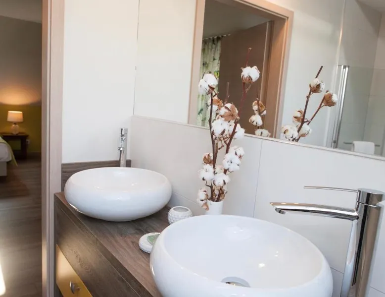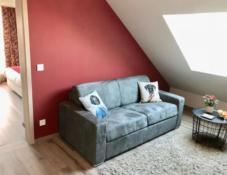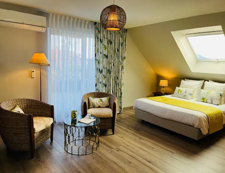 Comfortable Accommodations: Maison d'hotes Coeur de Village Alsace & spa in Rohrwiller offers family rooms with private bathrooms, air-conditioning, and garden views. Each room includes a tea and coffee maker, free toiletries, and a work desk. Exceptional Facilities: Guests can relax on the sun terrace or in the garden, enjoy free WiFi, and take advantage of the outdoor play area and picnic spots. Additional amenities include an electric vehicle charging station, bicycle parking, and free on-site parking. Delicious Breakfast: A buffet breakfast is served daily, featuring local specialties, fresh pastries, cheese, fruits, and juice. The property also offers a coffee shop and outdoor seating areas. Nearby Attractions: Located 14 mi from The Robertsau Forest and 19 mi from Strasbourg Cathedral, the bed and breakfast provides easy access to skiing, walking tours, and cycling. This suite consists of 1 living room, 1 separate bedroom and 1 bathroom with a walk-in shower and free toiletries. The air-conditioned suite provides a flat-screen TV with satellite channels, soundproof walls, a tea and coffee maker, executive lounge access as well as garden views. The unit offers 2 beds.