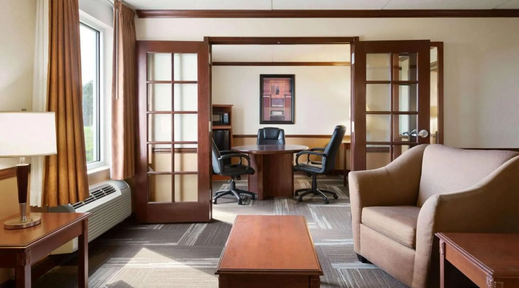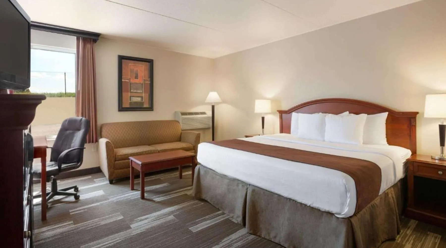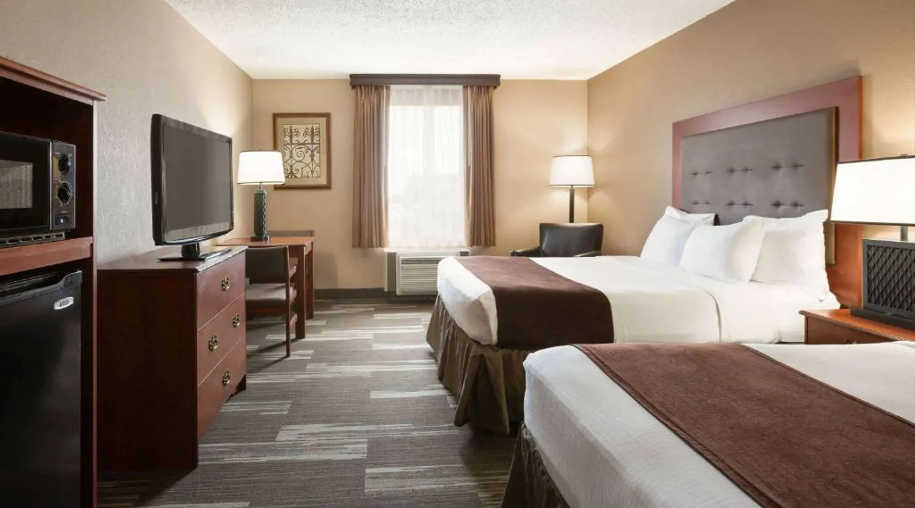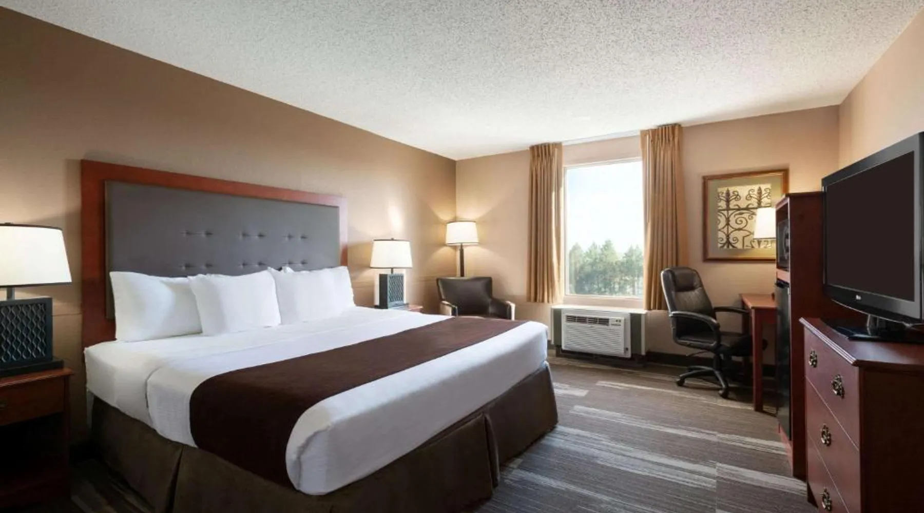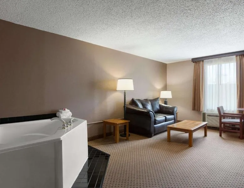 Comfortable Accommodations: Rooms feature air-conditioning, private bathrooms with free toiletries, tea and coffee makers, and work desks. Additional amenities include free WiFi, flat-screen TVs, and complimentary toiletries. Dining and Leisure: The on-site restaurant serves American cuisine for lunch and dinner. Guests can also enjoy the bar, indoor swimming pool, fitness center, and hot tub. Free on-site parking is available. Convenient Location: Located in Mandan, the hotel is 9.9 mi from Bismarck Municipal Airport and near attractions such as North Dakota State Capitol (7.5 mi), Bismarck State College (6.2 mi), and Dakota Zoo (6.8 mi). Guests appreciate the friendly staff and excellent service. Providing free toiletries, this double room includes a private bathroom with a bath, a shower and a hairdryer. The double room provides air conditioning, a tea and coffee maker, a wardrobe, a carpeted floor and a flat-screen TV with cable channels. The unit offers 1 bed.