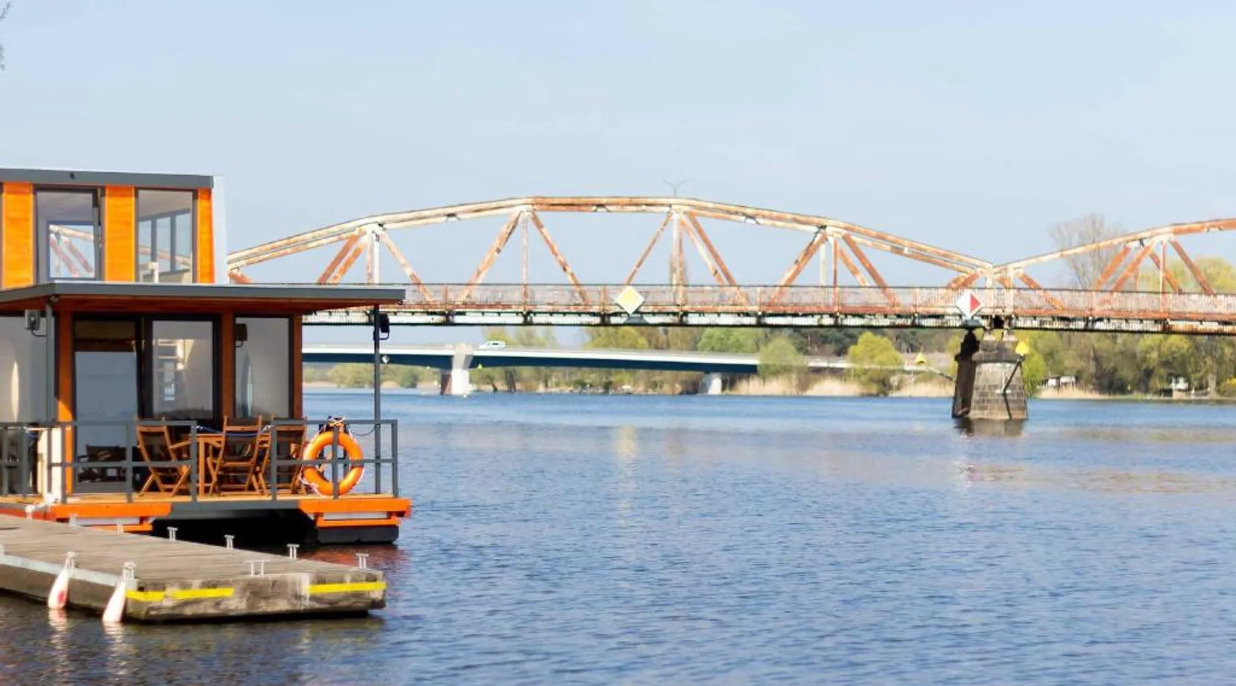 Set on the lake shores of Plauer See on the grounds of an unreovated Baroque castle, Gästehaus Schloss Plaue offers accommodations featuring free Wi-Fi and a terrace. Brandenburg an der Havel center is a 10-minute drive away. The property offers comfortable hotel rooms, suites and apartments set in an annex building near the castle. While some rooms offer garden views, all are equipped with a TV and a private bathroom. While an optional buffet breakfast is available for an additional fee at Gästehaus Schloss Plaue, the on-site restaurant serves up traditional regional dishes. Providing a bike and boat rental service, Gästehaus Schloss Plaue is ideally located for guests looking to explore the surrounding area. Brandenburg an der Havel offers hiking, cycling and boating opportunities. With direct connections to Potsdam in 30 minutes and to Berlin in 1 hour, Brandenburg Main Train Station is located 7.5 mi from Gästehaus Schloss Plaue. Free parking is also provided. This unit is a floating holiday bungalow on the lake, safely fastened to a private jetty. It offers a lake view and access to the shore.