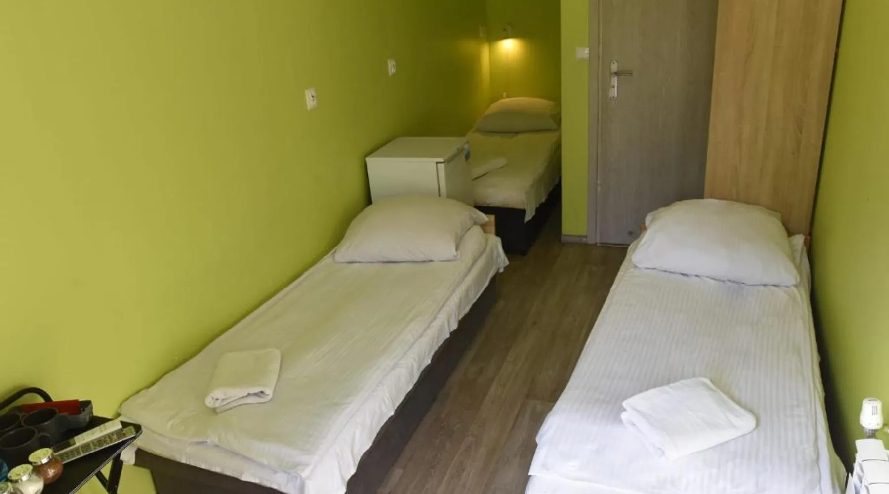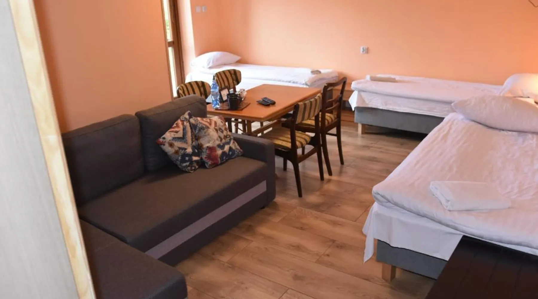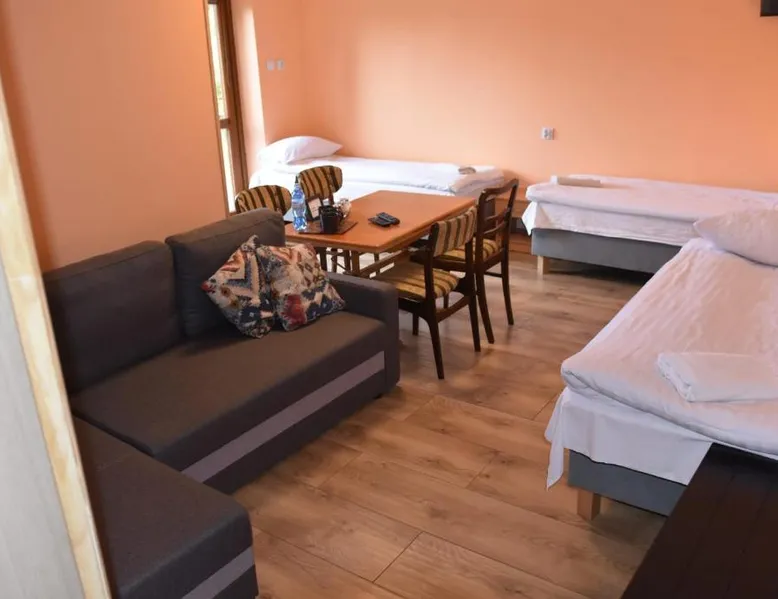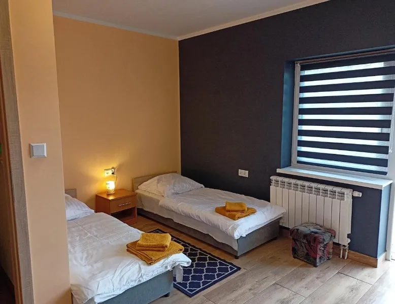 Comfortable Accommodations: Pokoje Mira in Torzym offers family rooms with private bathrooms, garden views, and comfortable sofa beds. Each room includes a private entrance, ensuring a peaceful stay. Outdoor Spaces: Guests can relax in the garden or on the terrace, enjoying free WiFi and outdoor seating areas. The property features an outdoor fireplace and barbecue facilities, perfect for outdoor gatherings. Facilities and Services: The homestay provides free on-site private parking, a shared kitchen, and a washing machine. Private check-in and check-out services, breakfast in the room, and a picnic area enhance the guest experience. Local Attractions: Located 52 mi from Zielona Góra Airport, Pokoje Mira is near attractions such as the Border Crossing Frankfurt (Oder) and Kleist Forum, each 24 mi away. Cycling enthusiasts can explore the surrounding area. Guests will find a stovetop, a refrigerator, kitchenware and an oven in the well-equipped kitchen. The double room also has a barbecue. The double room offers a washing machine, a private entrance, a terrace with garden views as well as a private bathroom featuring a shower. The unit offers 2 beds.