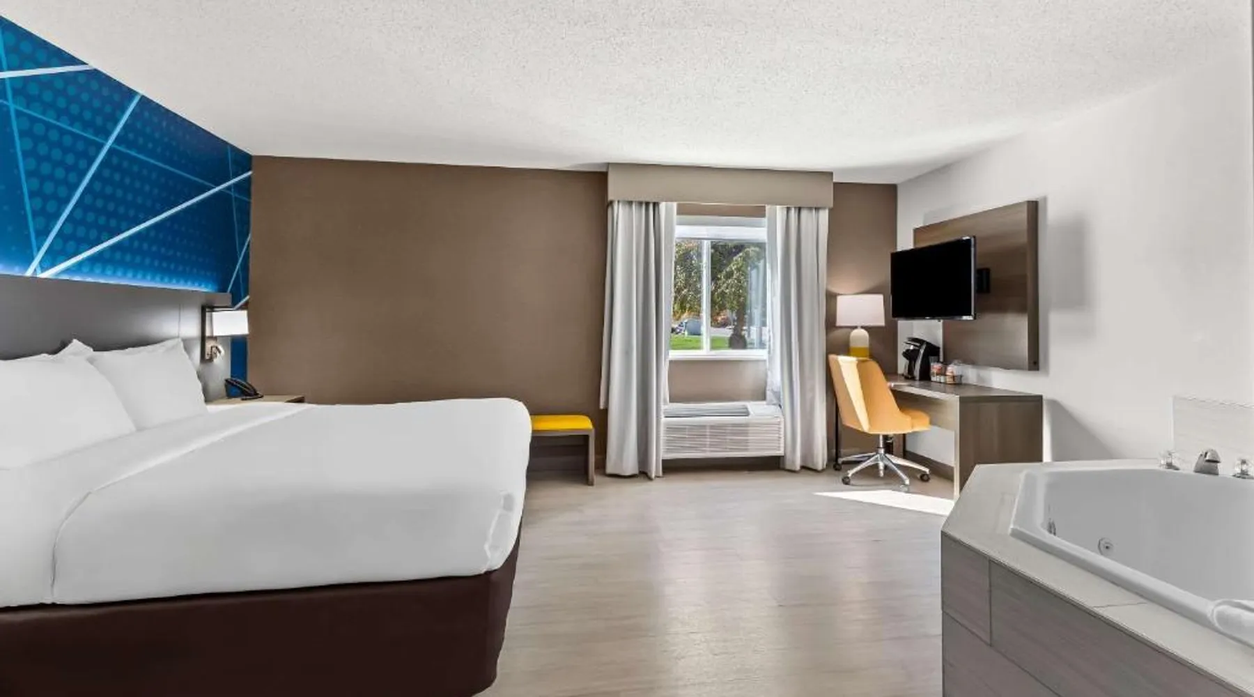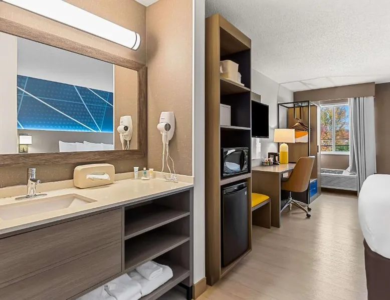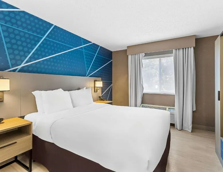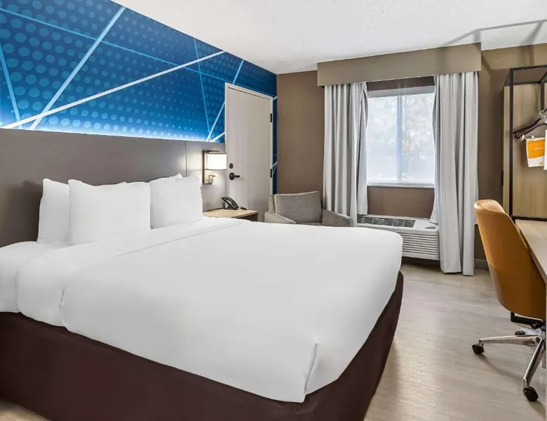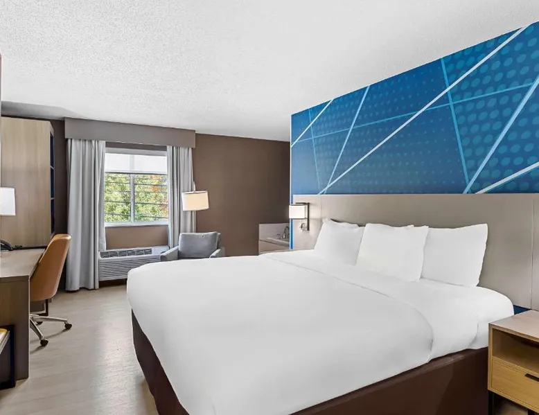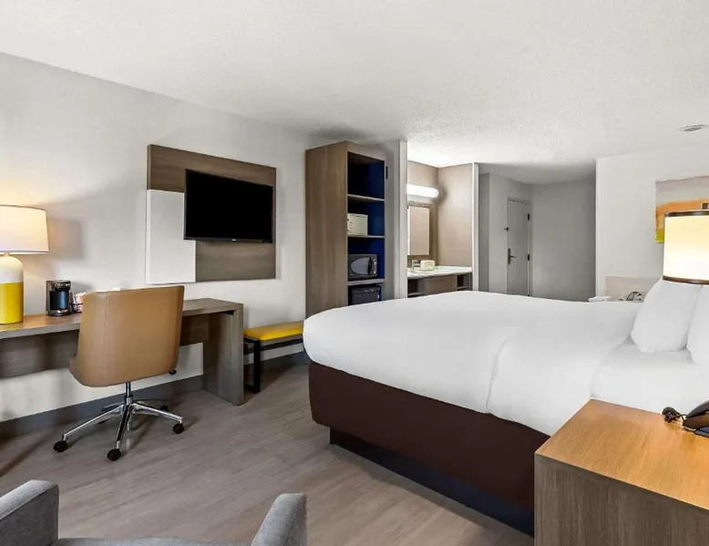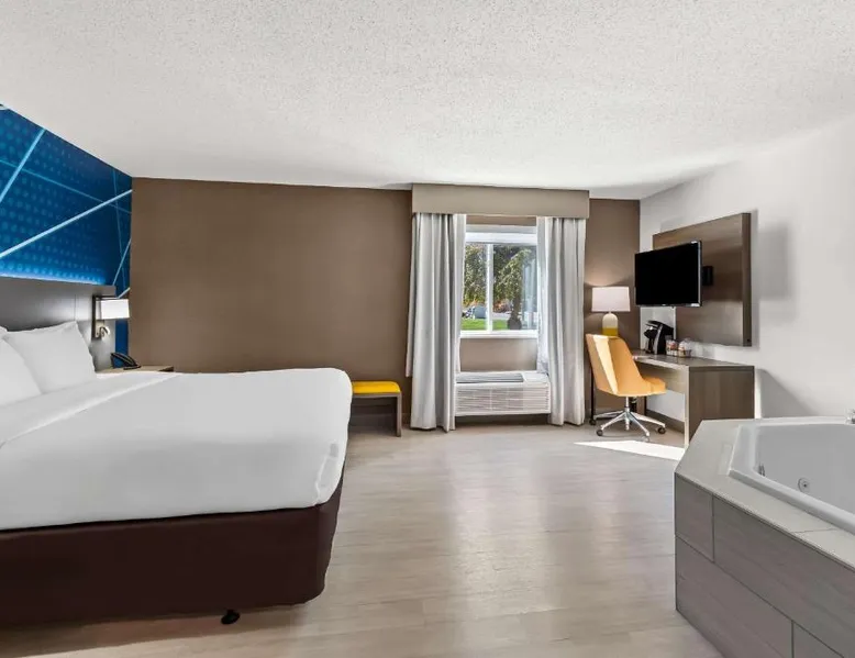 Comfortable Accommodations: Comfort Inn Painesville - Concord in Concord offers air-conditioned rooms with private bathrooms, free WiFi, and modern amenities including a work desk, mini-bar, and TV. Leisure Facilities: Guests can enjoy an indoor swimming pool, hot tub, fitness room, and outdoor seating and picnic areas. Free on-site parking is available. Convenient Location: Located 3.1 mi from Little Mountain Country Club and Jay Brown Gallery, 7.5 mi from James A Garfield National Historic Site, and 9.9 mi from Penitentiary Glen Wildlife Center. Guest Satisfaction: Guests appreciate the attentive staff, delicious breakfast, and immaculate room cleanliness. This double room has air conditioning and a TV.