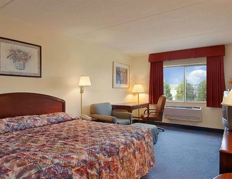 Super 8 by Wyndham Manchester Airport offers accommodations in Manchester. The Mall of New Hampshire is 2.6 mi away. Every room has a private bathroom. A TV is offered. There is a 24-hour front desk at the property. Manchester-Boston Regional Airport is 1.6 mi away from the property. White Mountains are 118 mi away and Boston is 51 mi away. The access road to the Interstate 293 is 1585 feet from Super 8 by Wyndham Manchester Airport. This air-conditioned double room includes a flat-screen TV with cable channels and a private bathroom. The unit offers 1 bed.
