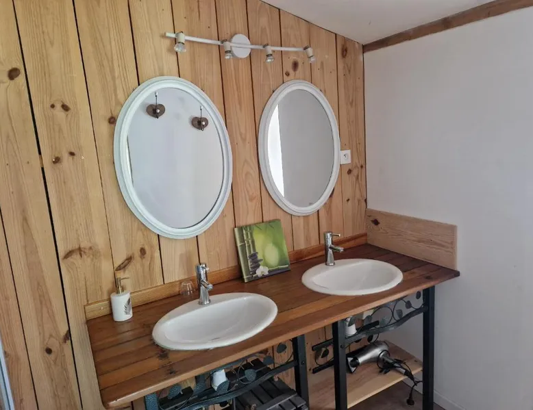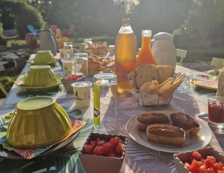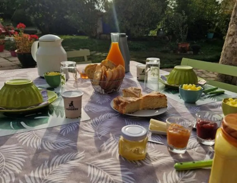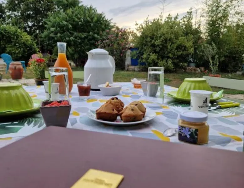 Elegant Accommodations: Chambres d'hôtes La Frize in Corpe offers a sun terrace, garden, and free WiFi. Private check-in and check-out services ensure a seamless arrival and departure. Comfortable Amenities: Guests can enjoy an outdoor play area, coffee shop, and outdoor seating. Family rooms and bicycle parking cater to all travelers. Free on-site private parking is available. Delicious Breakfast: A continental breakfast is served with local specialties, fresh pastries, fruits, and juice. The dining area provides a relaxing space to start the day. Convenient Location: Located 32 mi from La Rochelle - Ile de Re Airport and 30 mi from La Rochelle Train Station, the property is near attractions such as Mytiliculture Museum (22 mi) and Domangère Golf Course (16 mi). Highly rated by guests. The family room features a private entrance, soundproof walls, as well as a private bathroom boasting a bath and a hairdryer. Among the room amenities are a tea and coffee maker, a seating area, a dining area as well as an outdoor dining area and garden views. The unit has 3 beds.
