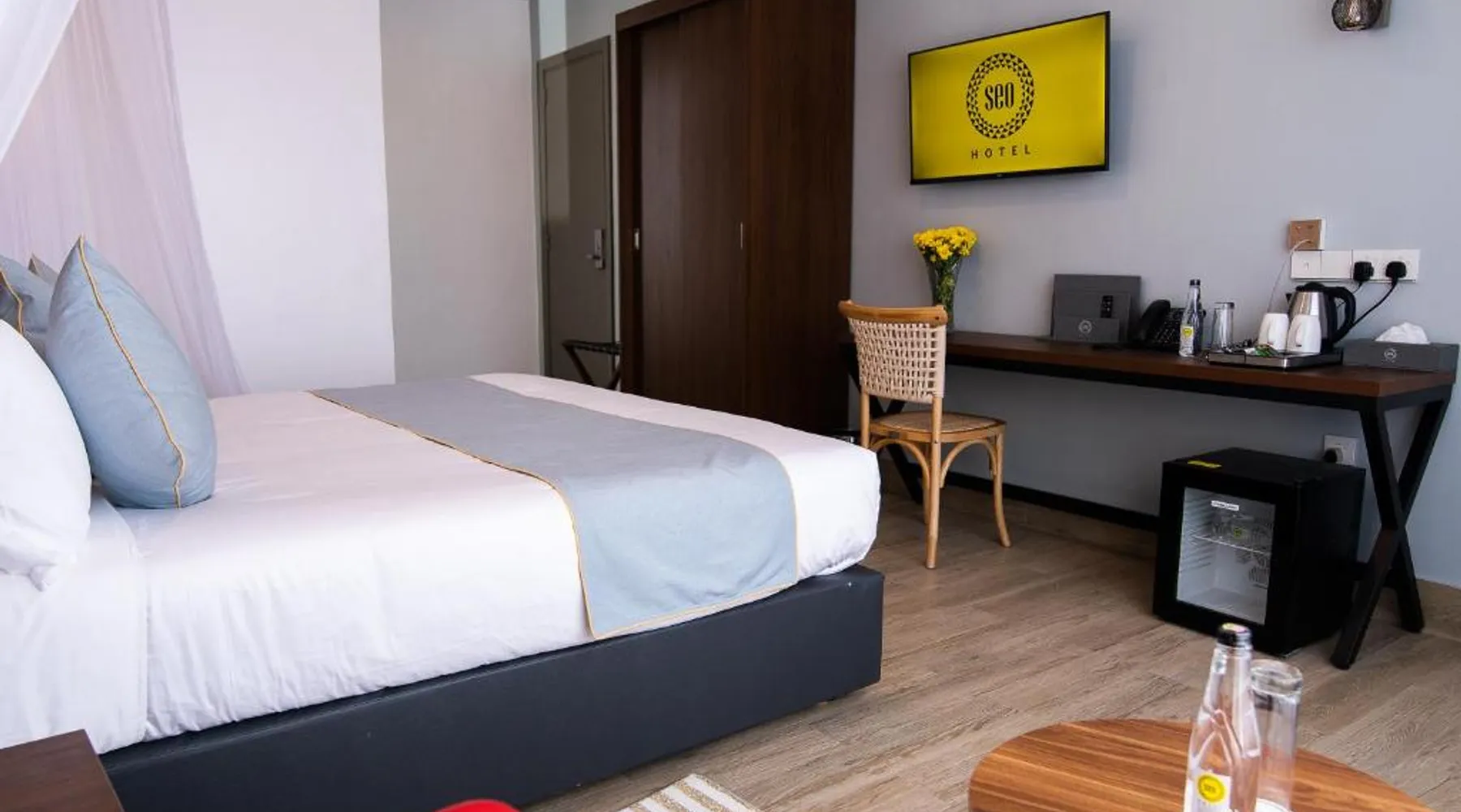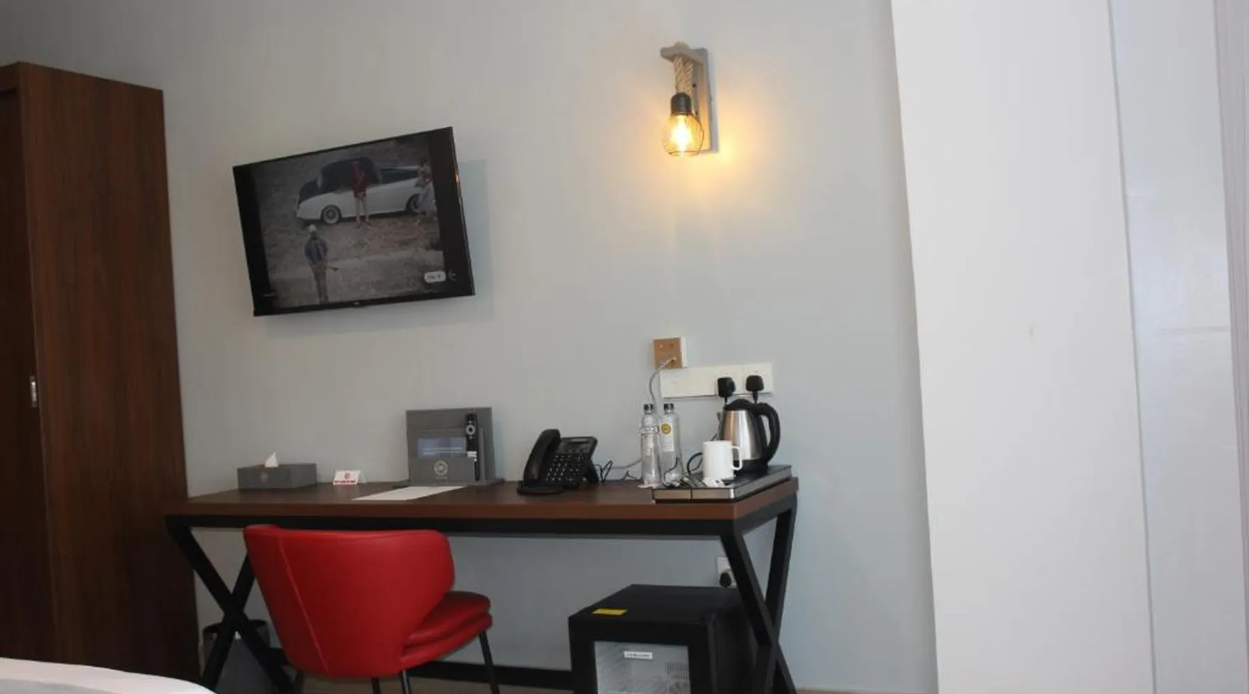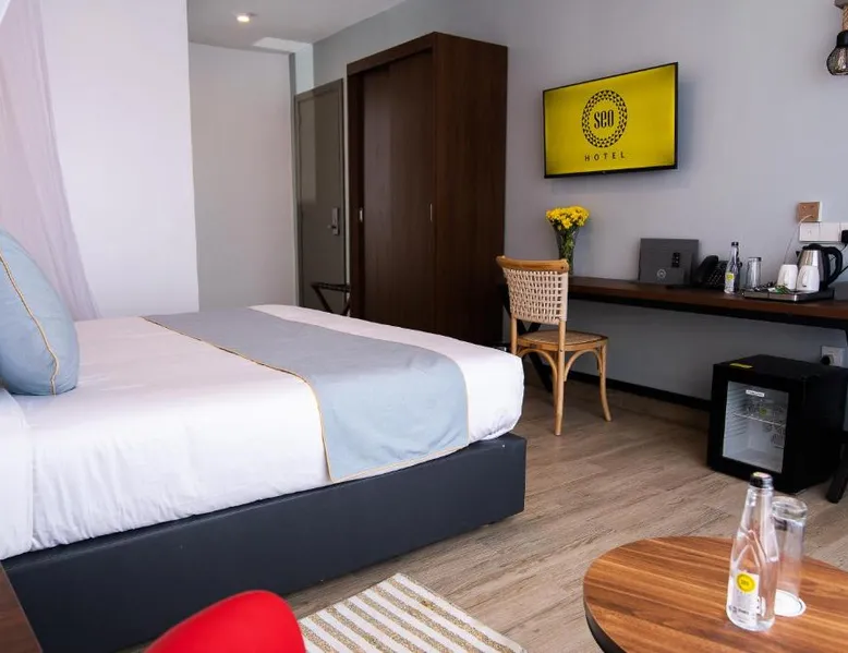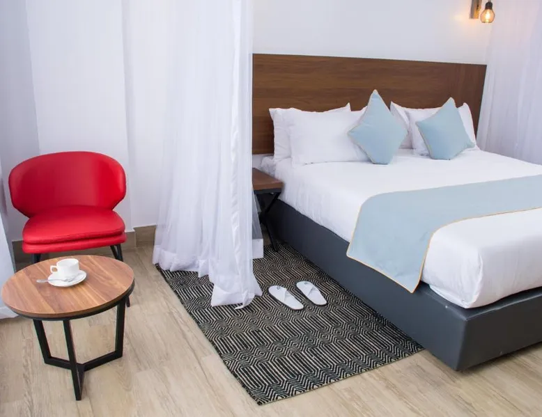 Comfortable Accommodations: Seo Hotel in Machakos offers family rooms with private bathrooms, balconies, and free WiFi. Each room includes a work desk, seating area, and modern amenities. Exceptional Facilities: Guests can enjoy a garden, terrace, restaurant, tennis court, and free on-site parking. Additional services include private check-in and check-out, a 24-hour front desk, and room service. Delicious Breakfast: A variety of breakfast options are available, including continental, buffet, full English/Irish, and halal. Local specialties, warm dishes, fresh pastries, pancakes, and fruits are served daily. Prime Location: Located 37 mi from Wilson Airport, the hotel is near attractions such as Machakos Peoples Park (2.5 mi), Katunga Forest (5 mi), and Daystar University (20 mi). A seating area with a flat-screen TV, a desk, a balcony and a private bathroom are available in this spacious double room. The unit has 1 bed.