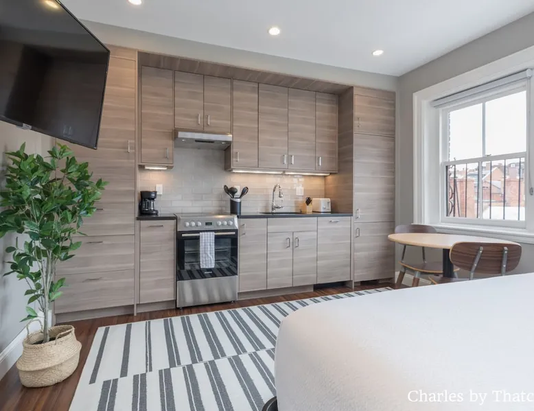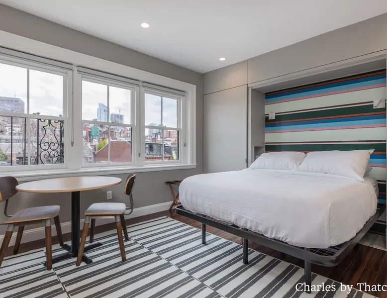 J. Miller Flats on Charles is one of the few professionally managed short-term rentals available in the City and the location can’t be beat, in the heart of Beacon Hill and on its most iconic street – Charles Street. This studio apartment can sleep up to 2 people, has a full kitchen and new furniture and interior design in 2022. Fast wi-fi, smart TV for streaming, elevator, keyless entry and Thatch’s quality guarantee make this apartment a sure bet for leisure, work or any other kind of travel. The space This Apartel (apartment-hotel) is the perfect place for up to 2 people for a few nights or a few months, with views up and down Charles Street to boot. In 2022, we added central AC to this unit, all new furniture, and the interior design was completely redone with new paint, wall coverings, art, accent lighting and more. The floor plan and furnishings of the unit have been meticulously thought through to ensure the best possible stays for leisure and business travelers alike. PARKING IS AVAILABLE & LIMITED. You must reserve a parking spot ahead of time. Please call or email us directly if you wish to reserve a parking spot. Key features include: -Fast, free wi-fi (1GB) -Well- equipped kitchen -Heat and AC, guest controlled -Queen bed -55” smart TV for streaming in LR -One parking spot available for rent (must be paid for directly not via AIRBNB) Follow our Insta(gram) LiveThatchBoston to find the most up to date information Guest access J. Miller Flats partners with RemoteLock™ providing unique access codes for each guest, offering easy and secure access to the unit. Within 48 Hours of check-in, guests will receive a confirmation email with entry codes and detail access instructions. The building is monitored 24/7 with security cameras in the common areas. Check-in window is between 3PM and 10PM Other things to note "Thatch is a local, Boston-based hospitality management company. Our offices are located in the South End. We manage over 100 furnished apartments in throughout Boston including nightly, extended stay and co-living places. Check out us out on IG or online. We are available Monday through Friday during business hours and on weekends and after hours for emergencies. Text and email are the best way to reach us. Registration Details Exempt: This listing is a hotel or motel