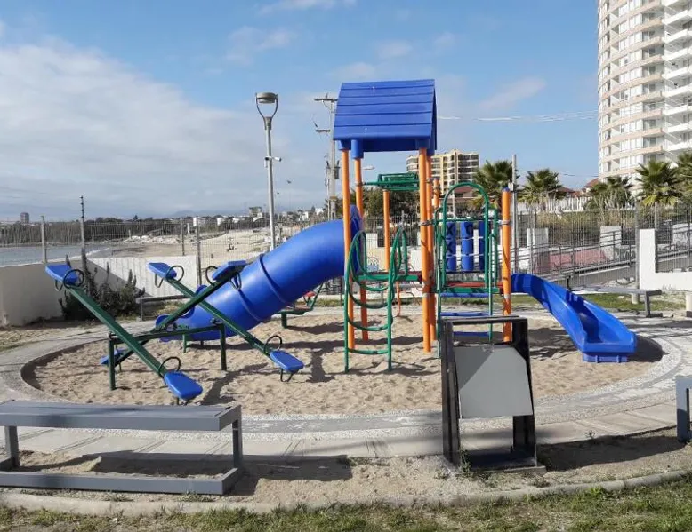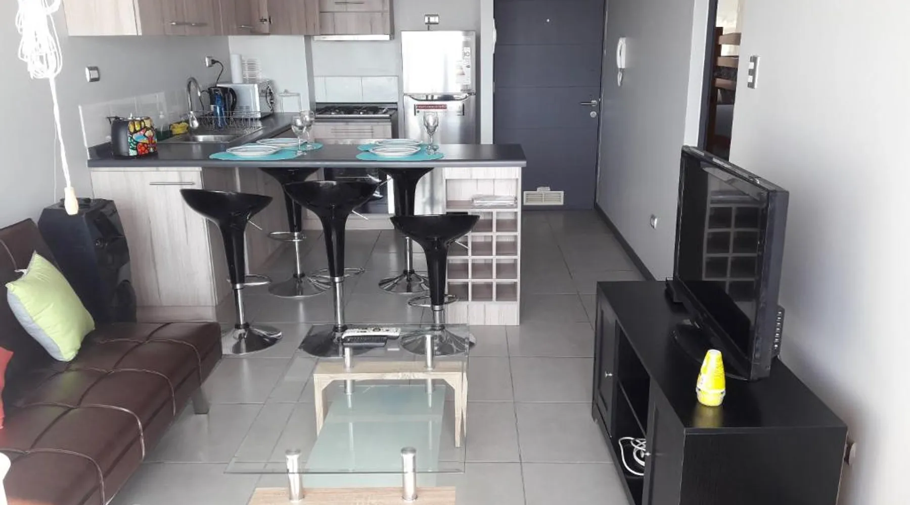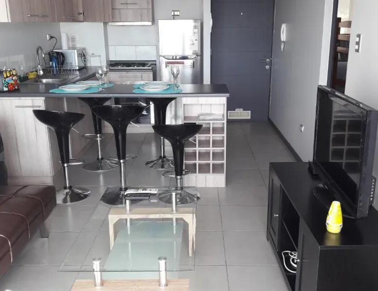 Beachfront Location: Departamento en Playa La Herradura in Coquimbo offers direct beachfront access with stunning sea views. Guests can relax on the terrace or in the garden, enjoying the serene beachfront setting. Comfortable Accommodations: The apartment features two bedrooms, a living room, and a fully equipped kitchen. Amenities include a washing machine, balcony, and free on-site private parking. Local Attractions: La Herradura Beach is a 1-minute walk away, while Francisco Sanchez Rumoroso Stadium lies 2.5 mi from the property. La Florida Airport is 12 mi distant. Highly rated by guests. This apartment's special feature is the pool with a view. This apartment consists of 1 living room, 2 separate bedrooms and 1 bathroom with a bath and free toiletries. Guests will find a refrigerator, a dishwasher, kitchenware and an oven in the well-equipped kitchen. The apartment also provides guests with a barbecue. Featuring a terrace with sea views, this apartment also provides a washing machine and a flat-screen TV with cable channels. The unit offers 3 beds.