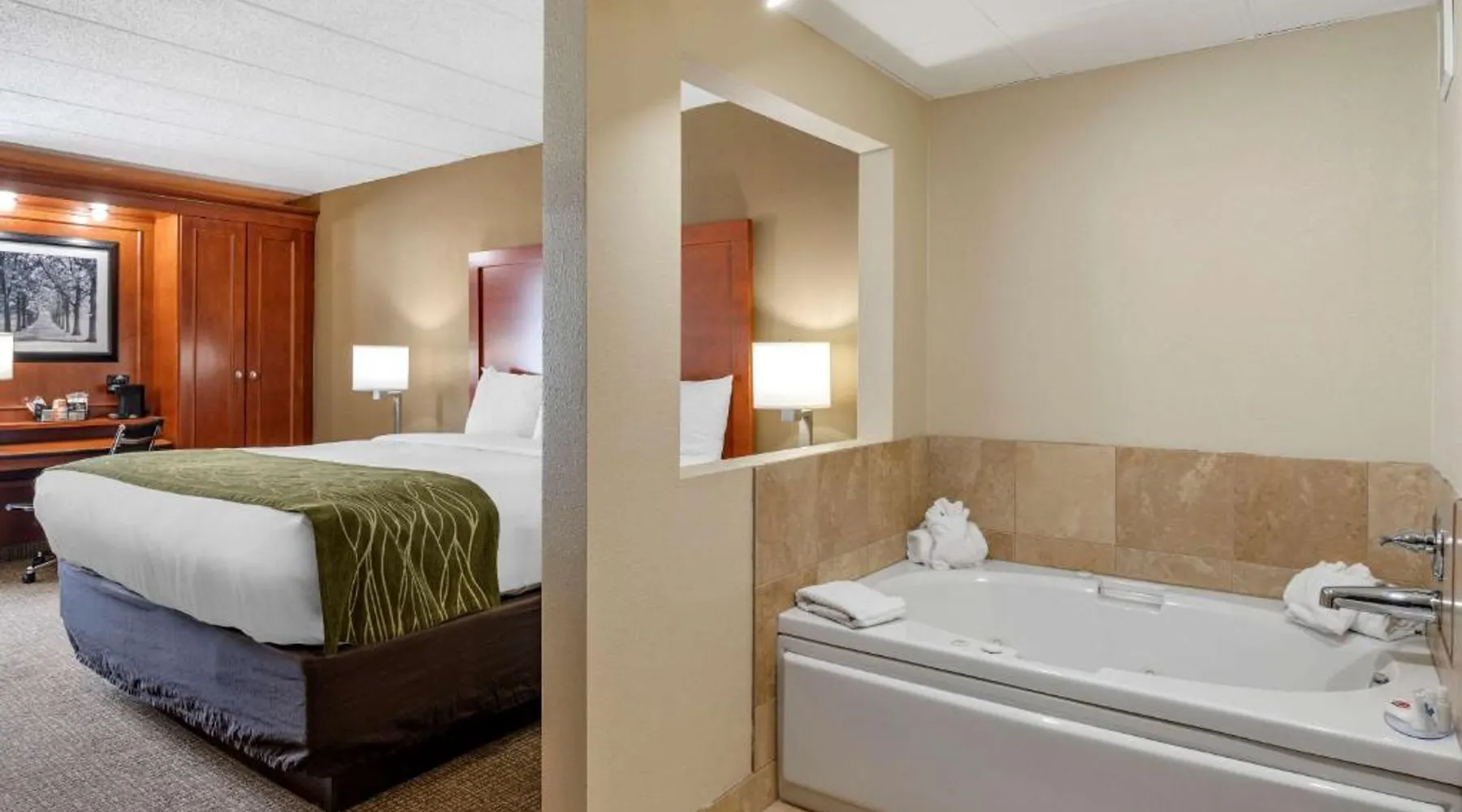 The Comfort Inn hotel is conveniently located near many local points of interest, making it an ideal place to stay during your trip to western Ohio. Area attractions close to this Oxford, OH hotel include Miami University, Ferd C. Yager Stadium, Goggin Ice Center skating rink, Millet Hall multipurpose venue, Corwin M. Nixon Aquatic Center. Guests of this Oxford, OH hotel can enjoy amenities like free wireless high-speed Internet access, free weekday newspaper, exercise room, indoor heated pool and hot tub. Enjoy our free hot breakfast featuring eggs, meat, yogurt, fresh fruit, cereal and more, including your choice of hot waffle flavors. This Ohio hotel also has an on-site business center, public computer with Internet access, and provides access to copy and fax service. A meeting room is located on the premises and can accommodate up to 10 people. All of the guest rooms at this Oxford, OH hotel are furnished with flat-screen televisions, coffee makers with free coffee, spacious work desks, pillow-top mattresses, down pillows, hair dryers, irons, ironing boards and cable television. Rooms with microwaves, refrigerators, curved shower rods and hot tubs are also available. On-site free parking is provided and valet cleaning service can be requested. The unit has 1 bed.