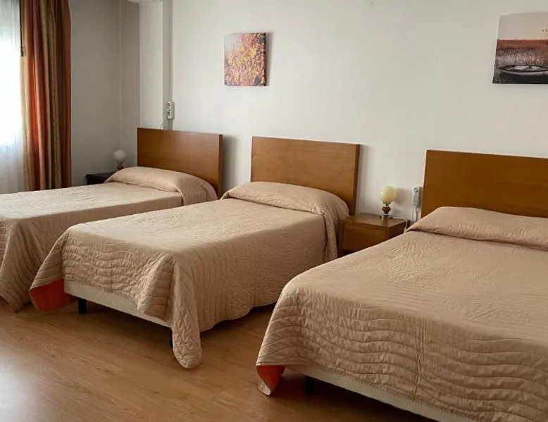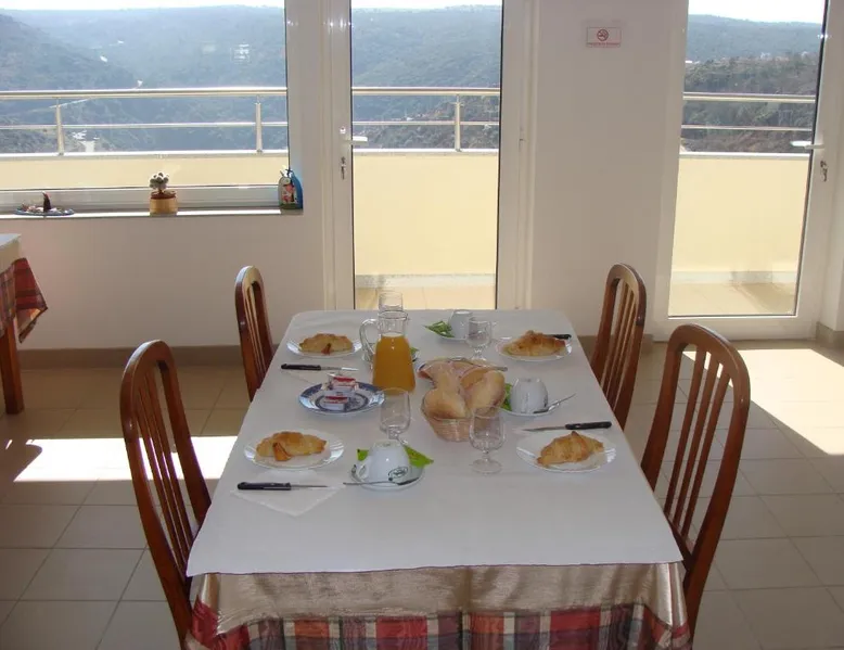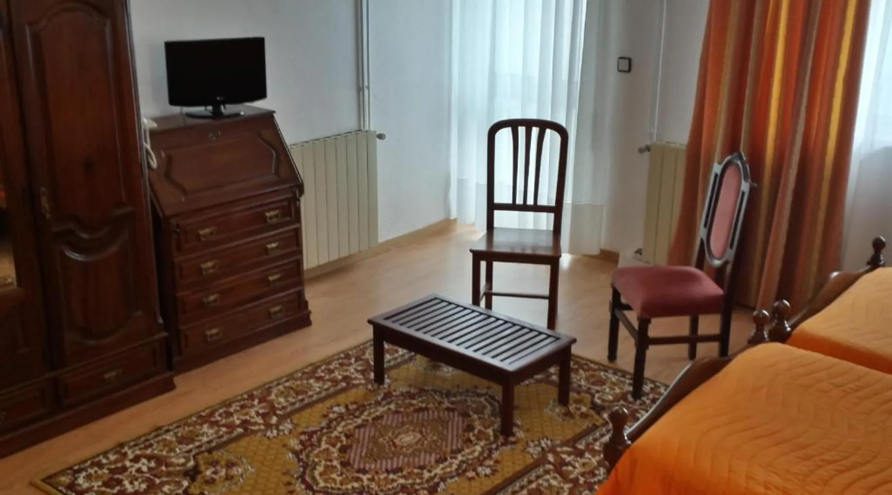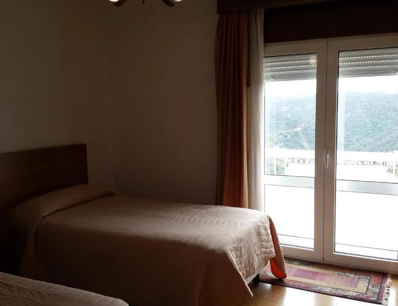 Essential Facilities: Pensao Vista Bela in Miranda do Douro offers a terrace, bar, and free WiFi. Guests can relax on the terrace or enjoy a drink at the bar. Comfortable Accommodations: Rooms feature private bathrooms, balconies with mountain or city views, and soundproofing. Additional amenities include free toiletries, showers, TVs, and parquet floors. Guest Services: The guest house provides private check-in and check-out, a minimarket, housekeeping, coffee shop, hairdresser, family rooms, full-day security, bicycle parking, and room service. Activities and Location: Guests can enjoy hiking and explore the surrounding area. The property is highly rated for its scenic location, delicious breakfast, and attentive staff. This spacious family room includes a double bed and 2 single beds. It can accommodate 4 people.