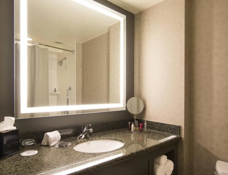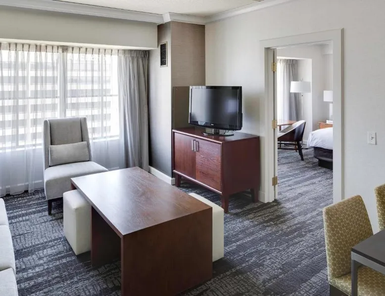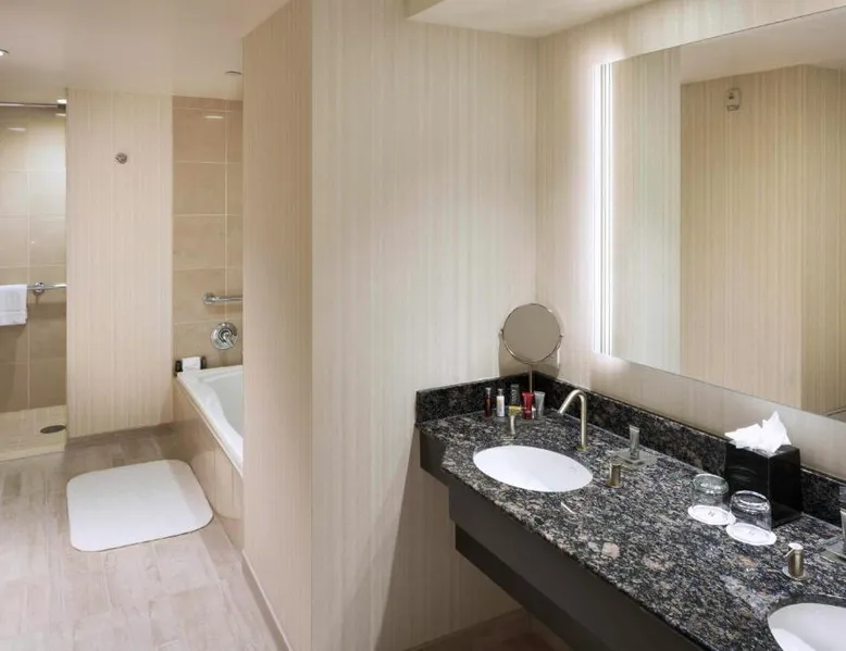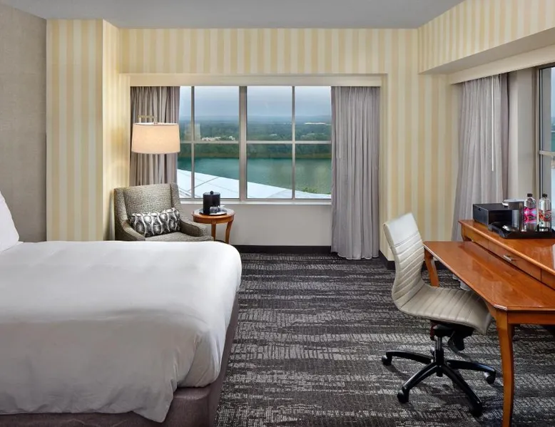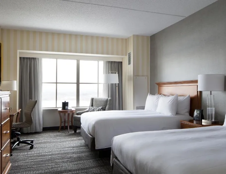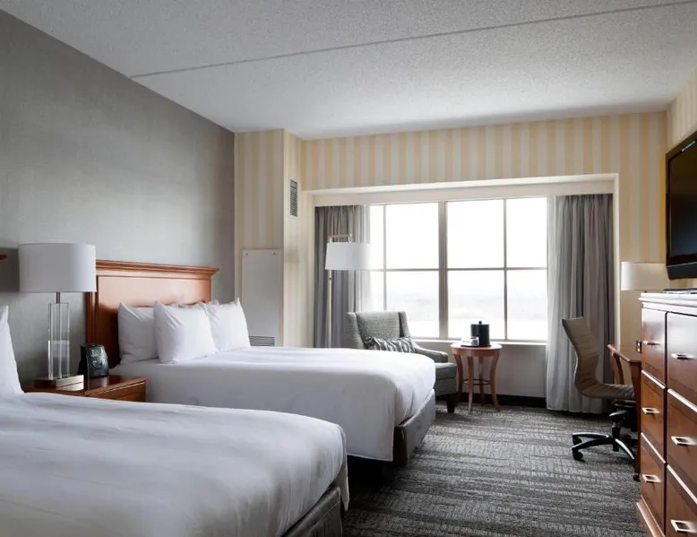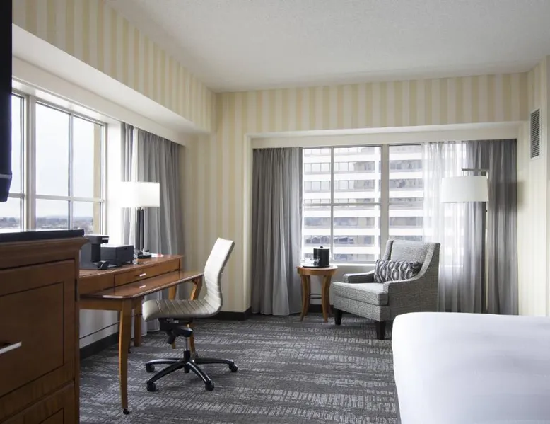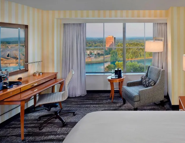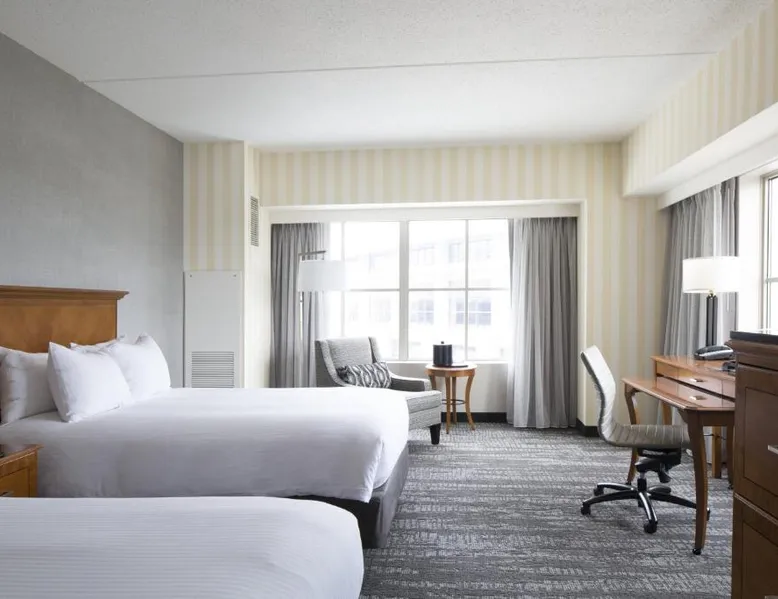 Comfortable Accommodations: Hartford Marriott Downtown in Hartford offers air-conditioned rooms with private bathrooms, bathrobes, and free toiletries. Each room includes a work desk, seating area, and soundproofing for a restful stay. Exceptional Facilities: Guests can enjoy spa facilities, a spa and wellness center, terrace, restaurant, and bar. Additional amenities include a elevator, 24-hour front desk, electric vehicle charging station, and breakfast in the room. Prime Location: Located 13 mi from Bradley International Airport, the hotel is a short walk from Wadsworth Atheneum and close to XL Center. Nearby attractions include Comcast Theater and Mark Twain House. Guests appreciate the convenient location for city trips. This air conditioned room features a flat screen TV and work desk.