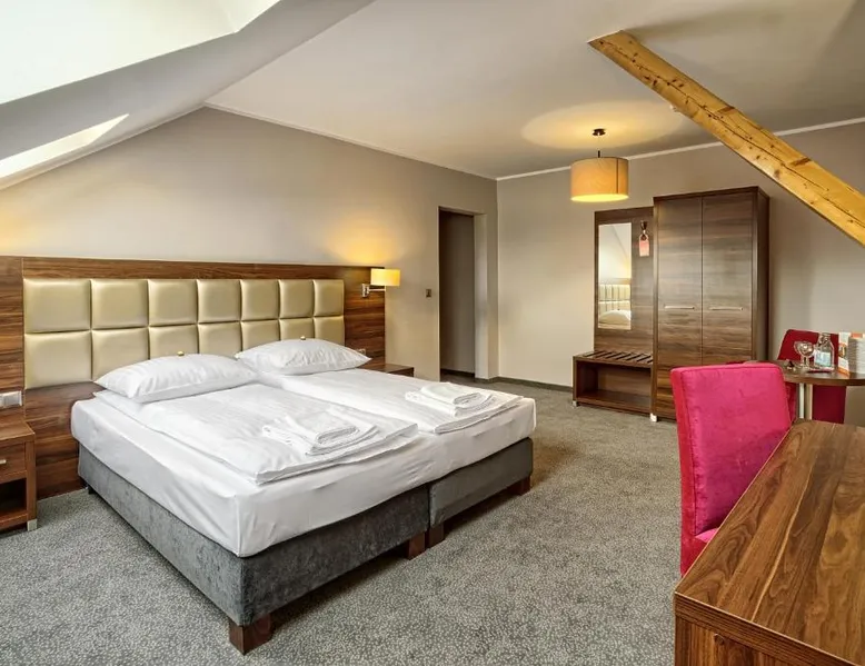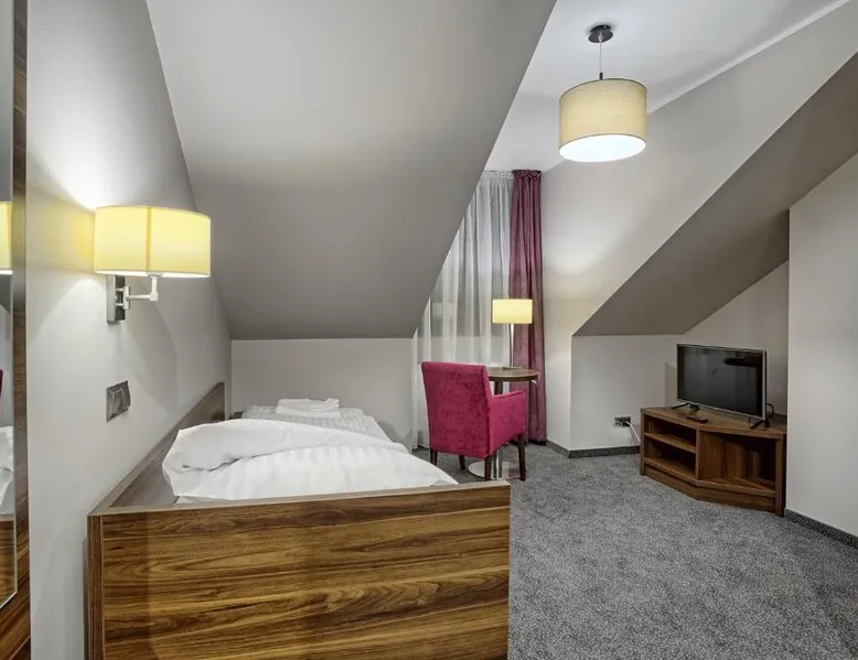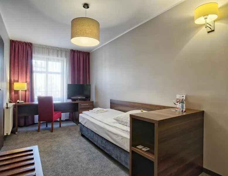 Offering a restaurant and banquet facilities, Hotel Kamieniczka is located in Legnica. Rooms at the hotel come with a flat-screen TV and provide free WiFi access. The rooms feature a private bathroom with a shower and come with free toiletries. Breakfast is served daily in buffet style. At Hotel Kamieniczka guest will find a 24-hour front desk, a garden and a bar. Other facilities offered include a shared lounge and luggage storage. The property offers free parking. The hotel is 984 feet from Legnica Cathedral, 984 feet from Art Gallery and 1.8 mi from Legnica Airport. Wroclaw – Copernicus Airport is 32 mi away. Offering free toiletries, this single room includes a private bathroom with a shower and a hairdryer. The single room offers soundproof walls, a wardrobe, an electric kettle, a carpeted floor and a flat-screen TV. The unit offers 1 bed.