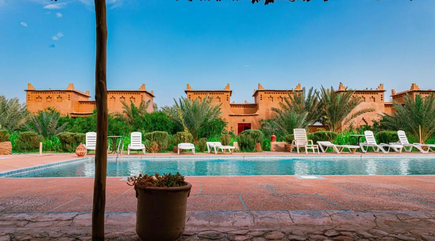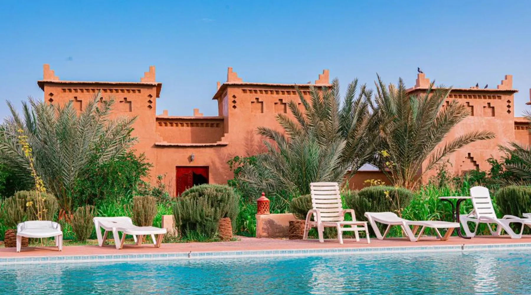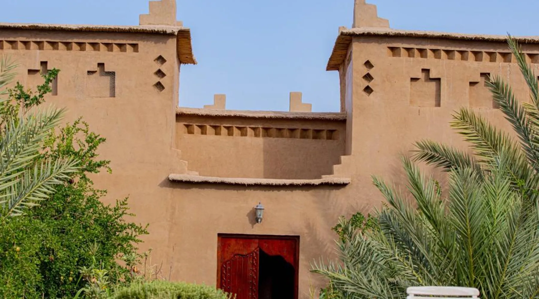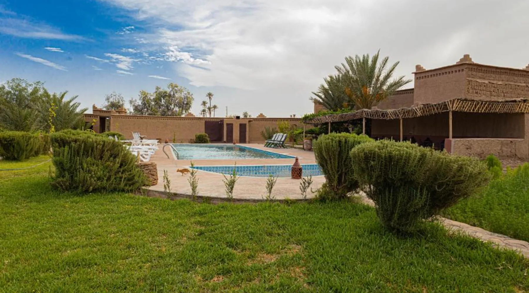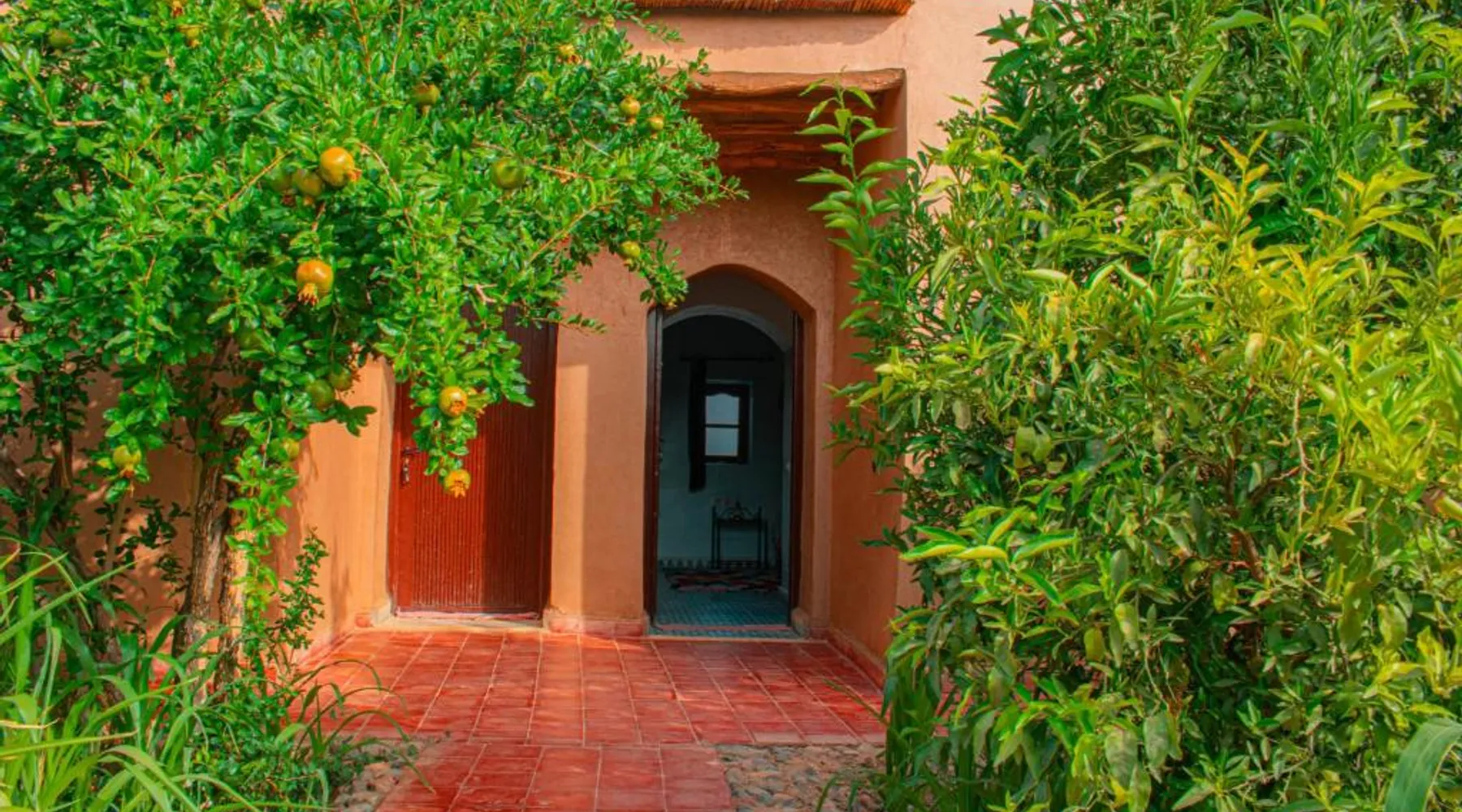 Comfortable Accommodations: Maison D'hôte Amridil in Skoura offers family rooms with air-conditioning, private bathrooms, and garden views. Each room includes a wardrobe, free toiletries, and a dining area. Exceptional Facilities: Guests enjoy a sun terrace, seasonal outdoor swimming pool, and a lush garden. The property features a restaurant, coffee shop, and free WiFi. Additional amenities include a terrace, pool, and mountain views. Dining Experience: The family-friendly restaurant serves African cuisine with halal, kosher, vegetarian, vegan, and gluten-free options. Breakfast includes continental, American, buffet, Italian, full English/Irish, and local specialties. Prime Location: Located 23 mi from Ouarzazate Airport, the guest house is a 5-minute walk from Kasbah Amridil. Nearby attractions include the Skoura Palm Grove and the Atlas Mountains. The spacious double room features air conditioning, a private entrance, as well as a private bathroom boasting a shower and a bidet. Among the room amenities are a wardrobe, tumble dryer, heating as well as outdoor furniture and garden views.
