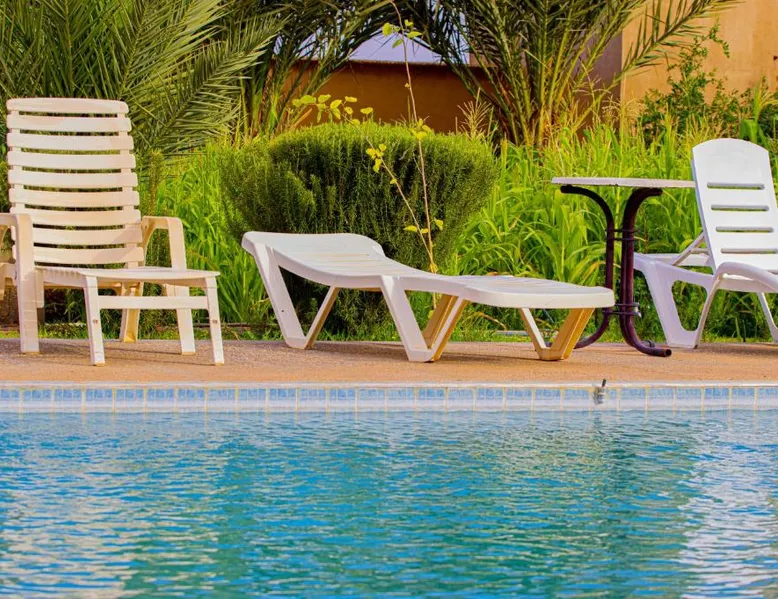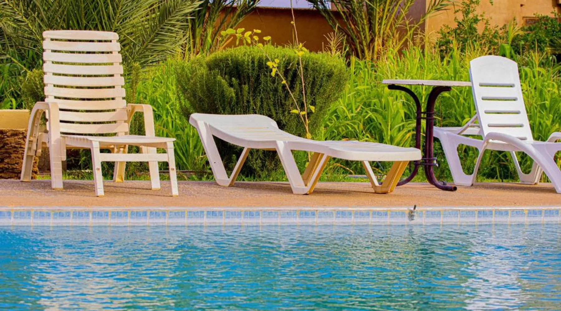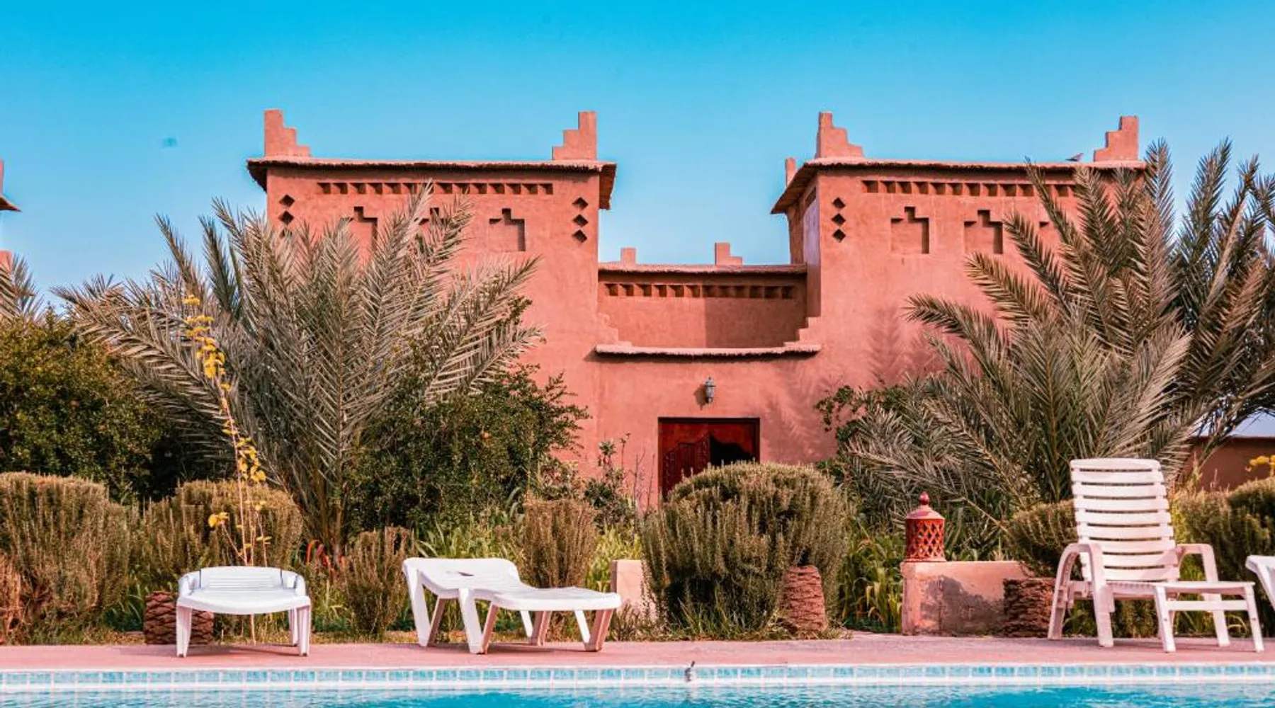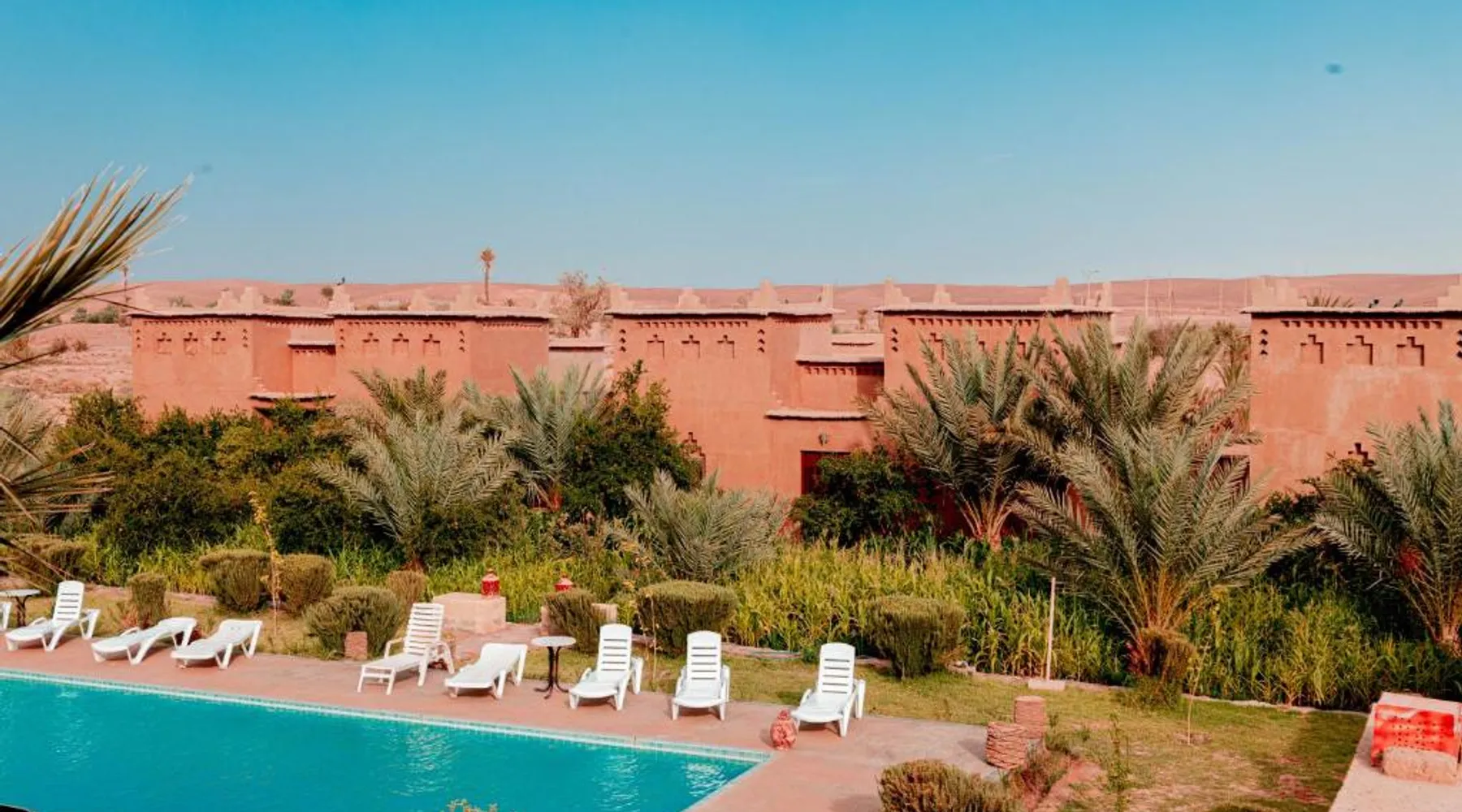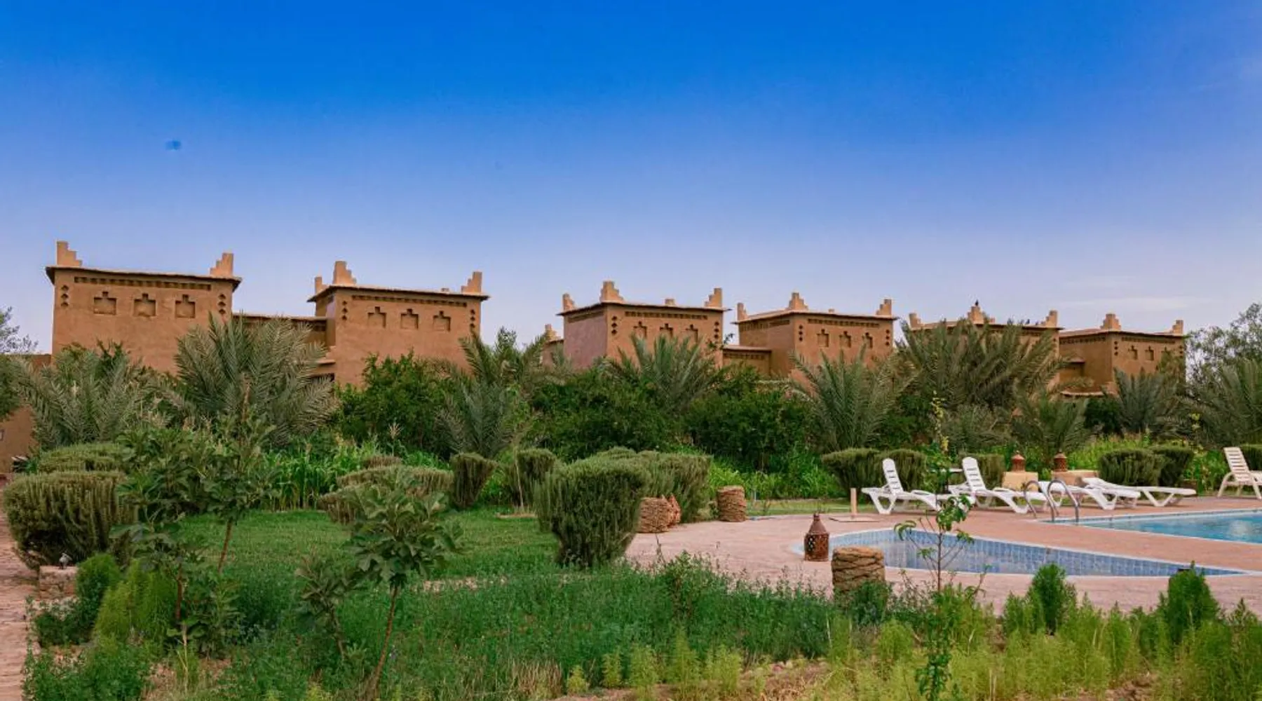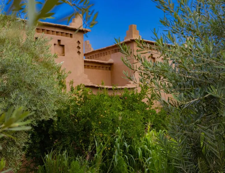 Comfortable Accommodations: Maison D'hôte Amridil in Skoura offers family rooms with air-conditioning, private bathrooms, and garden views. Each room includes a wardrobe, free toiletries, and a dining area. Exceptional Facilities: Guests enjoy a sun terrace, seasonal outdoor swimming pool, and a lush garden. The property features a restaurant, coffee shop, and free WiFi. Additional amenities include a terrace, pool, and mountain views. Dining Experience: The family-friendly restaurant serves African cuisine with halal, kosher, vegetarian, vegan, and gluten-free options. Breakfast includes continental, American, buffet, Italian, full English/Irish, and local specialties. Prime Location: Located 23 mi from Ouarzazate Airport, the guest house is a 5-minute walk from Kasbah Amridil. Nearby attractions include the Skoura Palm Grove and the Atlas Mountains. The spacious double room features air conditioning, a private entrance, as well as a private bathroom boasting a shower and a bidet. Among the room amenities are a wardrobe, tumble dryer, heating as well as outdoor furniture and garden views.