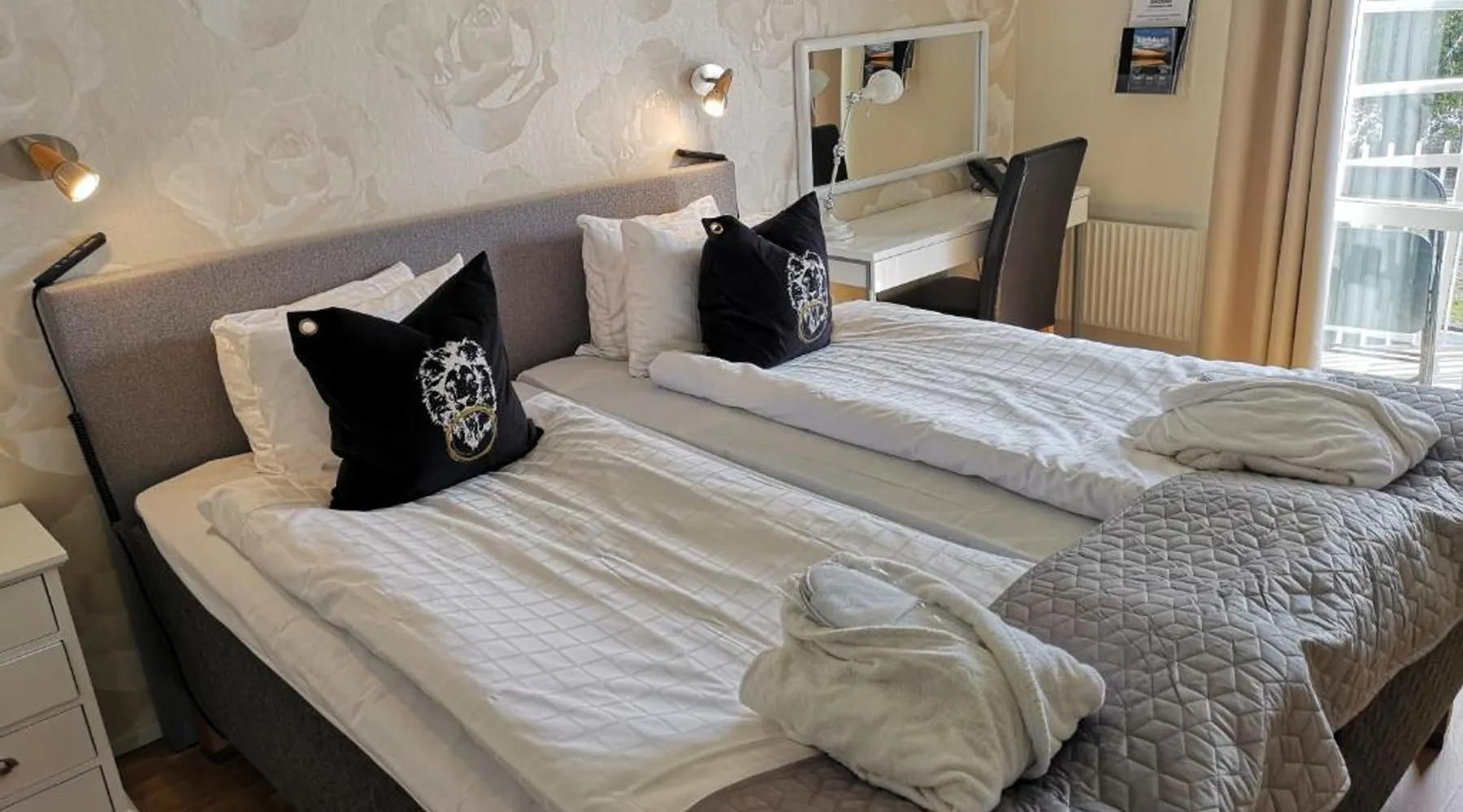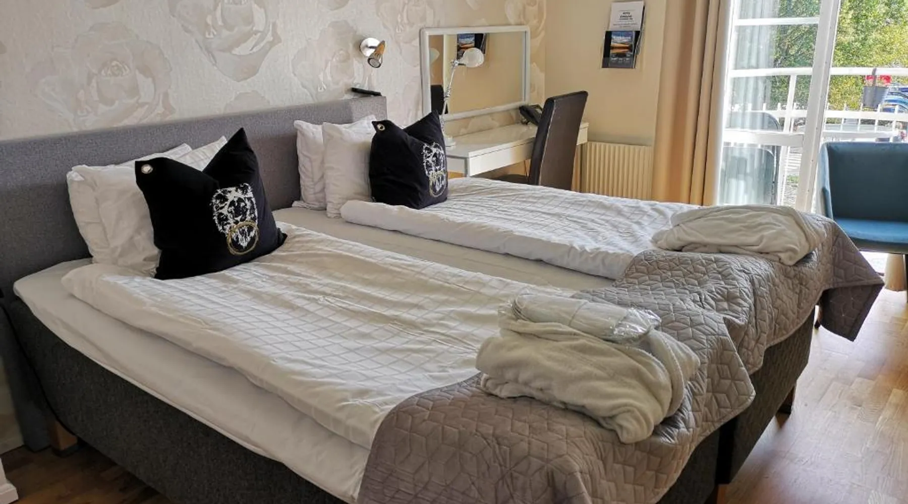 Located where the Mieån river meets the Baltic Sea, this hotel offers views of Karlshamn Harbor. Guests have access to free WiFi, as well as a free sauna. Decorated in warm tones, all rooms at Hotel Carlshamn have a private bathroom. Some have a balcony offering views of the harbor. Guests can explore the medieval town center and its many boutique stores. Karlshamn Train Station is 15 minutes’ walk away. The hotel works with Wellness Studio to offer more extensive gym facilities for a small extra fee. Includes a work desk, TV and a private bathroom with a bathtub or shower. Please note that pets cannot be accommodated in this room.