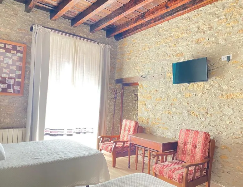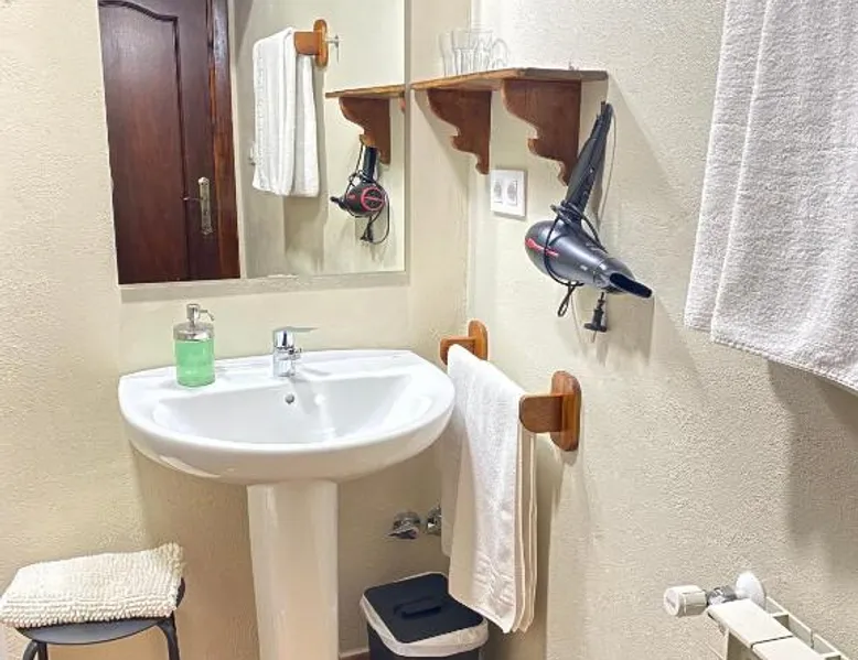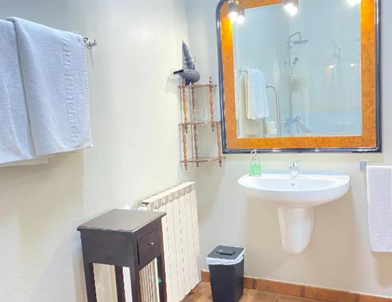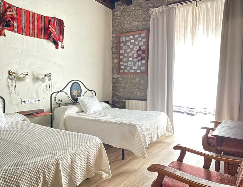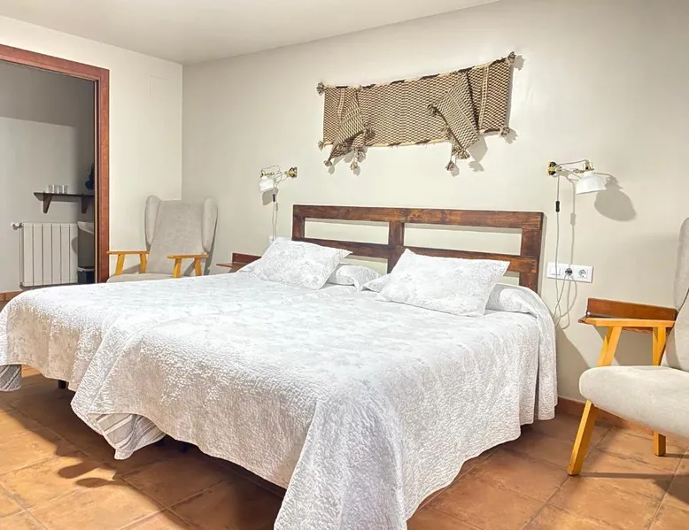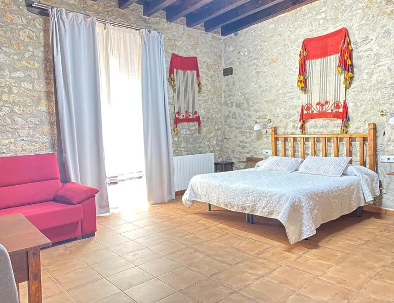 Historic Setting: Casa Sara in Cantavieja offers a unique stay within a historic building. The property features a private bathroom with a walk-in shower, TV, and wardrobe. Comfortable Accommodations: Rooms include a balcony with inner courtyard views, sofa beds, and ground-floor units. Guests appreciate the room comfort and amenities such as a hairdryer and TV. Convenient Facilities: Free WiFi is available throughout the property. Additional services include private check-in and check-out, elevator, housekeeping, shuttle, bicycle parking, room service, and a tour desk. Breakfast and Dining: A continental breakfast is served daily, highly praised by guests for its quality and variety. Location and Attractions: Castellón–Costa Azahar Airport is 53 mi away. Nearby attractions include the Cantavieja Castle and the Cantavieja Museum. The double room includes a private bathroom fitted with a walk-in shower, a bath or a shower and a hairdryer. This double room has a wardrobe, heating and a flat-screen TV. The unit has 2 beds.