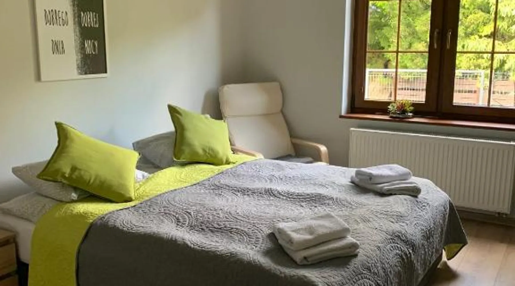 Comfortable Accommodations: Apartamenty Buczyna w Sierakowie in Sieraków offers a sun terrace, garden, and free WiFi. The property features a kitchenette, private bathroom, and a washing machine. Outdoor Amenities: Guests can enjoy an outdoor seating area, picnic spot, family rooms, games room, and barbecue facilities. The ground-floor unit includes tiled floors and a private entrance. Convenient Location: Located 43 mi from Poznań-Ławica Henryk Wieniawski Airport and 11 mi from Stadium Miedzychod. Nearby activities include kayaking and canoeing. Highly rated by guests. Boasting a private entrance, this spacious apartment also features 1 living room, 3 separate bedrooms and 1 bathroom with a walk-in shower. Guests will find a stovetop, a refrigerator, a dishwasher and kitchenware in the well-equipped kitchenette. The apartment also comes with a barbecue. Featuring a terrace with garden views, this apartment also features a washing machine and a flat-screen TV. The unit has 5 beds.