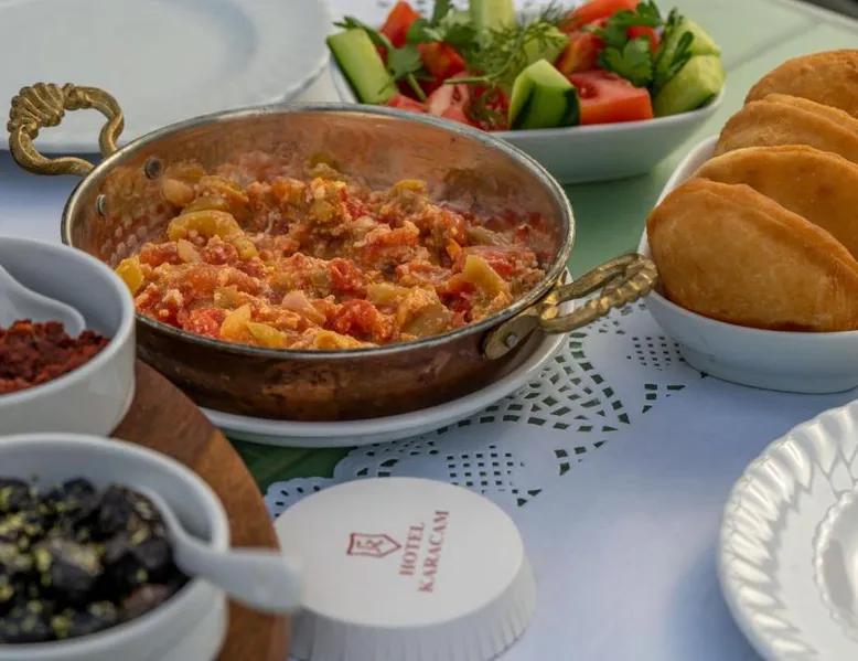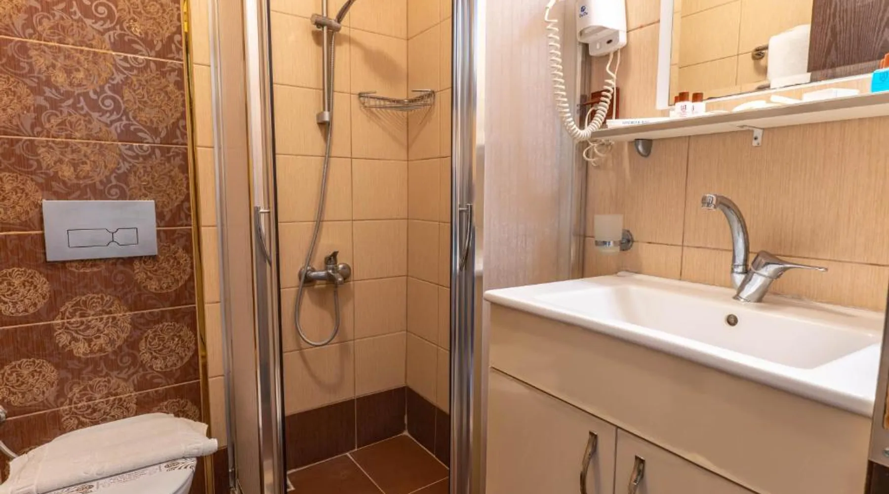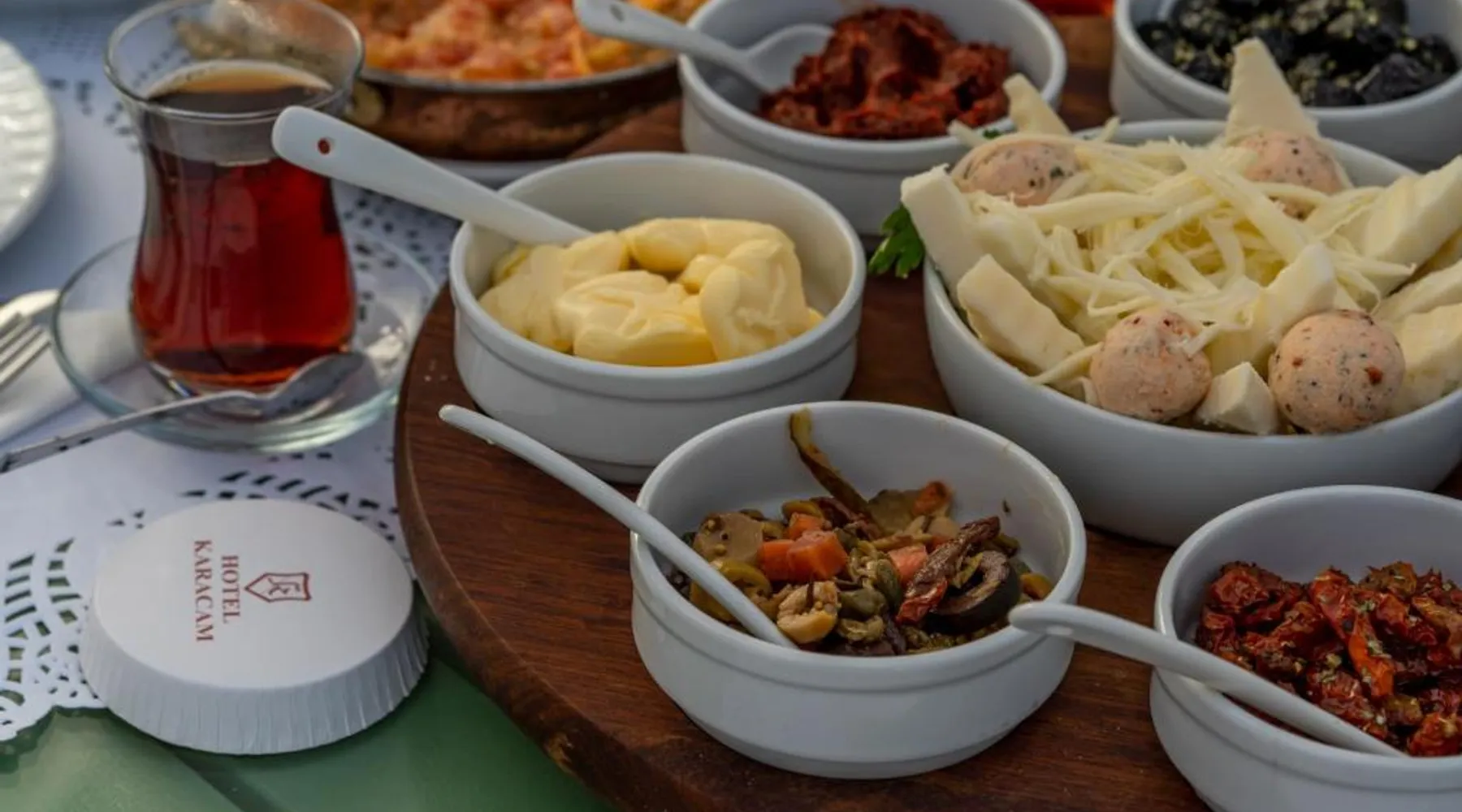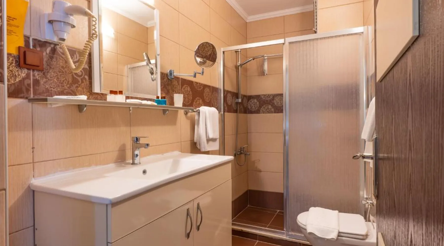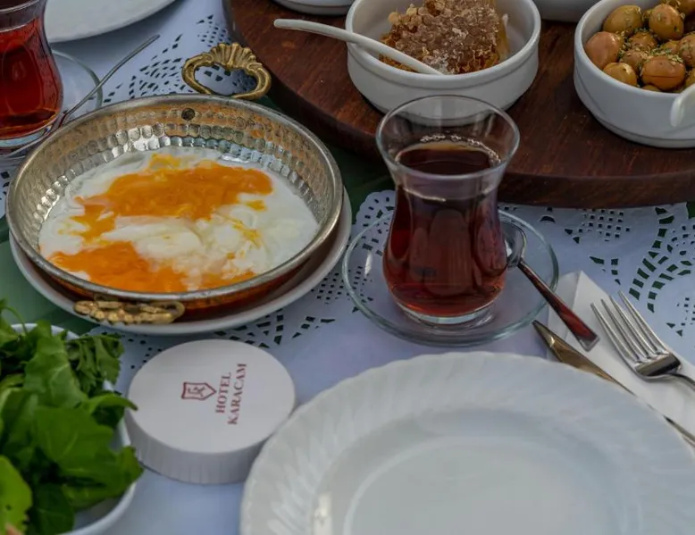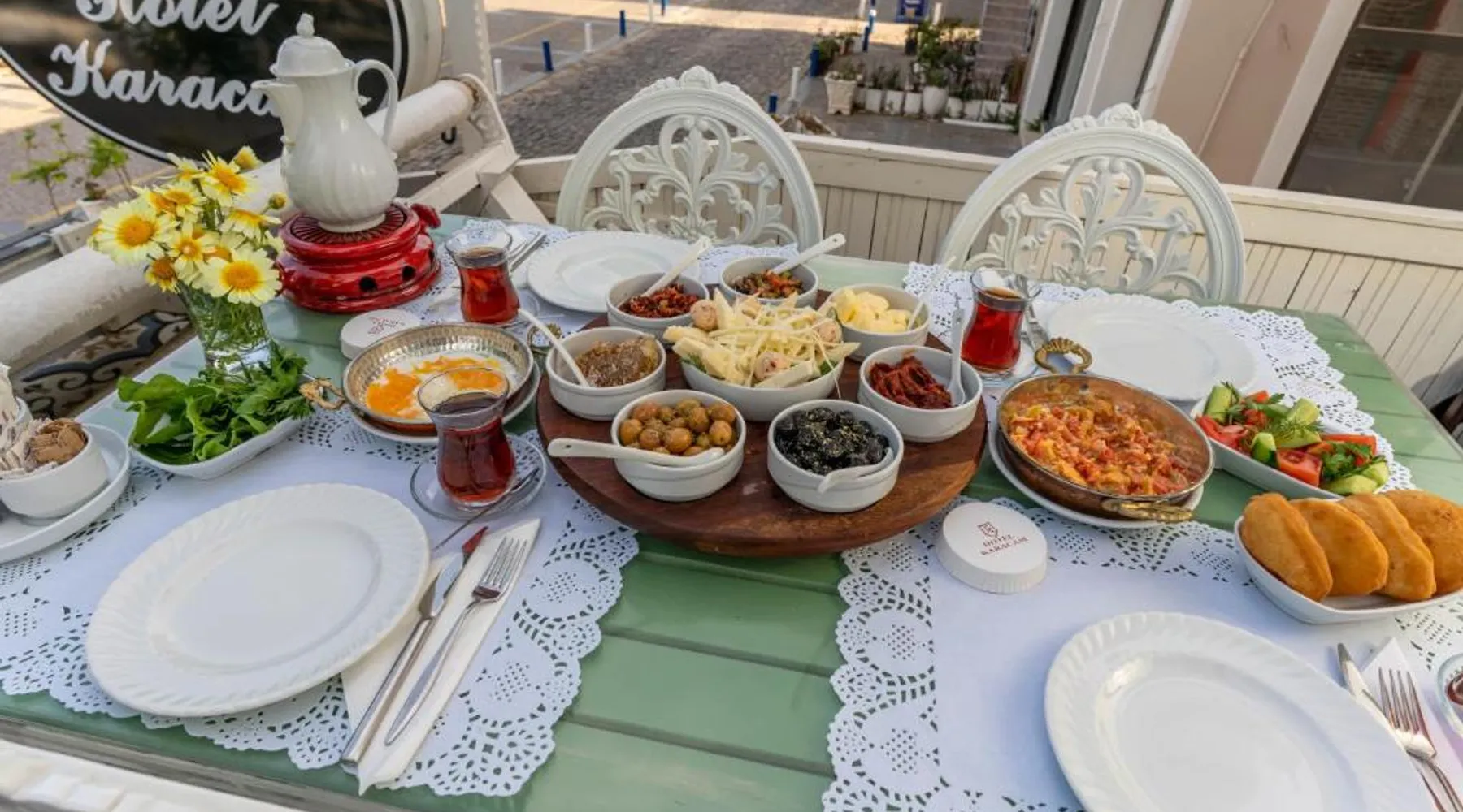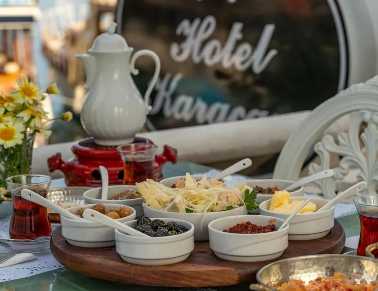 Beachfront Location: Hotel Karacam in Foca offers direct beachfront access, a lush garden, and a spacious terrace. Guests can relax by the bar and enjoy free WiFi throughout the property. Comfortable Accommodations: Rooms feature air-conditioning, private bathrooms, sea or city views, balconies, and modern amenities such as mini-bars and flat-screen TVs. Family rooms and sofa beds cater to all travelers. Dining Options: Breakfast includes continental, buffet, à la carte, vegetarian, and halal options with local specialties, warm dishes, fresh pastries, cheese, and fruits. The on-site coffee shop serves a variety of beverages. Convenient Services: The hotel provides a paid shuttle service, lounge, 24-hour front desk, concierge, housekeeping, room service, bike hire, and luggage storage. Free private parking is available. Izmir Adnan Menderes Airport is 58 mi away. This room has a balcony with sea view.