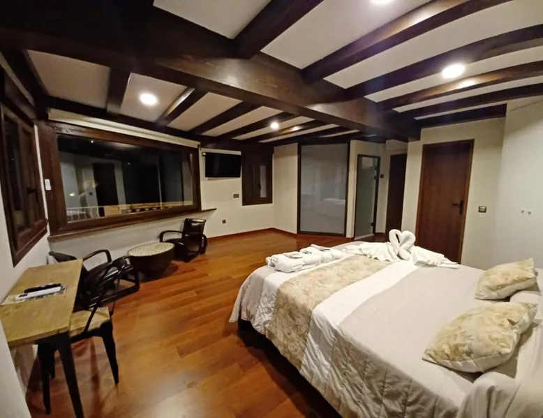 The Hostal El Cerro - Only Adults is a stone building overlooking the Gredos mountain range. This property offers free WiFi. The well-sized rooms at El Cerro mix stone walls with antique-style furniture. The bathrooms are modern and large. All rooms have heating and TV. The restaurant at Hostal El Cerro - Only Adults offers traditional cooking, including plenty of meat dishes. The air-conditioned café has music, newspapers and board games. From here you can enjoy wonderful views of the mountains and valley. El Cerro can be found in the village of Pedro Bernardo. The area is popular for hiking and climbing, as well as hang-gliding. The nearest airport is Madrid, about 78 mi away. This rooms are large and have views of the mountains. This type of room has the right to use the spa circuit in the afternoon from 16:00 hours to 20:30 hours. to 20:30 hours.
