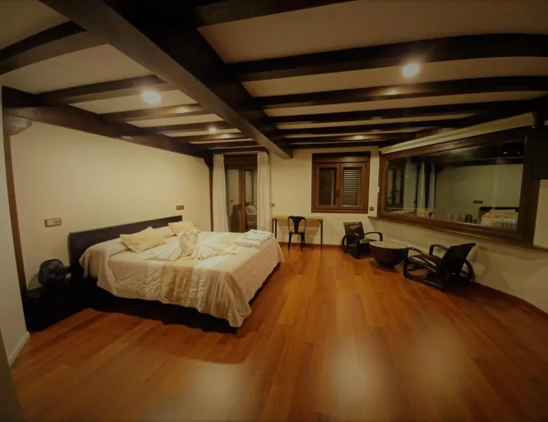 The Hostal El Cerro - Only Adults is a stone building overlooking the Gredos mountain range. This property offers free WiFi. The well-sized rooms at El Cerro mix stone walls with antique-style furniture. The bathrooms are modern and large. All rooms have heating and TV. The restaurant at Hostal El Cerro - Only Adults offers traditional cooking, including plenty of meat dishes. The air-conditioned café has music, newspapers and board games. From here you can enjoy wonderful views of the mountains and valley. El Cerro can be found in the village of Pedro Bernardo. The area is popular for hiking and climbing, as well as hang-gliding. The nearest airport is Madrid, about 78 mi away. This air-conditioned room features a private balcony. It has 1 large double bed and a bathroom with a spa bath, shower, hairdryer and free toiletries. There is also a flat-screen TV and a mini-bar. Free WiFi is available. Guests have free access to the spa from 16:30 to 20:30.