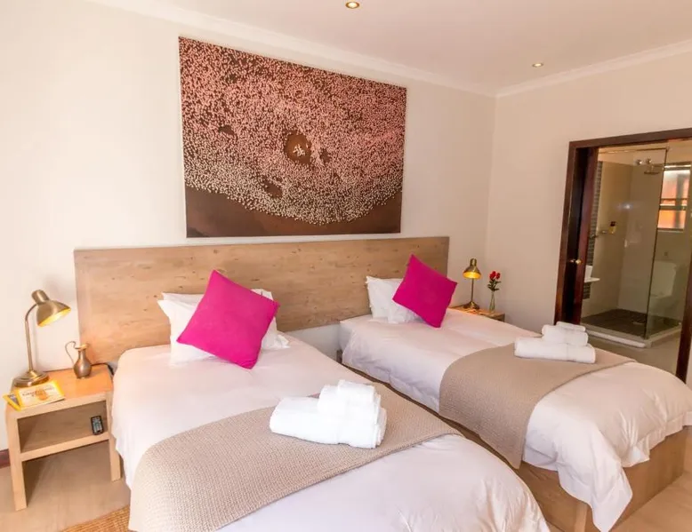 Comfortable Accommodations: Galton House in Windhoek offers family rooms with air-conditioning, private bathrooms, and free WiFi. Each room includes a wardrobe, work desk, and TV. Exceptional Facilities: Guests can relax on the sun terrace, in the garden, or by the year-round outdoor swimming pool. The property features an outdoor fireplace, restaurant, and free on-site private parking. Dining Options: A continental buffet breakfast is served daily, accommodating vegetarian, vegan, gluten-free, and dairy-free diets. Room service and a tour desk are available. Convenient Location: Located 5 mi from Eros Airport, Galton House is near attractions such as Eros Shopping Center (1.6 mi) and the National Theater Namibia (2.4 mi). Free toiletries and a hairdryer are provided in each room. Providing air conditioning, a wardrobe and heating, this suite includes a private bathroom. The unit offers 3 beds.