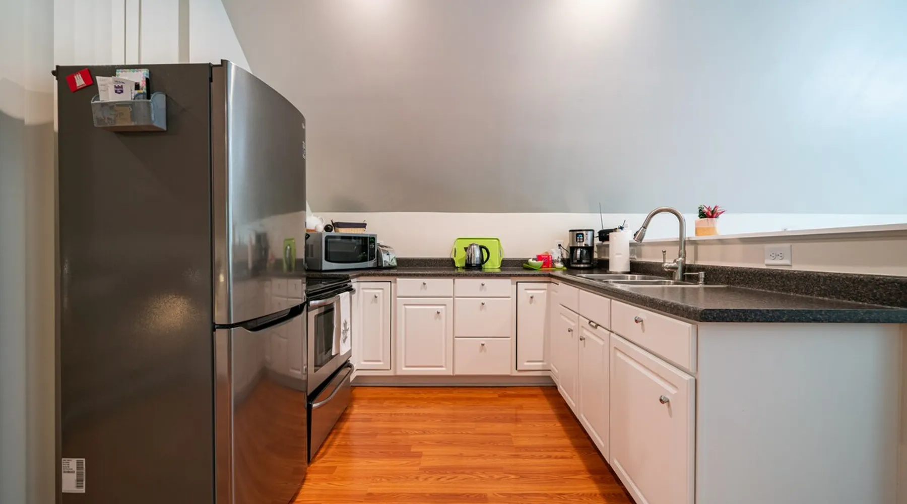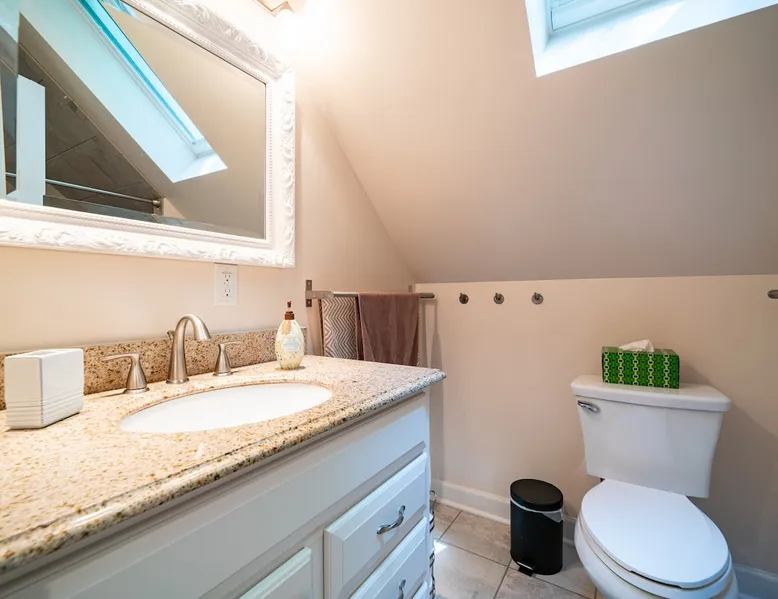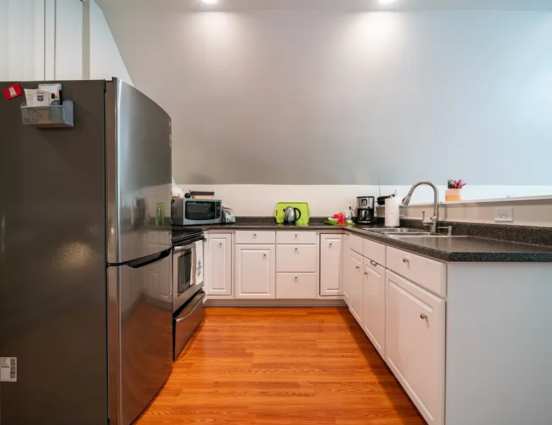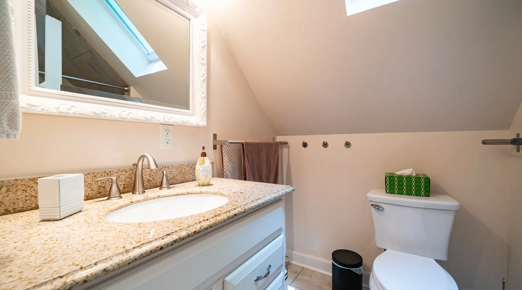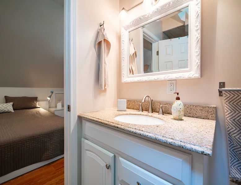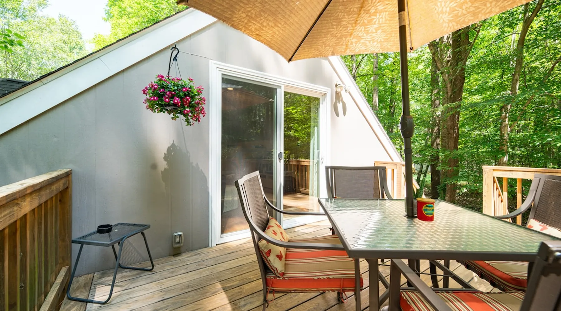 Contemporary guesthouse in quiet residential area with large private deck on wooded lot. Conveniently located to I-540, the airport, RTP and Brier Creek shopping and restaurants. Just outside of Raleigh city limits, but a close drive to everything. King sized bed, spacious shower bath, fully equipped kitchen, dining area and living area - all in a airy and bright loft. Free wi-fi. Large TV with Roku. No parties and no events please. No smoking, no pets. The space Guest suite above detached garage facing away from the main house. Private deck on wooded lot. Guest access You have use of the loft apartment, which includes a living area, dining area, kitchen, sleeping area with king size bed, walk-in closet, shower bath and a deck. You can park next to or behind the garage. If traveling with children, feel free to use the play structure or trampoline at your own risk. Other things to note Please park next to the garage and don't block the garage doors. Please drive cautiously on our driveway, as we have a child and a dog.