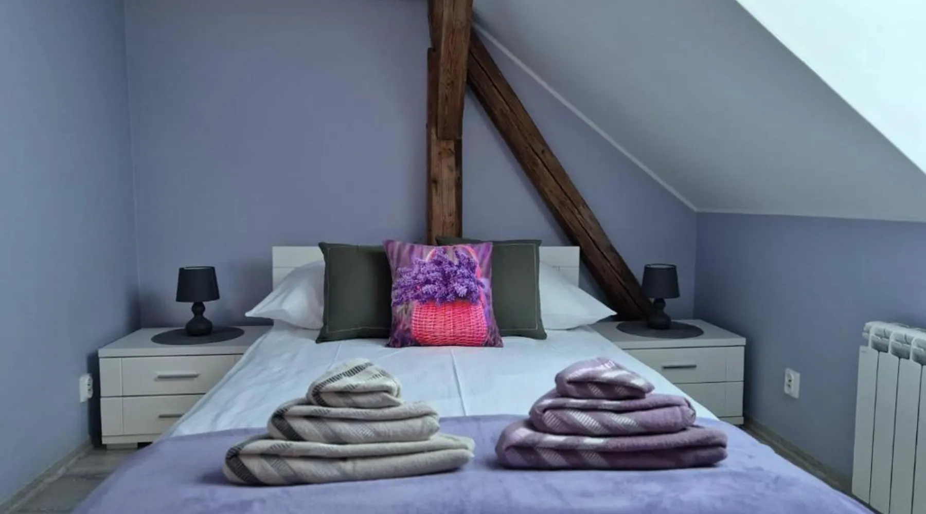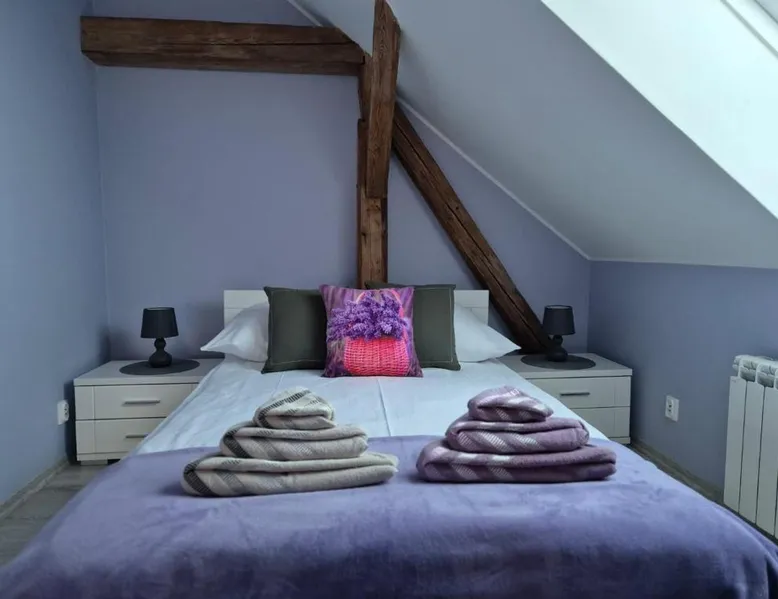 Comfortable Accommodations: Dom pod lawendowym polem in Wolibórz offers family rooms with private bathrooms, hypoallergenic bedding, and garden or mountain views. Each room includes a dining area, TV, and free toiletries. Exceptional Facilities: Guests enjoy a garden, free WiFi, shared kitchen, indoor and outdoor play areas, children's playground, and meeting rooms. Additional amenities include ski storage, free on-site private parking, and free breakfast with warm dishes and cheese. Local Attractions: Located 54 mi from Copernicus Wrocław Airport, the property is near Polanica Zdroj Train Station (20 mi), Świdnica Cathedral (26 mi), Książ Castle (28 mi), and Walimskie Mains Museum (12 mi). Activities include skiing and hiking. Highly rated for breakfast and room comfort. Featuring free toiletries, this double room includes a private bathroom with a walk-in shower, a bath and a hairdryer. The double room features a flat-screen TV, a dining area, a wardrobe, an electric kettle as well as mountain views. The unit has 2 beds.