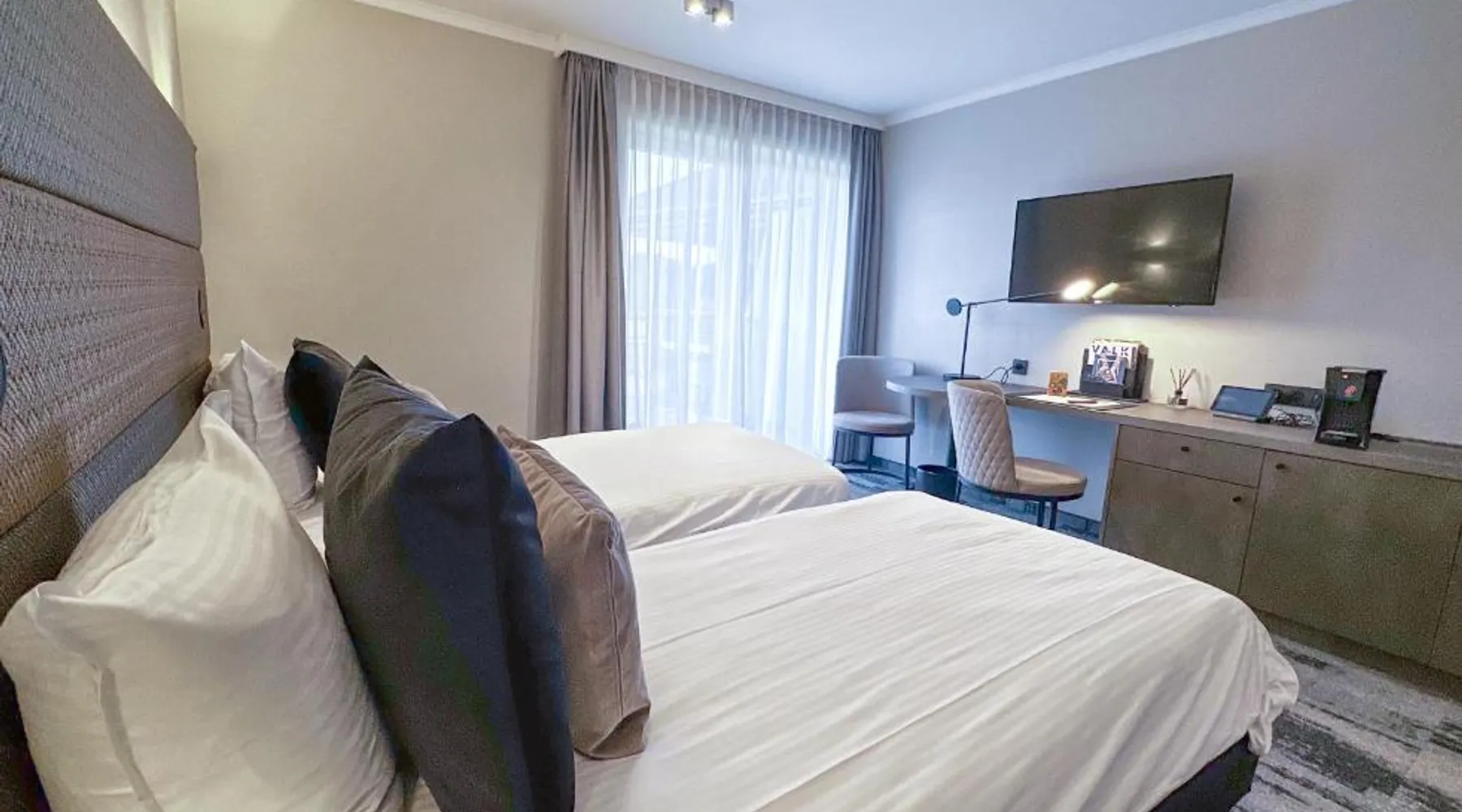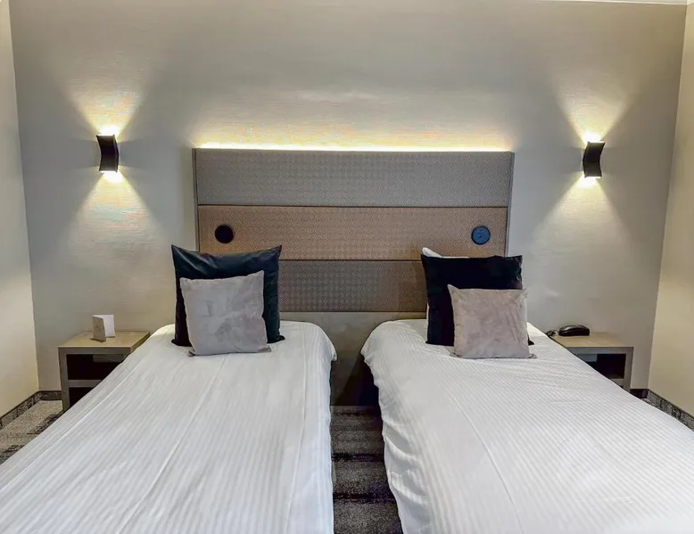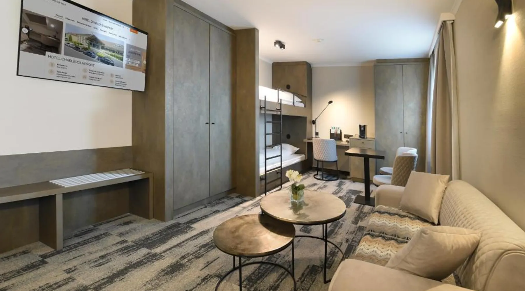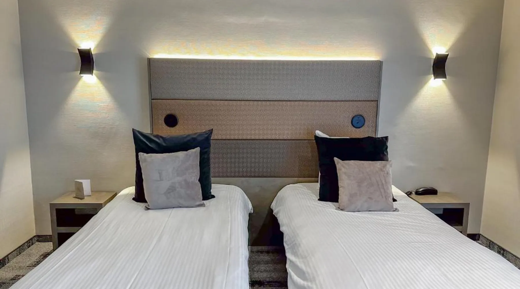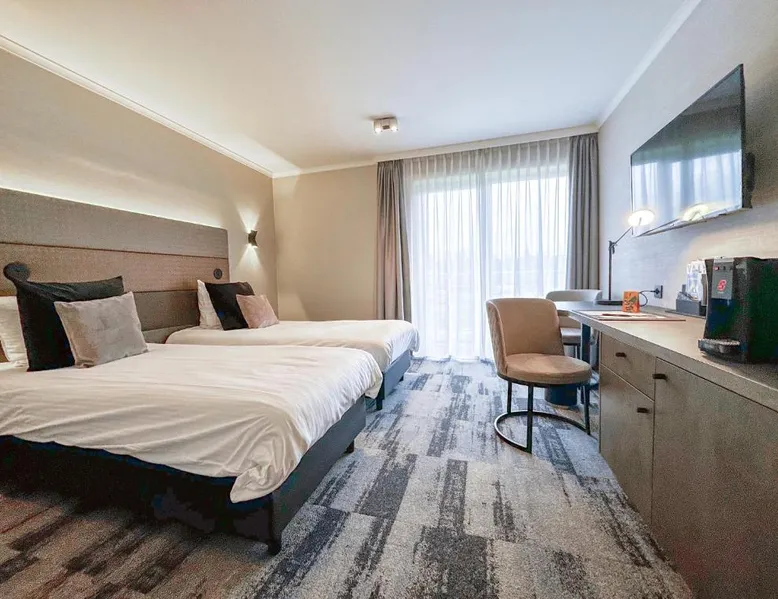 Hotel Charleroi Airport - Van Der Valk is located 10 minutes' drive from Charleroi Airport and benefits from a fitness center, a 24-hour front desk and free WiFi throughout. A shuttle service to Brussels South Charleroi Airport is available for a fee. Each of the soundproof rooms at Hotel Charleroi Airport - Van Der Valk has a seating area and a flat screen TV. The superior rooms include air conditioning and free use of a mini-bar stocked with soft drinks. This hotel features Brasserie-Restaurant Le Cent Quinze, which serves traditional French cuisine and seasonal specialties. A hot breakfast buffet is available daily for an extra charge. Courcelles-Motte Train Station is 1.1 mi away and the center of Charleroi is only a 10-minute drive away. Golf Château de la Tournette is 15 minutes’ drive from the Hotel Van Der Valk. The twin room features air conditioning, soundproof walls, as well as a private bathroom boasting a walk-in shower and a hairdryer. The unit has 2 beds.