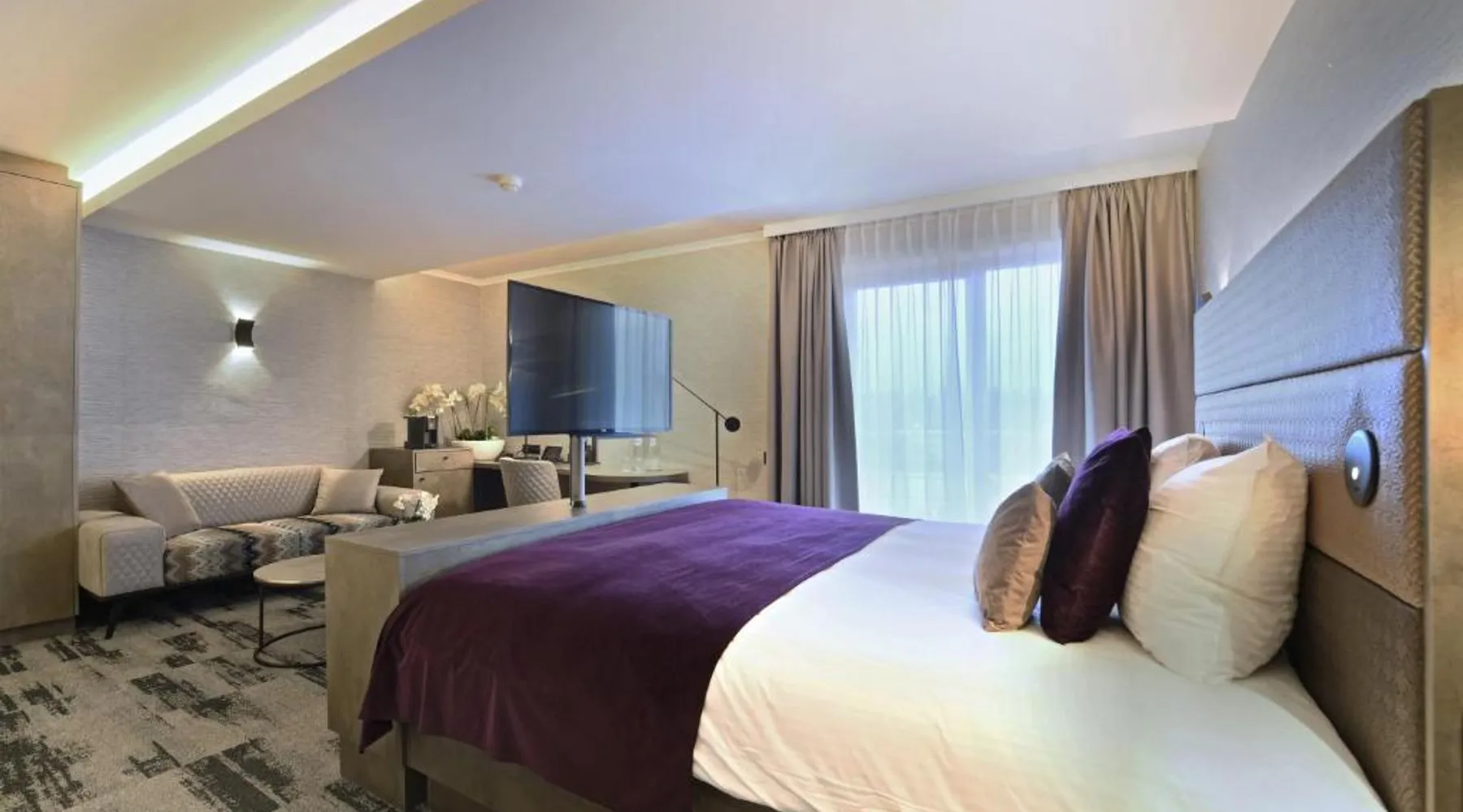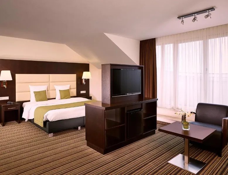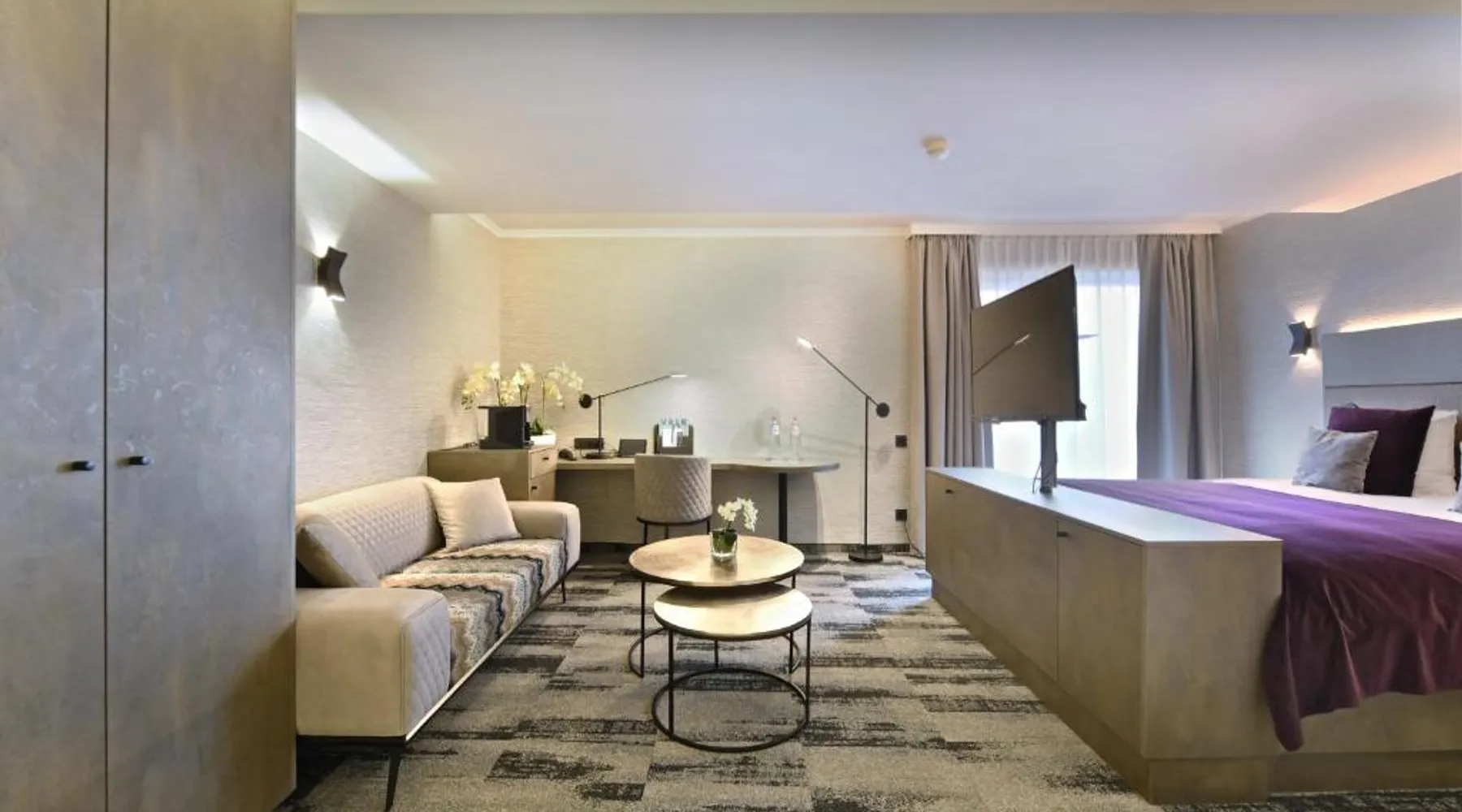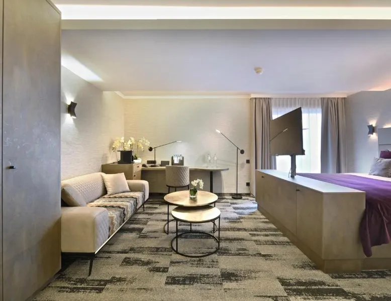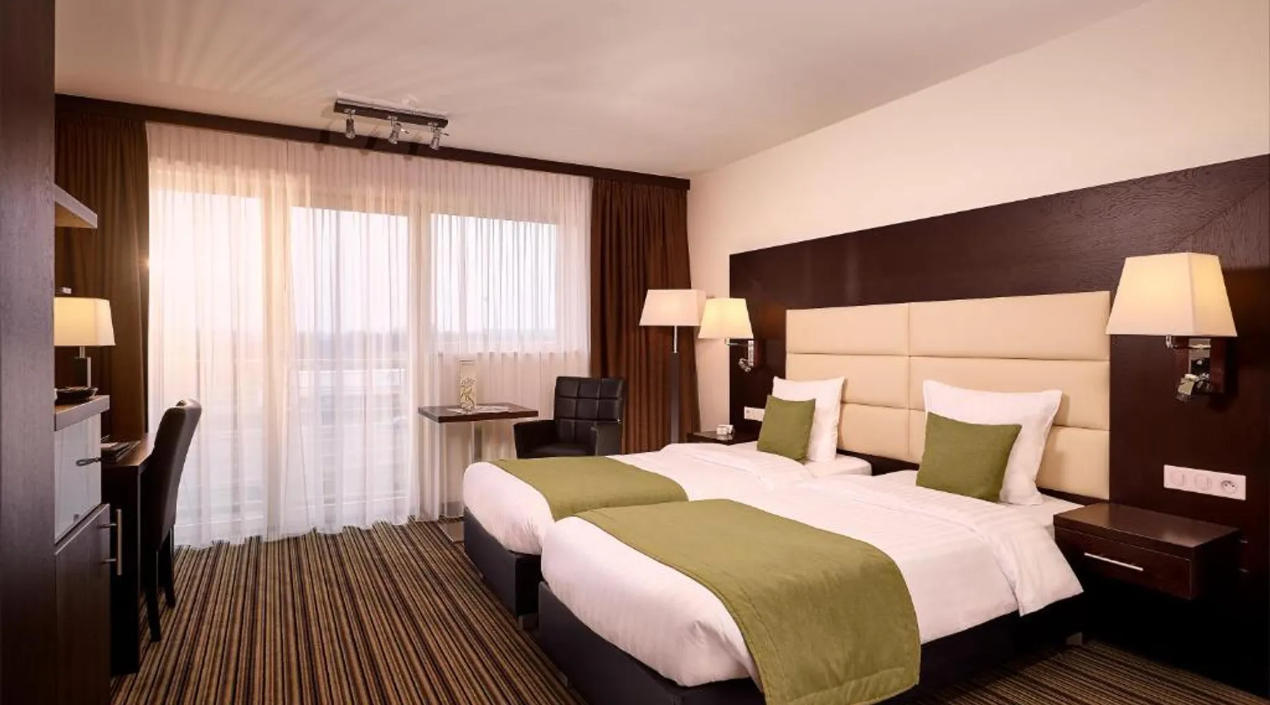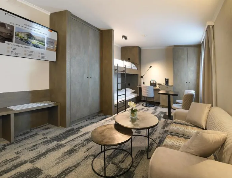 Hotel Charleroi Airport - Van Der Valk is located 10 minutes' drive from Charleroi Airport and benefits from a fitness center, a 24-hour front desk and free WiFi throughout. A shuttle service to Brussels South Charleroi Airport is available for a fee. Each of the soundproof rooms at Hotel Charleroi Airport - Van Der Valk has a seating area and a flat screen TV. The superior rooms include air conditioning and free use of a mini-bar stocked with soft drinks. This hotel features Brasserie-Restaurant Le Cent Quinze, which serves traditional French cuisine and seasonal specialties. A hot breakfast buffet is available daily for an extra charge. Courcelles-Motte Train Station is 1.1 mi away and the center of Charleroi is only a 10-minute drive away. Golf Château de la Tournette is 15 minutes’ drive from the Hotel Van Der Valk. The twin room features air conditioning, soundproof walls, as well as a private bathroom boasting a walk-in shower and a hairdryer. The unit has 2 beds.