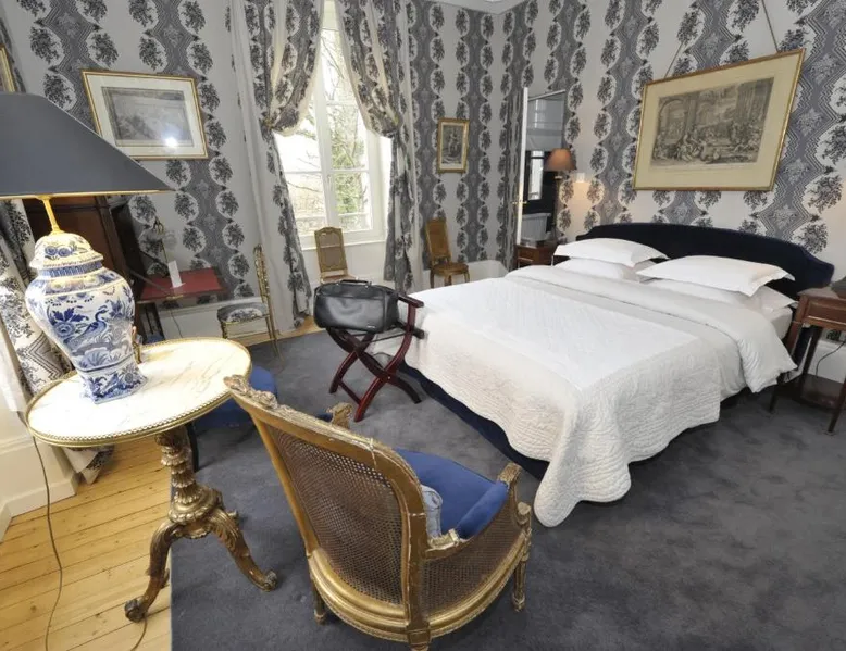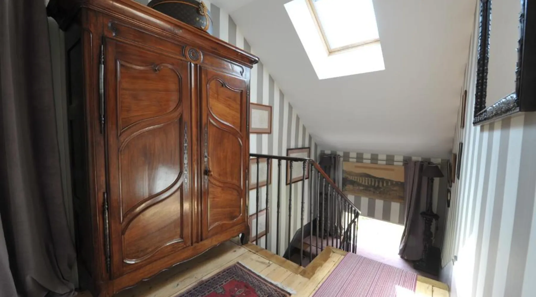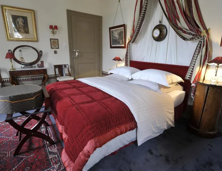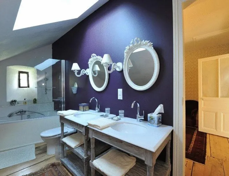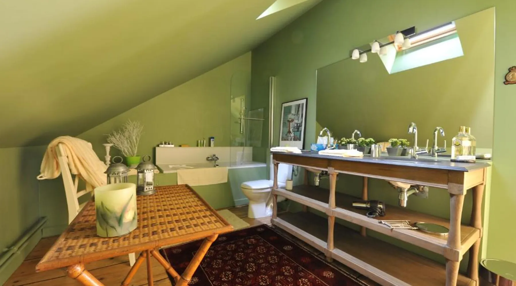 Historic Charm: La Maison D'hôtes du Parc in Ronchamp offers a unique stay within a historic building. Guests enjoy garden views and a sun terrace, complemented by free WiFi throughout the property. Comfortable Accommodations: The bed and breakfast features family rooms with private bathrooms, balconies, and parquet floors. Additional amenities include bathrobes, soundproofing, and a work desk, ensuring a relaxing and productive stay. Delicious Breakfast: A continental buffet breakfast is served daily, including local specialties, fresh pastries, pancakes, cheese, fruits, and juice. Vegetarian and gluten-free options are available, catering to diverse dietary needs. Activities and Attractions: Guests can participate in walking and bike tours, exploring nearby attractions such as Montbeliard Castle (20 mi) and the Museum of Modern Art of Belfort (13 mi). EuroAirport Mulhouse is 55 mi away, providing convenient travel options. Antique furniture and a view of the garden feature in this room. The bathroom has a massaging-jet shower.