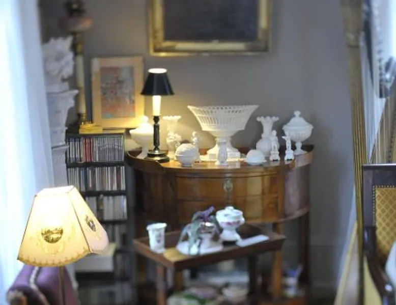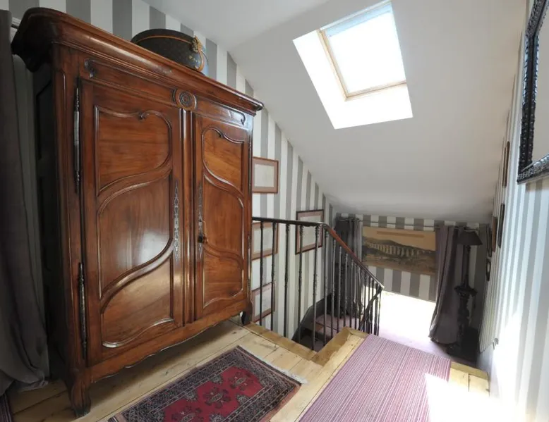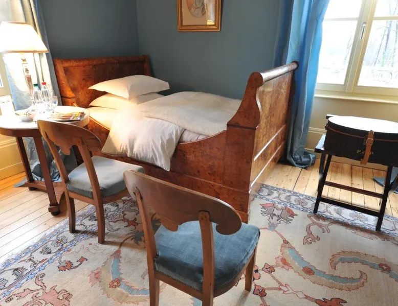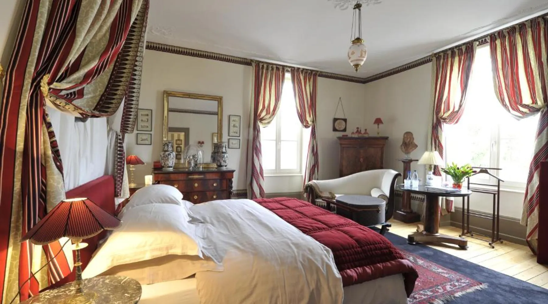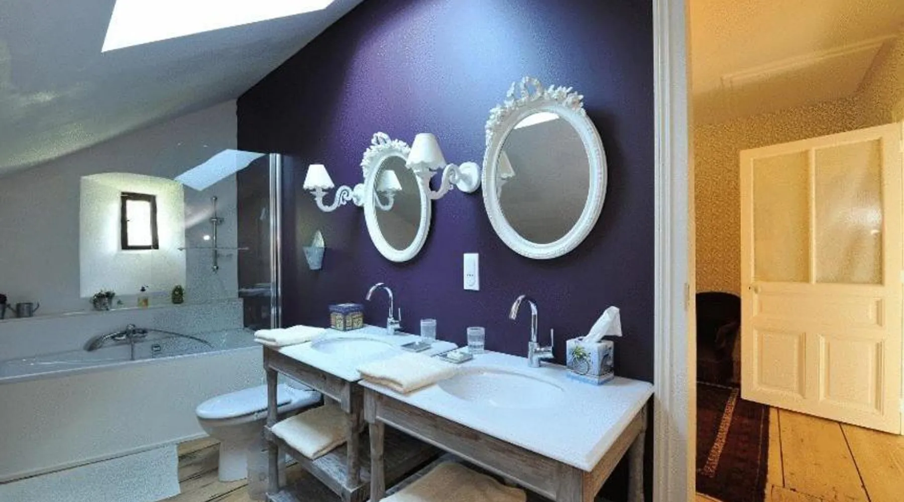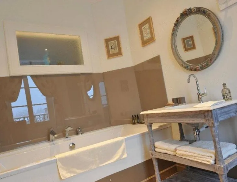 Historic Charm: La Maison D'hôtes du Parc in Ronchamp offers a unique stay within a historic building. Guests enjoy garden views and a sun terrace, complemented by free WiFi throughout the property. Comfortable Accommodations: The bed and breakfast features family rooms with private bathrooms, balconies, and parquet floors. Additional amenities include bathrobes, soundproofing, and a work desk, ensuring a relaxing and productive stay. Delicious Breakfast: A continental buffet breakfast is served daily, including local specialties, fresh pastries, pancakes, cheese, fruits, and juice. Vegetarian and gluten-free options are available, catering to diverse dietary needs. Activities and Attractions: Guests can participate in walking and bike tours, exploring nearby attractions such as Montbeliard Castle (20 mi) and the Museum of Modern Art of Belfort (13 mi). EuroAirport Mulhouse is 55 mi away, providing convenient travel options. Antique furniture and a view of the garden feature in this room. The bathroom has a massaging-jet shower.