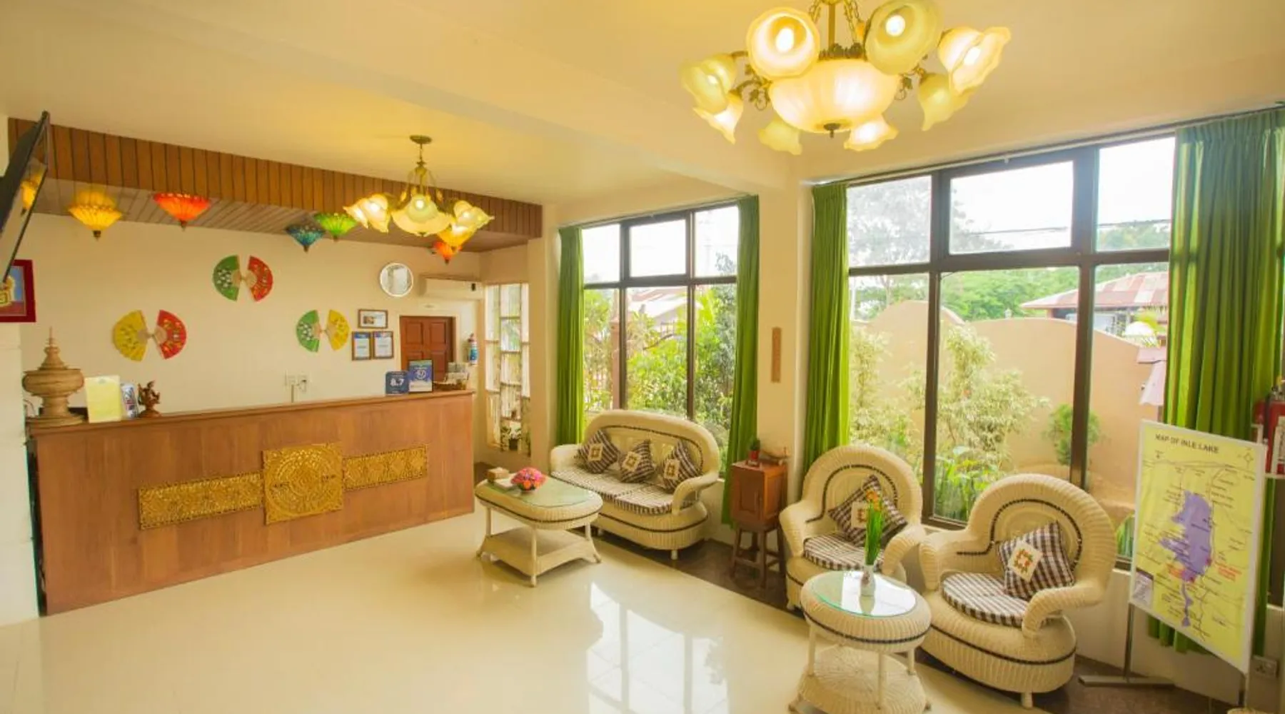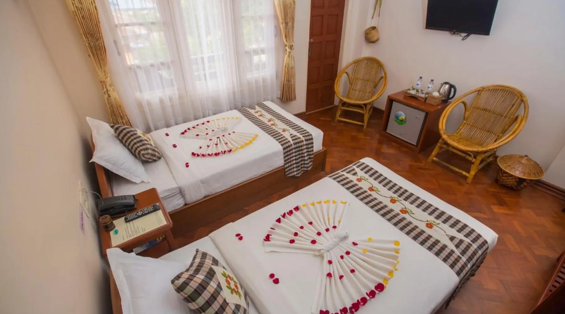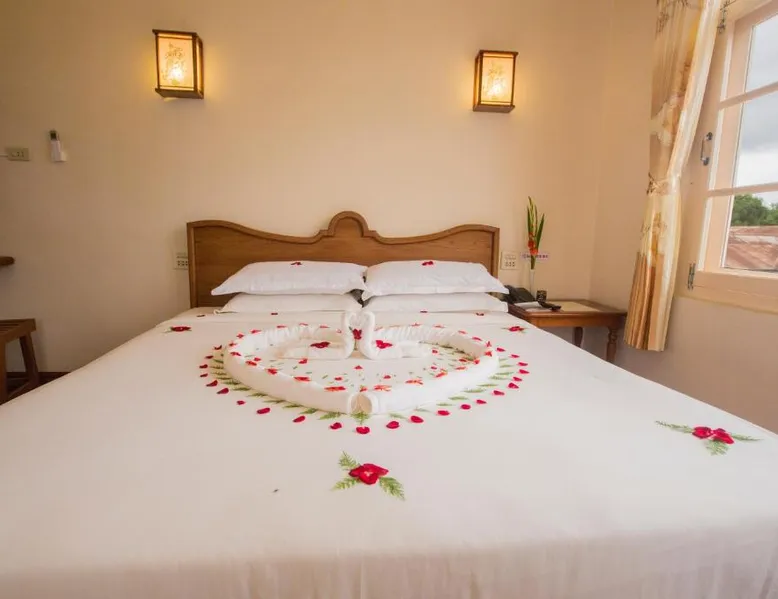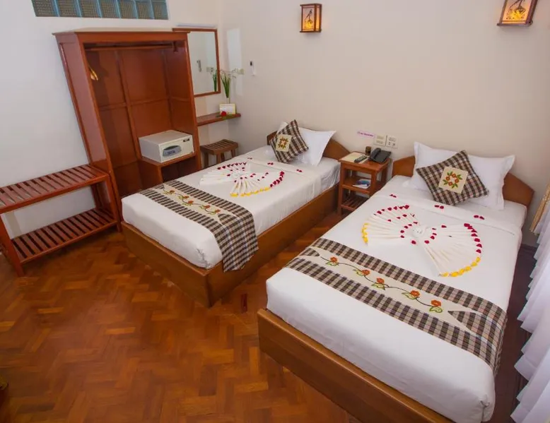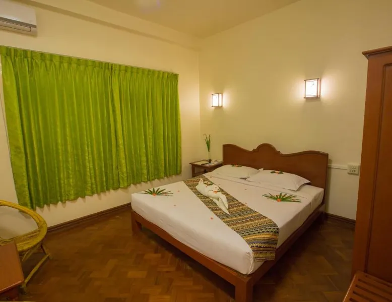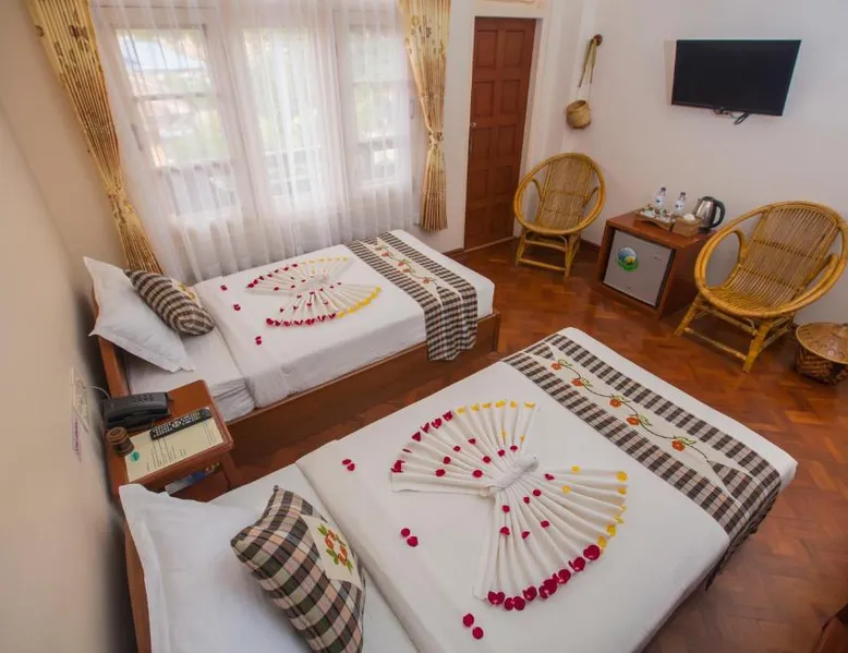 Comfortable Accommodations: Inle Apex Hotel in Nyaung Shwe offers family rooms with air-conditioning, private bathrooms, and free WiFi. Each room includes a tea and coffee maker, walk-in shower, and TV. Relaxing Facilities: Guests can enjoy a garden and terrace, perfect for relaxation. Additional amenities include a balcony, mini-bar, and work desk. Convenient Services: The hotel provides a paid shuttle service, 24-hour front desk, concierge, and tour desk. Free on-site private parking is available. Local Attractions: Inle Lake is 9.9 mi away, Maing Thauk Bridge 8.1 mi, and Heho Airport 16 mi from the property. Cycling activities are popular in the surrounding area. This air-conditioned room offers a seating area, a flat-screen satellite TV and an private bathroom. This room type is able to accommodate an extra bed.