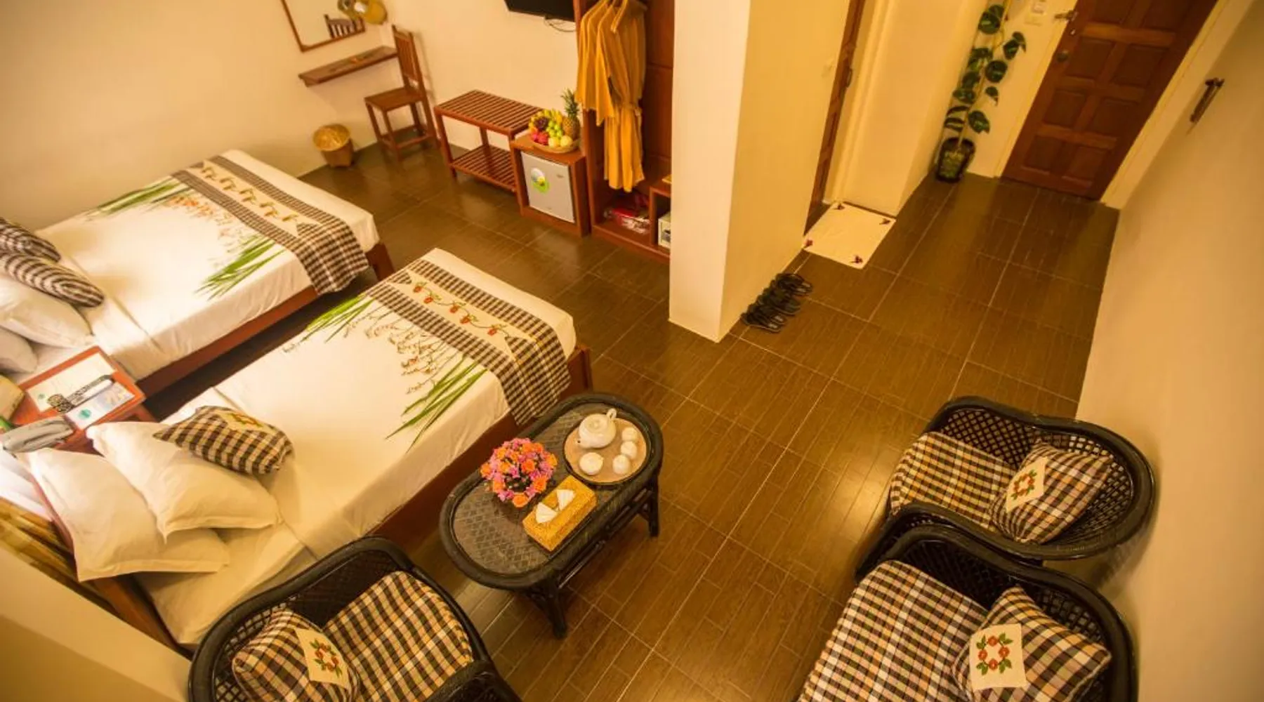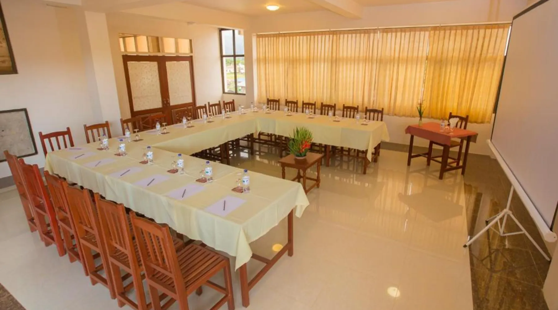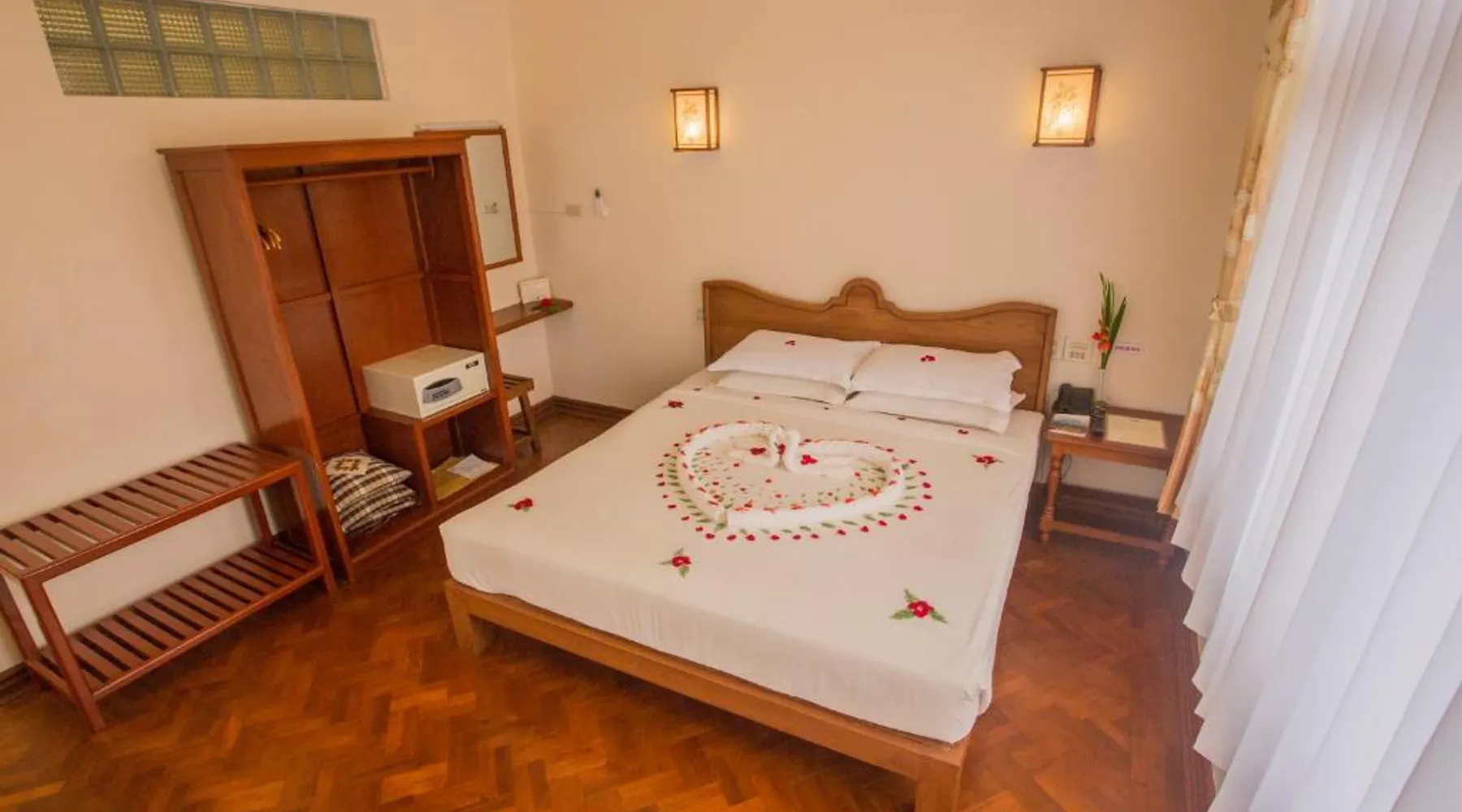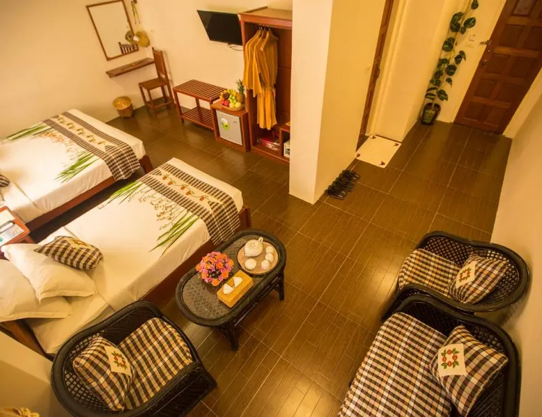 Comfortable Accommodations: Inle Apex Hotel in Nyaung Shwe offers family rooms with air-conditioning, private bathrooms, and free WiFi. Each room includes a tea and coffee maker, walk-in shower, and TV. Relaxing Facilities: Guests can enjoy a garden and terrace, perfect for relaxation. Additional amenities include a balcony, mini-bar, and work desk. Convenient Services: The hotel provides a paid shuttle service, 24-hour front desk, concierge, and tour desk. Free on-site private parking is available. Local Attractions: Inle Lake is 9.9 mi away, Maing Thauk Bridge 8.1 mi, and Heho Airport 16 mi from the property. Cycling activities are popular in the surrounding area. This air-conditioned room offers a seating area, a flat-screen satellite TV and an private bathroom. This room type is able to accommodate an extra bed.