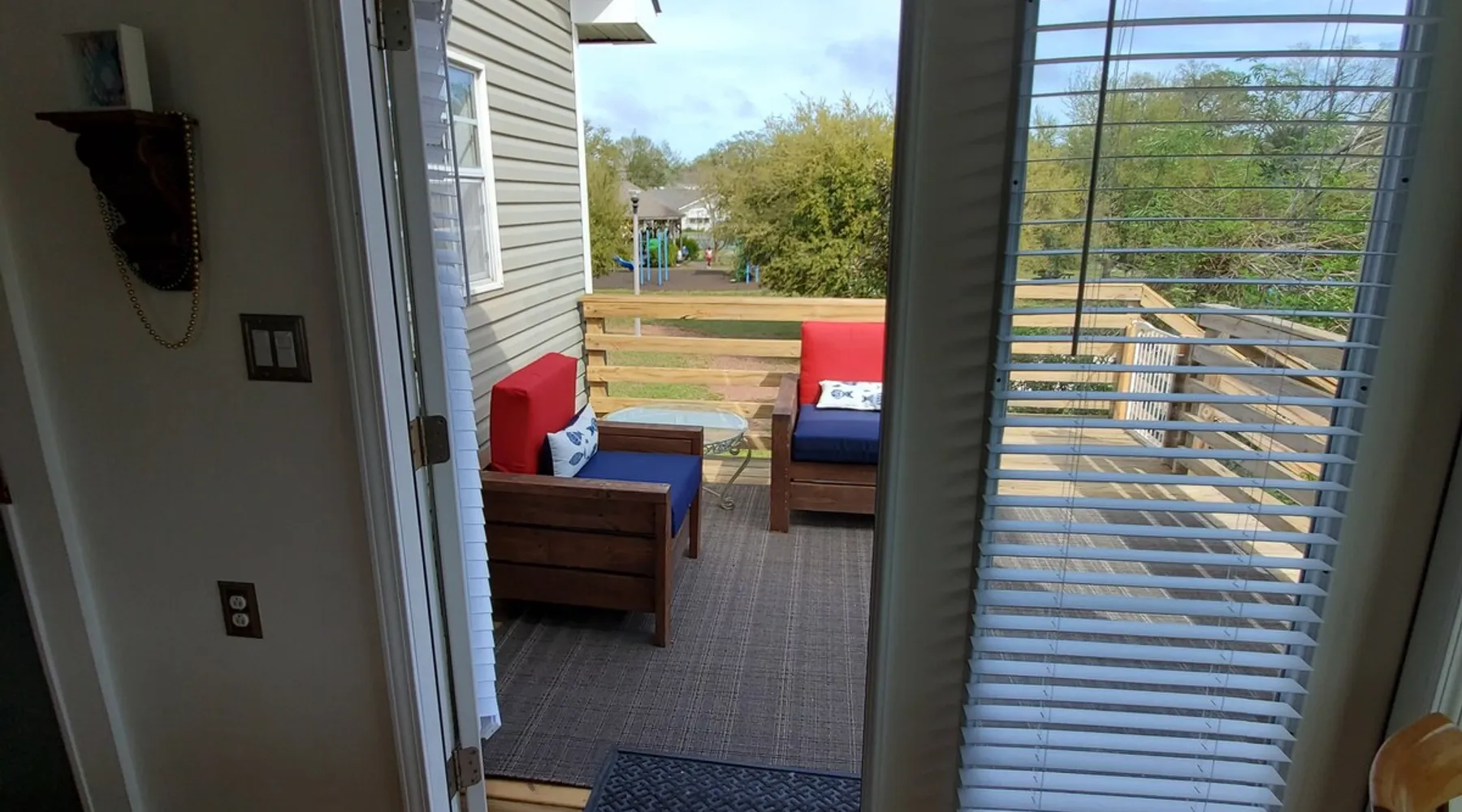 Come to the beach & bring your pet with you fee free! Your home will be the top townhouse of a 2 story duplex with a partial ocean view. You have a livingroom/dinning combo with french doors to the porch, grill, & yard, 2 bedrooms, a full well equipped kitchen, and laundry. There is a beautiful park on 2 sides with walking trail, play equipment, tennis & basketball courts. Walk distance to the beach, to fine & casual dining, and a 5 minute bike ride to downtown. The railroad is behind the park. The space The house is decorated with a casual New Orleans jazz theme. You have both Wifi & satellite tv. If you like trains you will love this house! The tracks run just behind the park and the trains come through several times both during the day and night. They whistle at the crossings. We have private parking including space for a long car trailer for Crusin the Coast. We don’t charge a pet fee. Besides the beach and many great local dining options there are lots of other attractions including casinos, museums, shopping, golf, etc. All are minutes away. Guest access We meet and greet all of our guests to make sure they have the best experience possible. You will have the whole upstairs townhouse to yourself with your own front and back doors, along with a large unfenced front yard and private parking. Other things to note 1. We meet and greet all our guests at check in, show them around , & provide them with their door code at this time. 2. Guest must message us in the AirB&B app 30 minutes prior to arrival for checking in. 3. The 3rd bed is a twin size hotel type rollaway bed. 4. The living room couch is NOT a pullout. 5. There are two bedrooms. One has a king bed, the other has a queen bed. 6. Trains come through both day & night & whistle at the crossings. 7. You will have the top floor townhouse of a 2 story duplex. 8. The house has a beautiful park on two sides. 9. The house is a 5 minute walk to the beach.