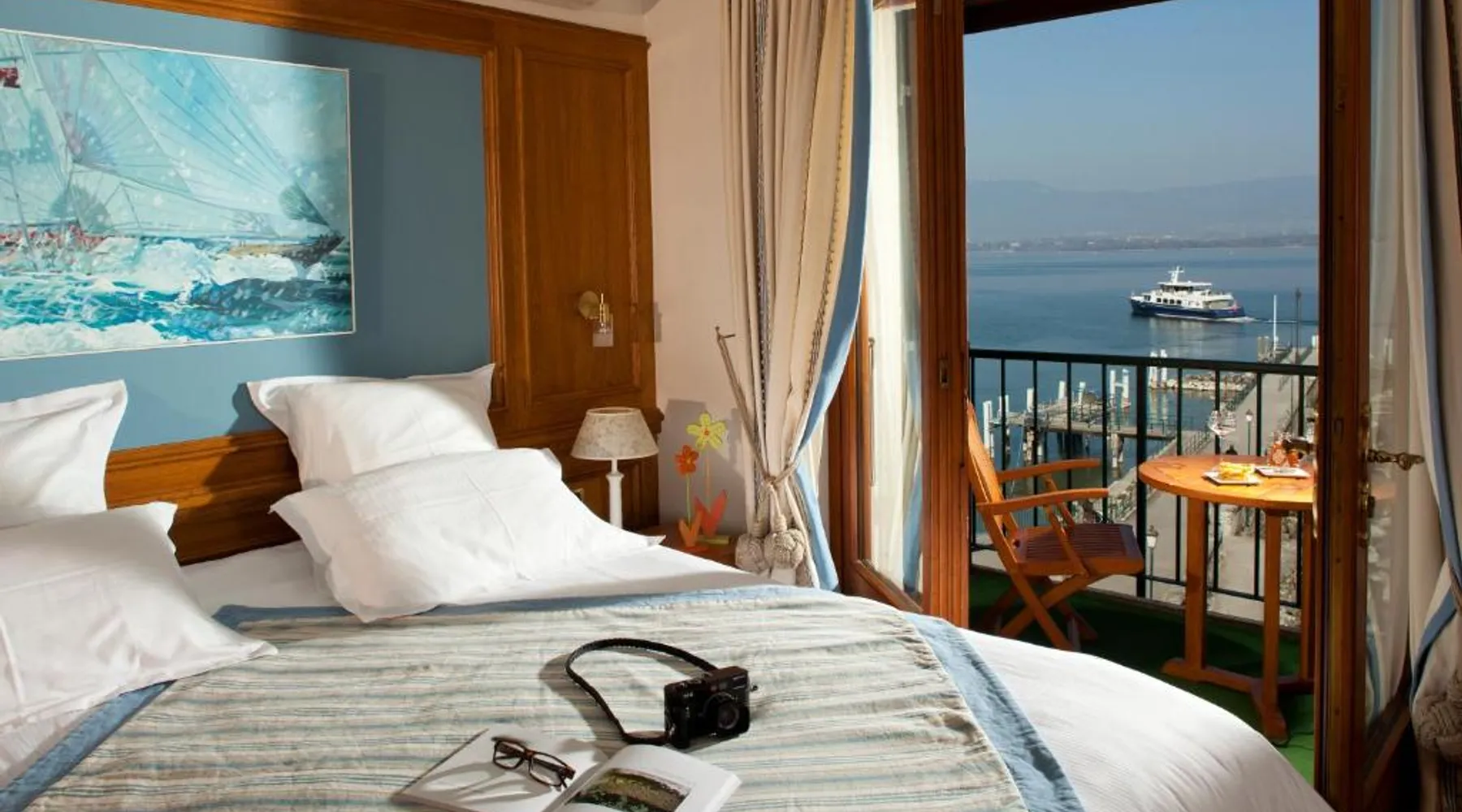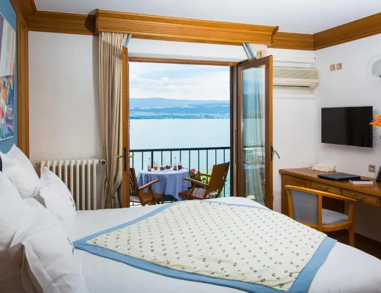 Hotel Restaurant du Port is located between Geneva and Evian at the edge of Lake Geneva. Free Wi-Fi is available. Each du Port room has air conditioning, cable TV, a private bathroom, hair dryer, telephone and safe. The hotel has a restaurant overlooking the lake. Hotel Restaurant du Port is 16 miles from Geneva and Evian. Private parking is available. The air-conditioned suite has 1 bedroom and 1 bathroom with a bath and a hairdryer. Boasting a balcony with lake views, this suite also offers soundproof walls and a flat-screen TV with cable channels. The unit has 3 beds.