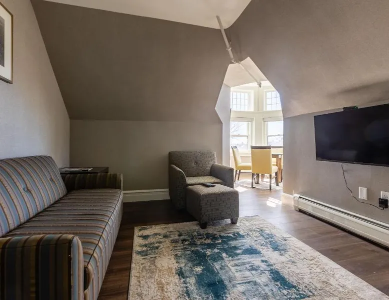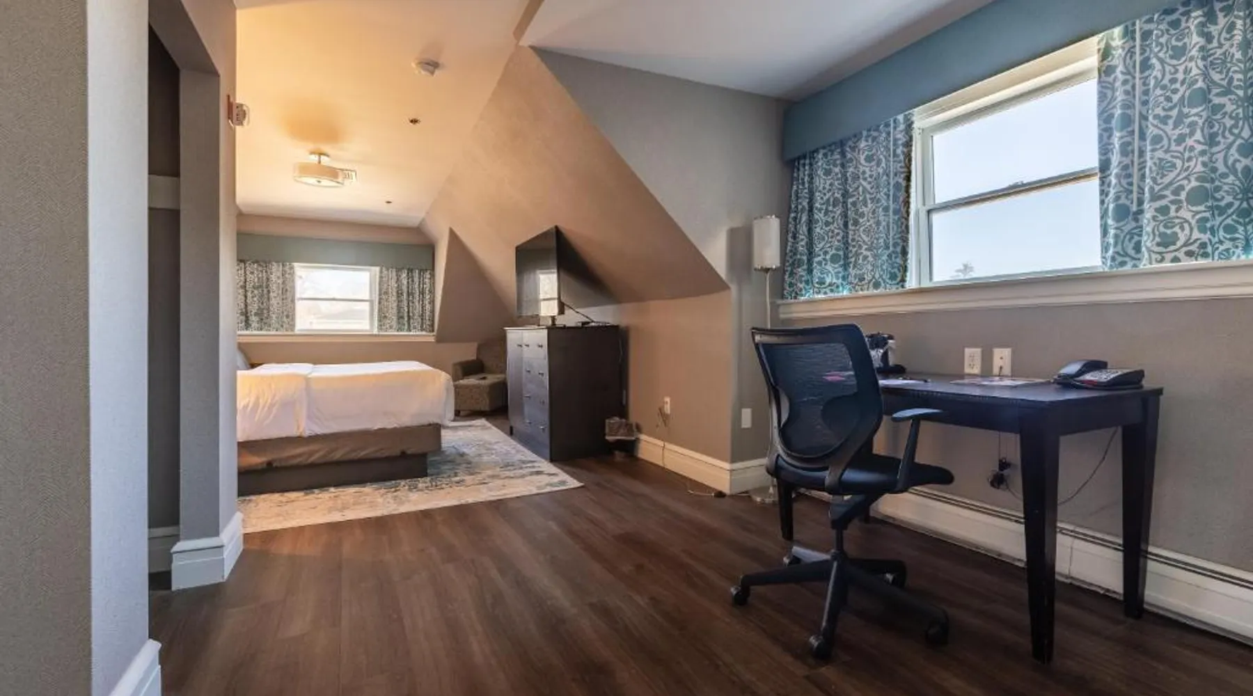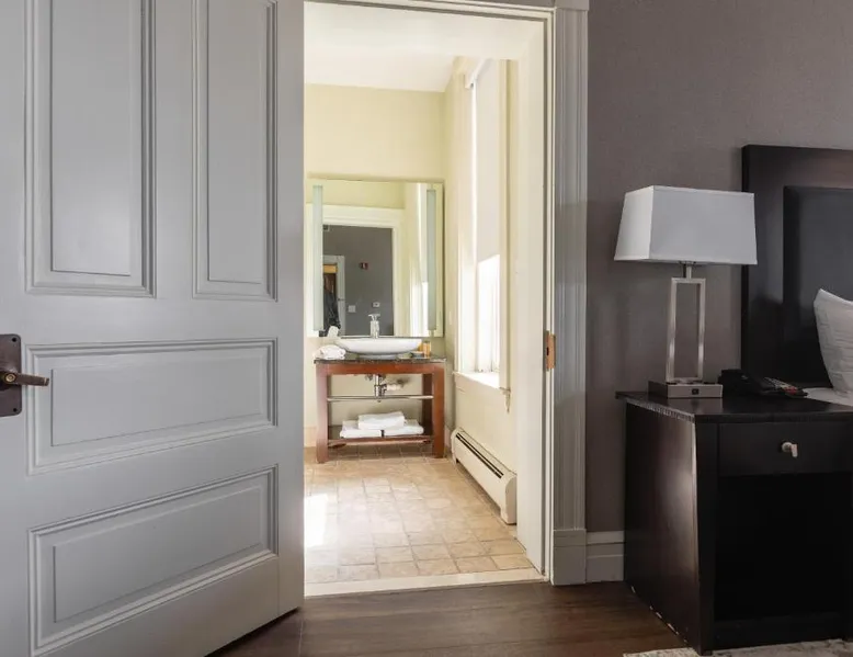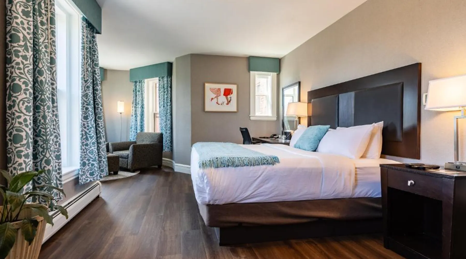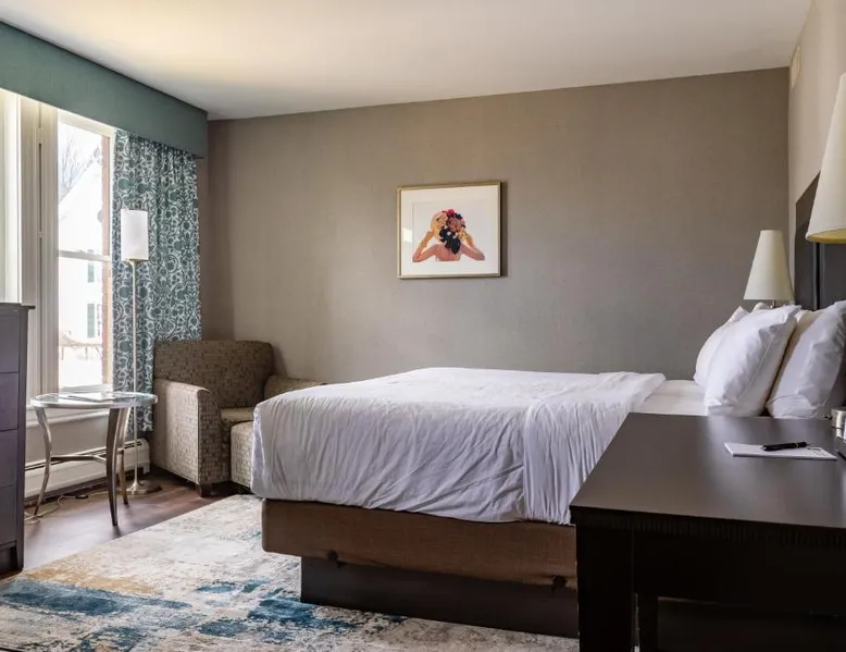 Historic Setting: The Centennial Hotel in Concord is housed in a historic building, offering a unique and charming atmosphere. Comfortable Accommodations: Rooms feature air-conditioning, private bathrooms with walk-in showers, and modern amenities such as free toiletries and flat-screen TVs. Dining Experience: Guests can enjoy a modern, romantic restaurant serving American cuisine with vegetarian, vegan, gluten-free, and dairy-free options. Breakfast includes fresh pastries, fruits, and juice. Facilities and Services: The hotel offers a fitness center, bar, and outdoor seating area. Additional services include a 24-hour front desk, room service, and paid on-site private parking. Nearby Attractions: Located 22 mi from Manchester Boston Regional Airport, the hotel is close to New Hampshire State Capitol (13-minute walk), Concord Historic District (1.3 mi), and an ice-skating rink. This room is furnished with one king bed.