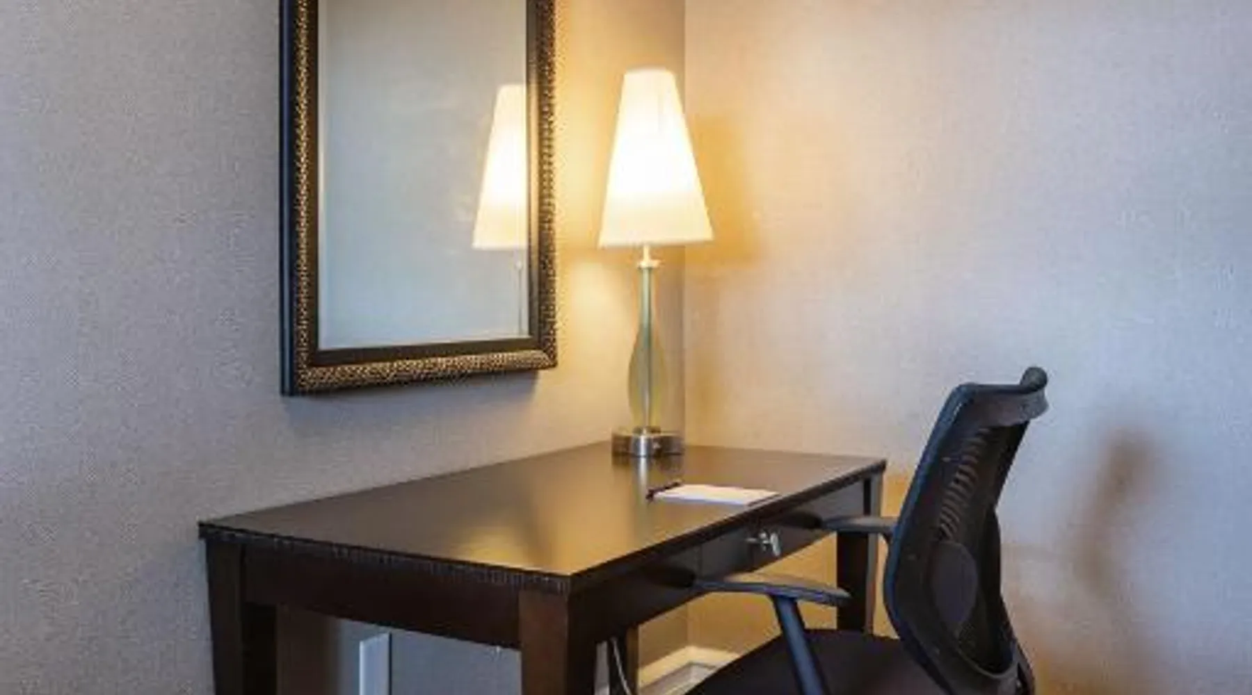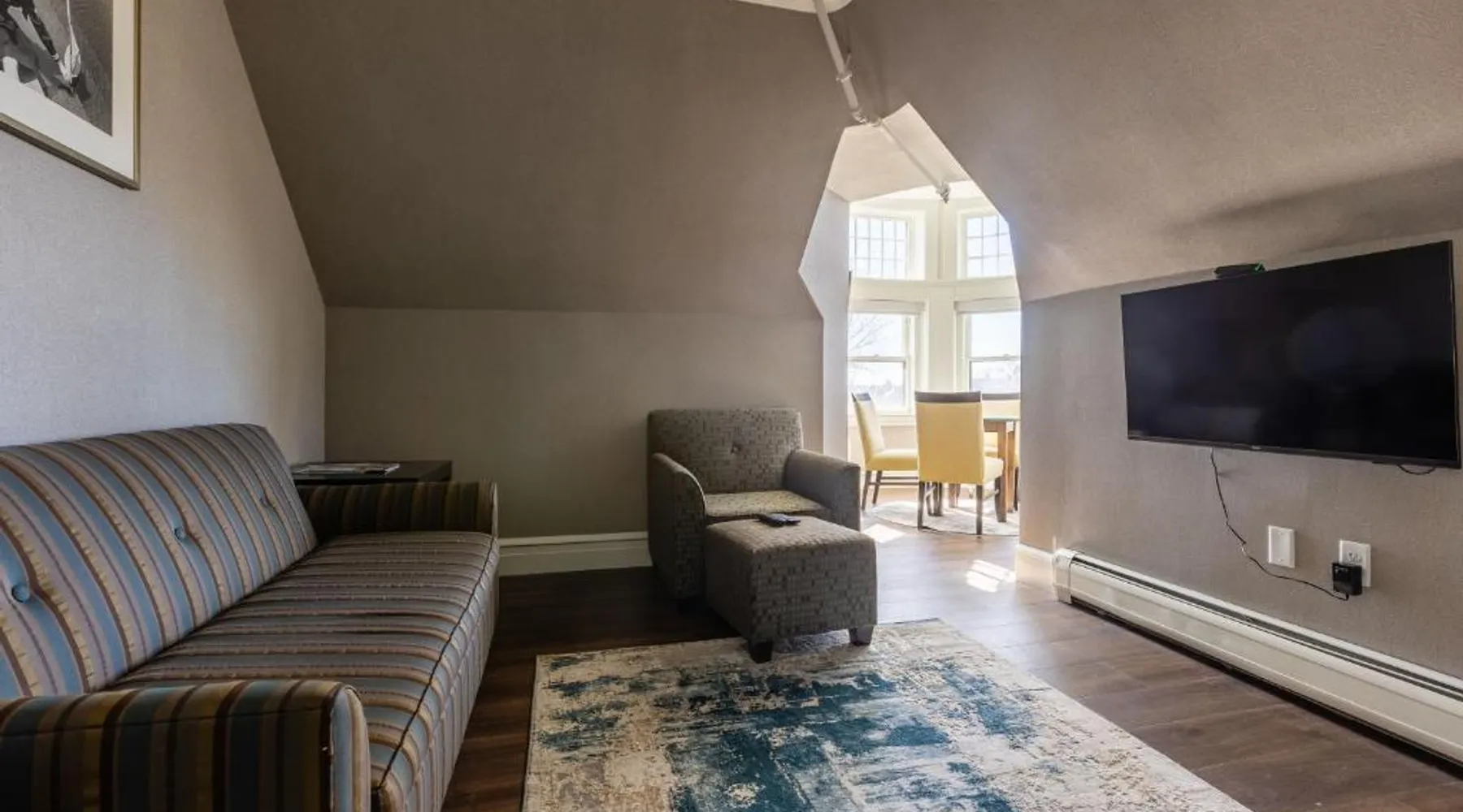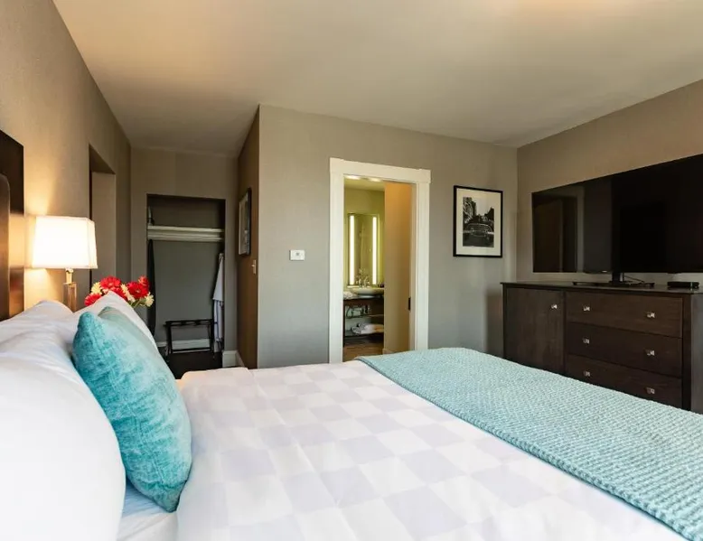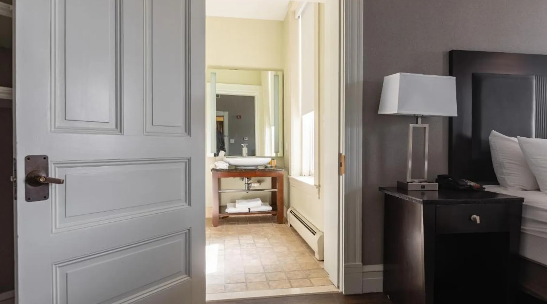 Historic Setting: The Centennial Hotel in Concord is housed in a historic building, offering a unique and charming atmosphere. Comfortable Accommodations: Rooms feature air-conditioning, private bathrooms with walk-in showers, and modern amenities such as free toiletries and flat-screen TVs. Dining Experience: Guests can enjoy a modern, romantic restaurant serving American cuisine with vegetarian, vegan, gluten-free, and dairy-free options. Breakfast includes fresh pastries, fruits, and juice. Facilities and Services: The hotel offers a fitness center, bar, and outdoor seating area. Additional services include a 24-hour front desk, room service, and paid on-site private parking. Nearby Attractions: Located 22 mi from Manchester Boston Regional Airport, the hotel is close to New Hampshire State Capitol (13-minute walk), Concord Historic District (1.3 mi), and an ice-skating rink. This room is furnished with one king bed.