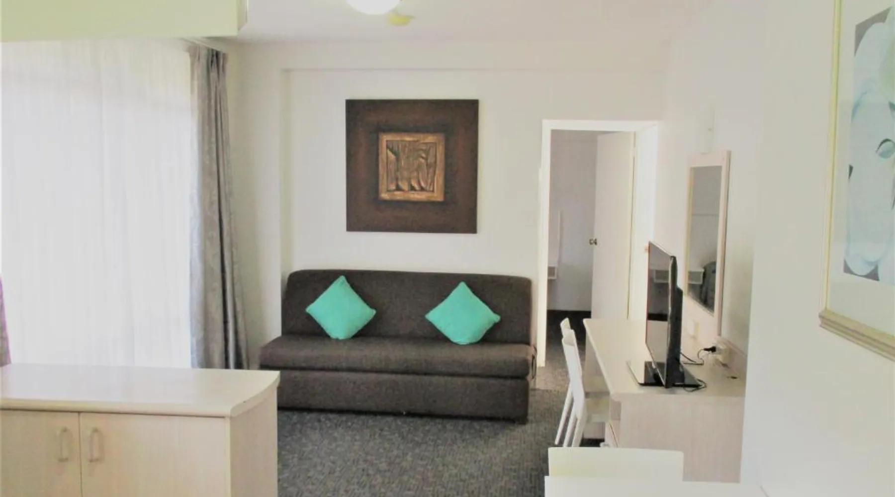 Just 5 minutes’ walk from North Cronulla Beach, Cronulla Motor Inn offers a swimming pool and a children’s playground. All rooms feature a flat-screen TV with free cable channels. Guests enjoy free WiFi and free parking. Cronulla Motel is within 5 minutes’ walk of several restaurants, bars and cafes. It is 7 minutes’ drive from Cronulla Marina, where you can catch a 30-minute ferry ride over to the Royal National Park. All rooms feature a refrigerator, wardrobe and tea/coffee making facilities. Each has a private bathroom with a shower and hairdryer. This air-conditioned room offers a flat-screen TV with free cable channels and includes tea/coffee making facilities. Please note that the bedding configuration in a Family room is: One Queen bed One Single bed and a Trundle
