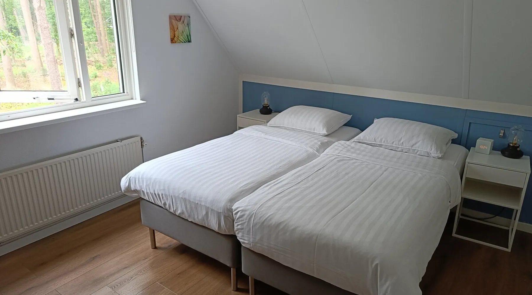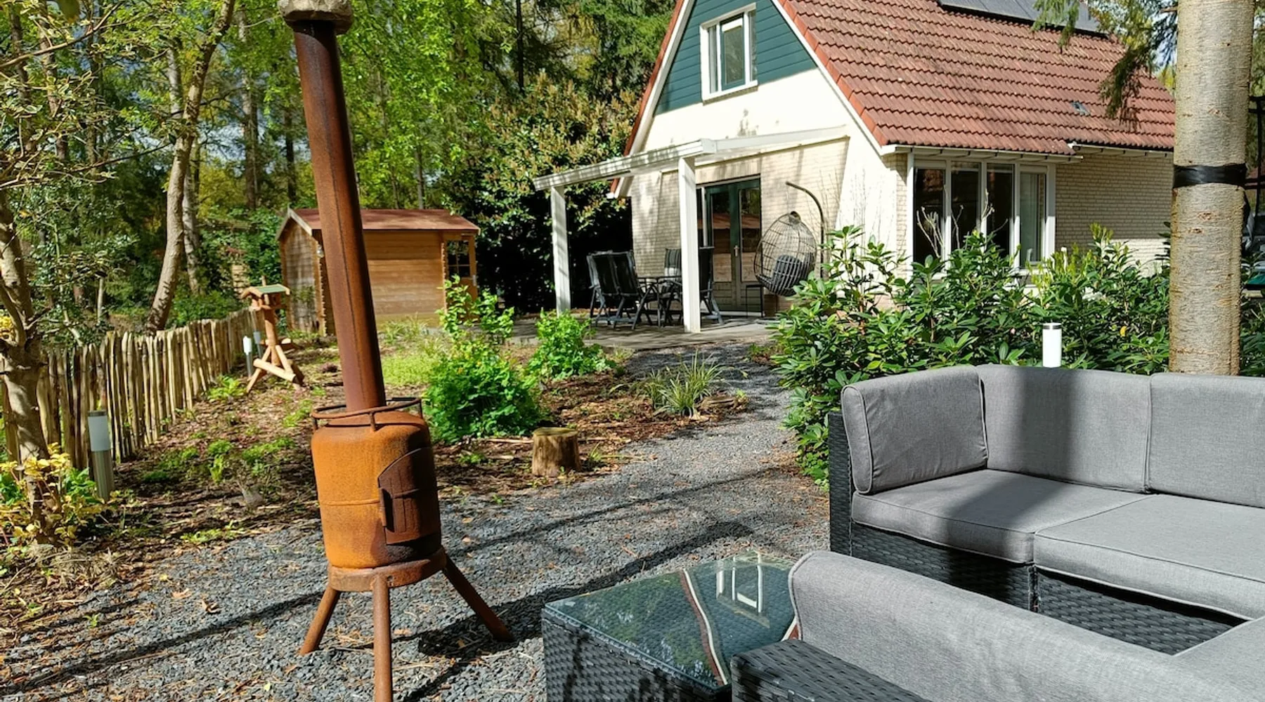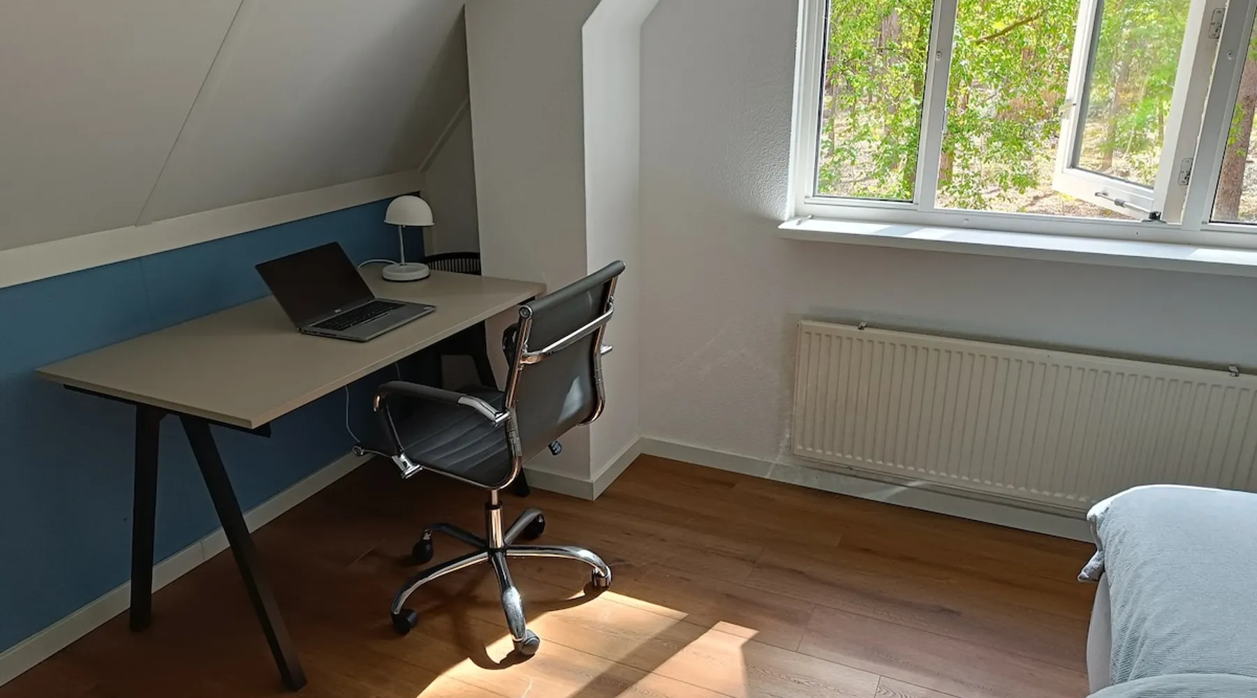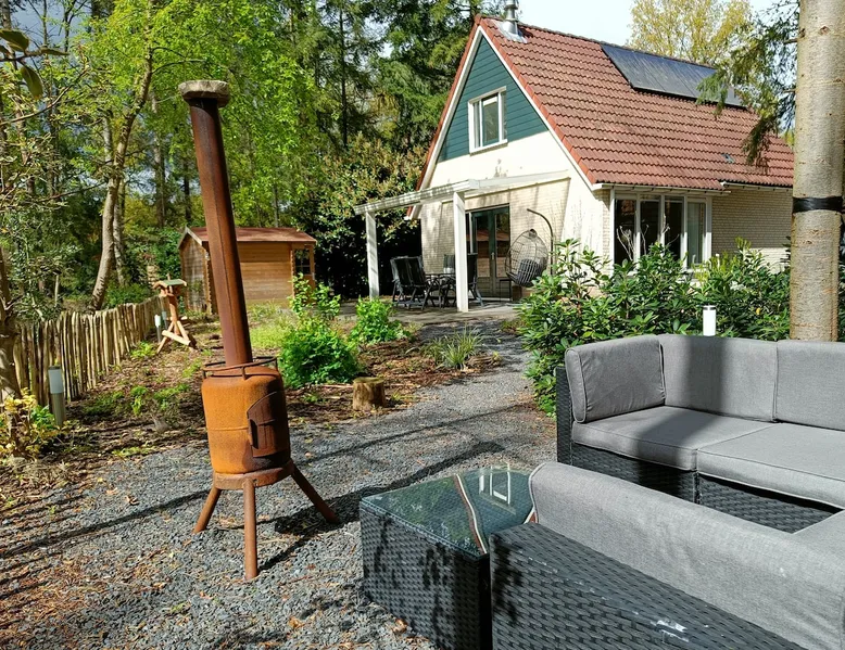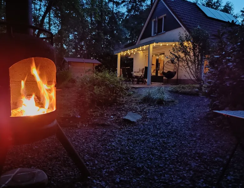 Our comfortable and fully furnished 3 bedroom forest villa offers privacy, tranquility and stunning views of the nearby woods. Two bikes are provided free of charge to get around the neighborhood. There is an outdoor fireplace to roast marshmallows and a hammock to enjoy the fantastic view. If you wish, you can rent bed linen (€10 p.p.). We make sure your beds are made before you arrive. We can also provide towels (€4 p.p.). The space On the ground floor you will find a bedroom with a double bed, a bathroom with shower and a separate toilet. On the second floor we have two bedrooms, each with two single beds. Upstairs we also have a second toilet.