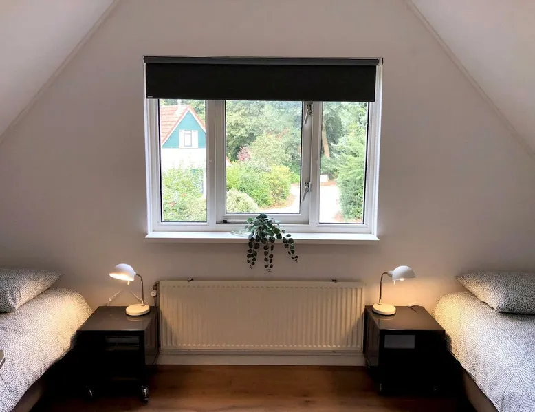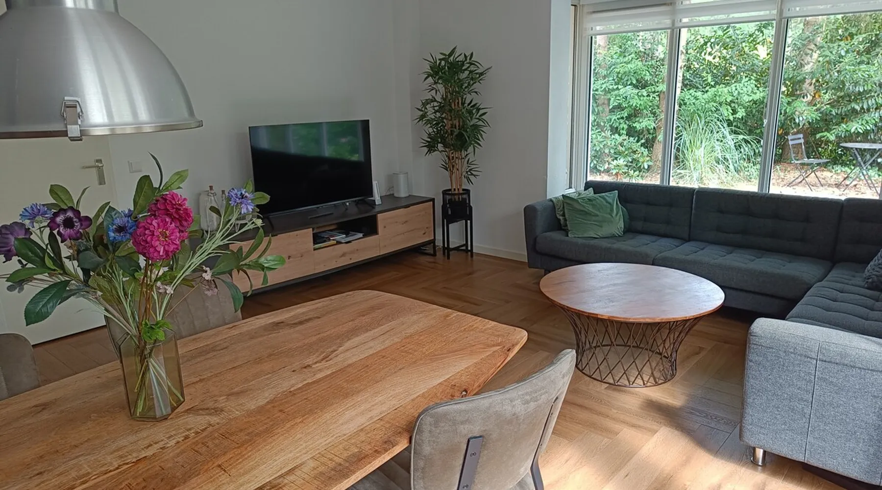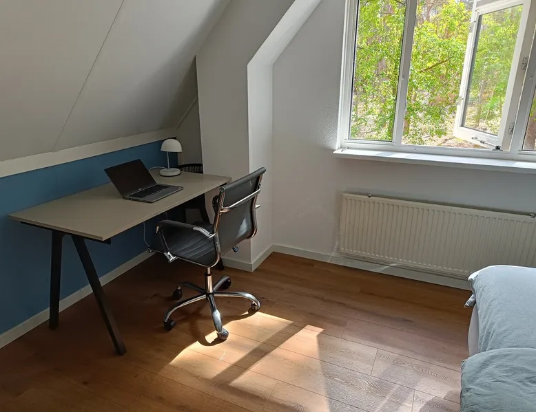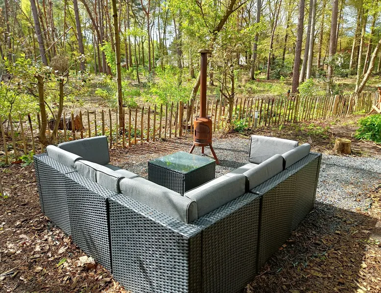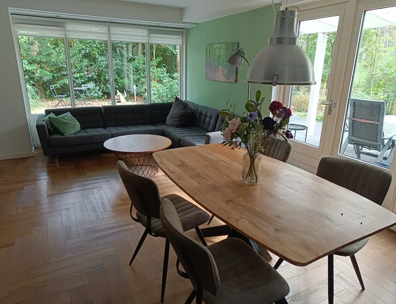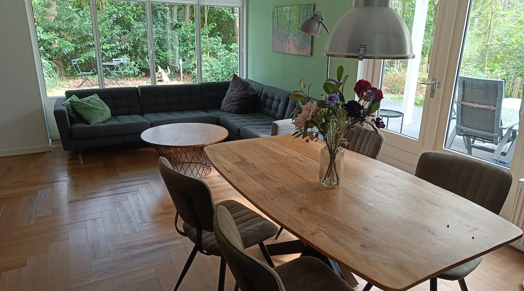 Our comfortable and fully furnished 3 bedroom forest villa offers privacy, tranquility and stunning views of the nearby woods. Two bikes are provided free of charge to get around the neighborhood. There is an outdoor fireplace to roast marshmallows and a hammock to enjoy the fantastic view. If you wish, you can rent bed linen (€10 p.p.). We make sure your beds are made before you arrive. We can also provide towels (€4 p.p.). The space On the ground floor you will find a bedroom with a double bed, a bathroom with shower and a separate toilet. On the second floor we have two bedrooms, each with two single beds. Upstairs we also have a second toilet.