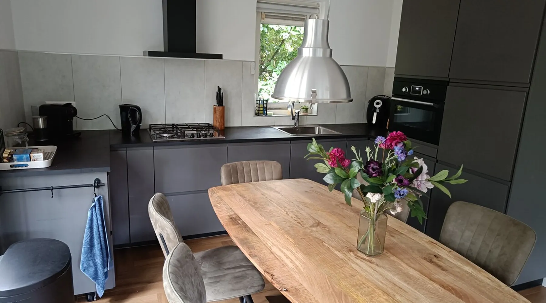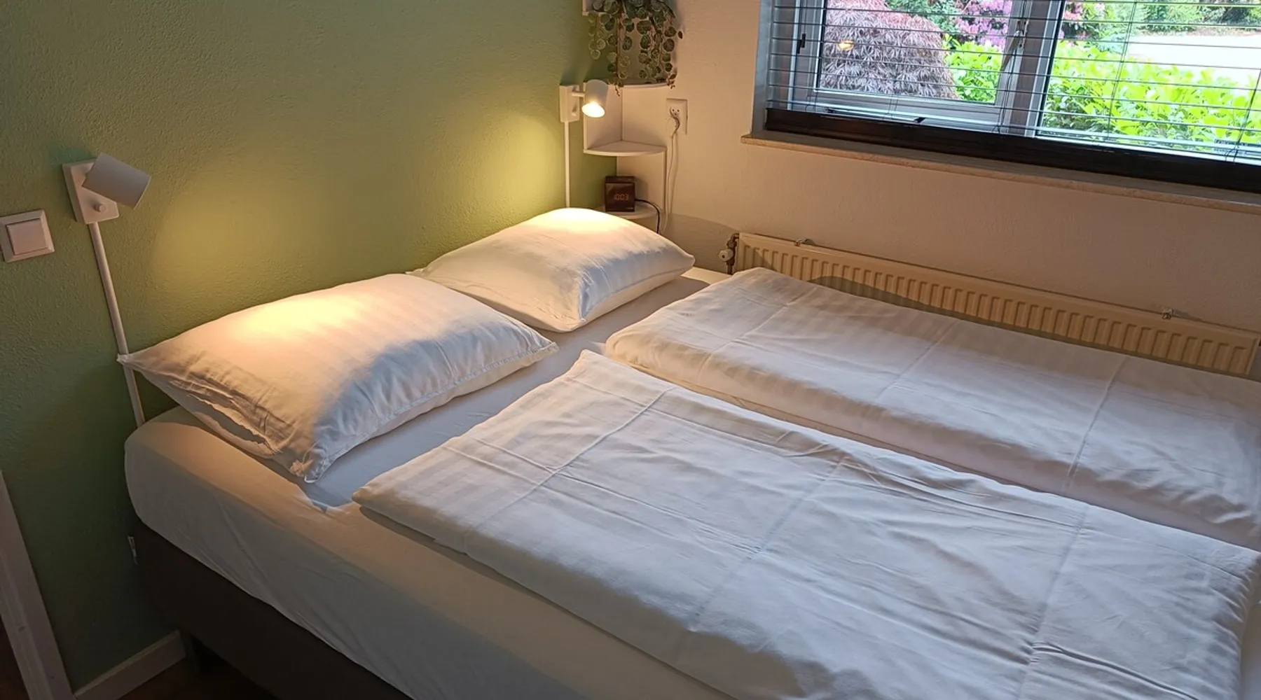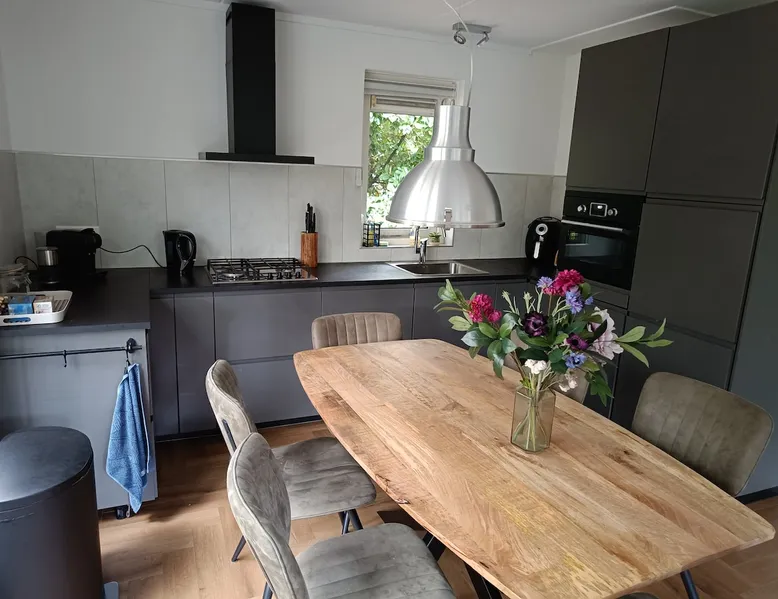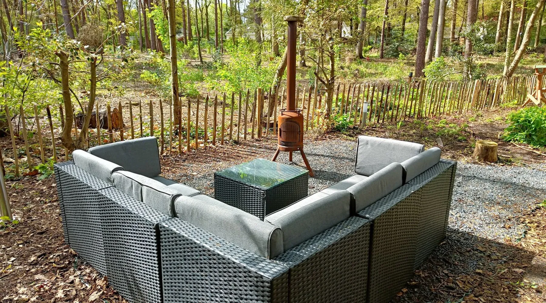 Our comfortable and fully furnished 3 bedroom forest villa offers privacy, tranquility and stunning views of the nearby woods. Two bikes are provided free of charge to get around the neighborhood. There is an outdoor fireplace to roast marshmallows and a hammock to enjoy the fantastic view. If you wish, you can rent bed linen (€10 p.p.). We make sure your beds are made before you arrive. We can also provide towels (€4 p.p.). The space On the ground floor you will find a bedroom with a double bed, a bathroom with shower and a separate toilet. On the second floor we have two bedrooms, each with two single beds. Upstairs we also have a second toilet.