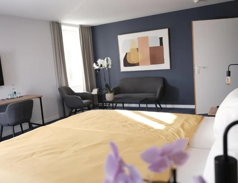 Comfortable Accommodations: Boutique Hôtel de l'Ecu Vaudois in Begnins offers family rooms with private bathrooms, air-conditioning, and free WiFi. Each room includes a refrigerator, TV, and soundproofing for a pleasant stay. Dining Experience: The romantic restaurant serves Italian cuisine with vegetarian options. Guests can enjoy lunch and dinner in a cozy setting, complemented by a continental breakfast featuring juice and cheese. Leisure Facilities: The hotel features a sun terrace, bar, and coffee shop. Additional amenities include a lounge, elevator, concierge service, and free on-site private parking. Prime Location: Located 18 mi from Geneva International Airport, the hotel is near attractions such as PalExpo and Jet d'Eau. An ice-skating rink is also in the vicinity. Highly rated for its attentive staff and excellent breakfast. The air-conditioned suite has 1 bedroom and 1 bathroom with a walk-in shower and a hairdryer. The suite features a flat-screen TV with cable channels, soundproof walls, a wardrobe, a safe deposit box as well as lake views. The unit has 2 beds.