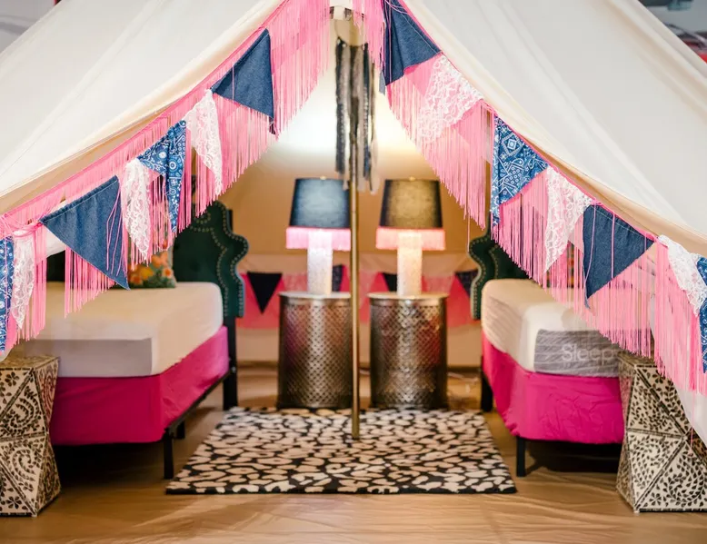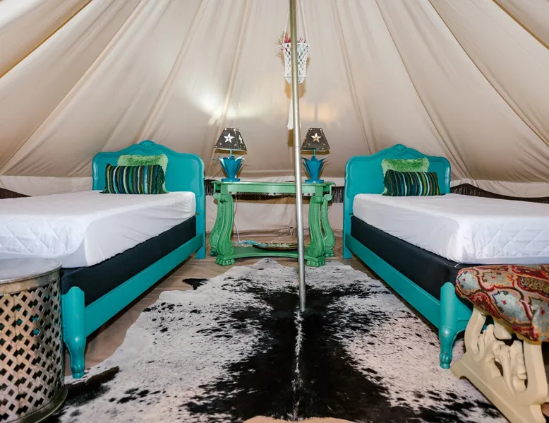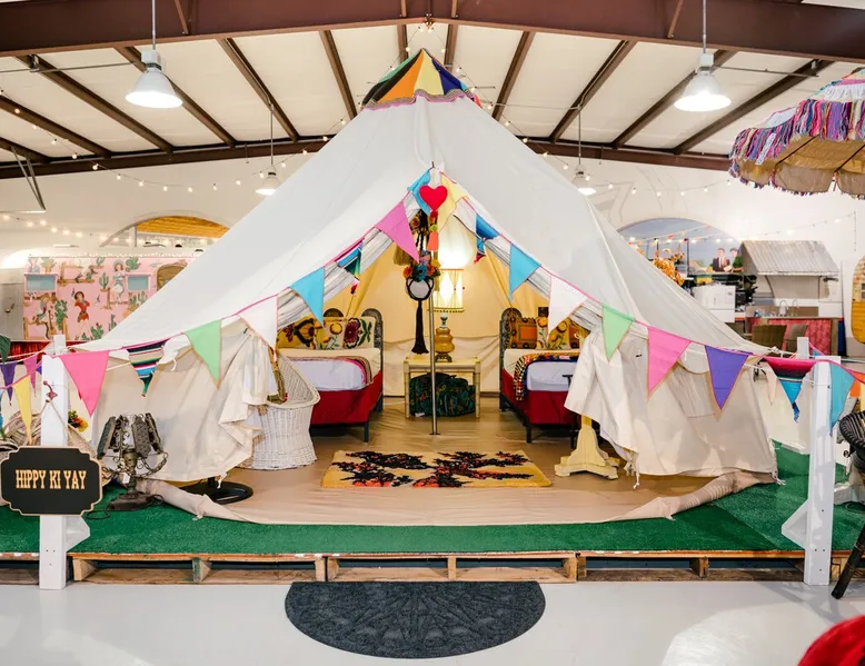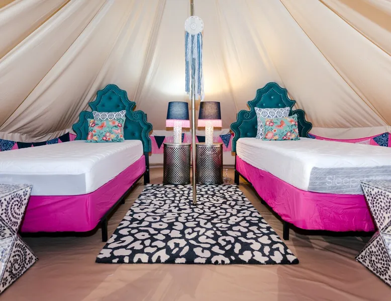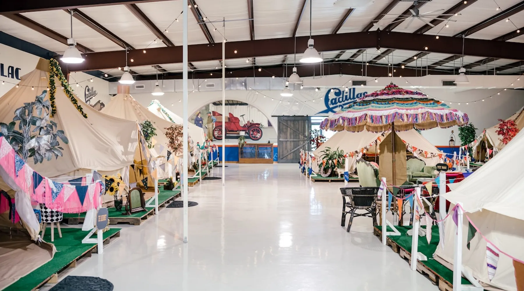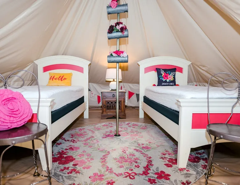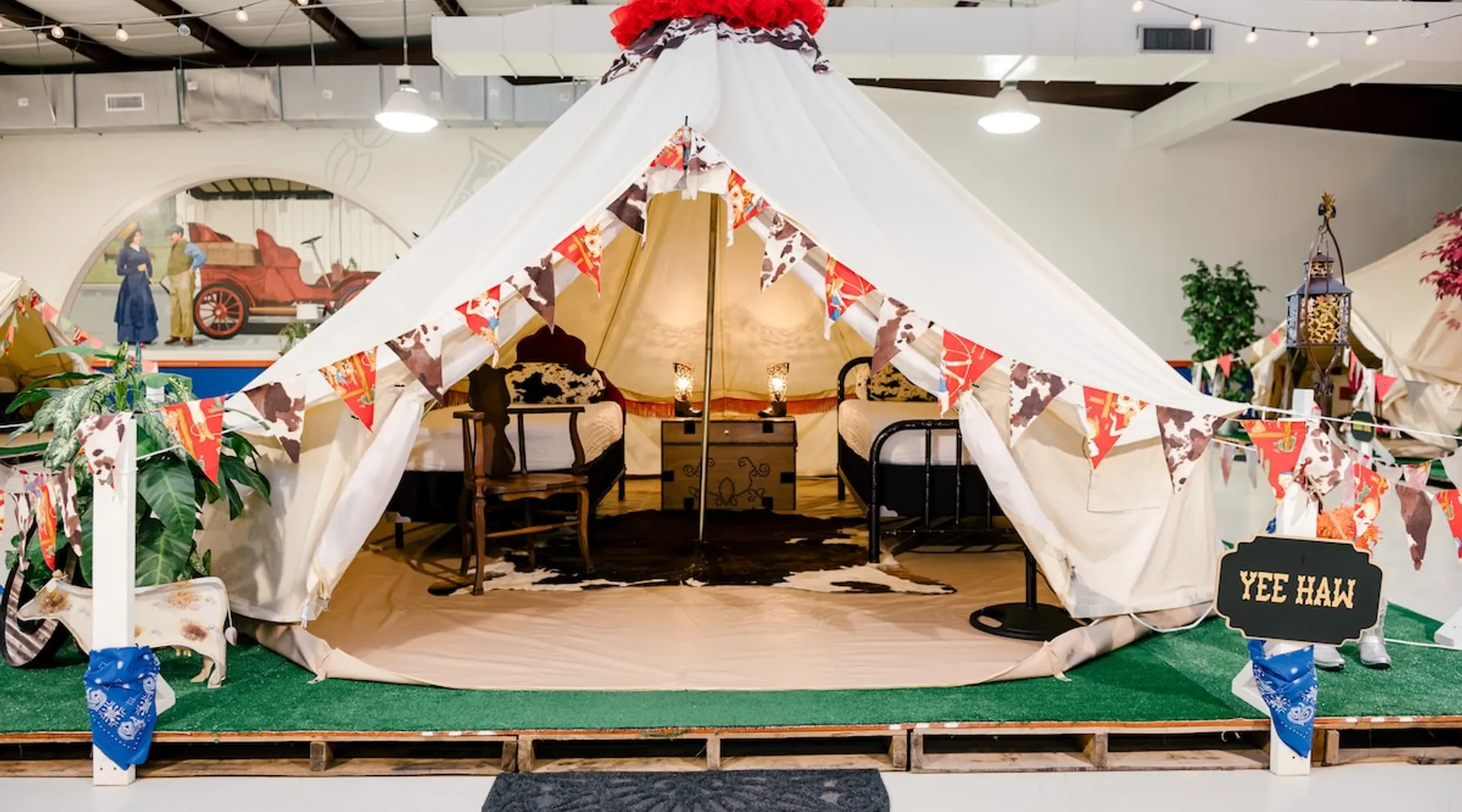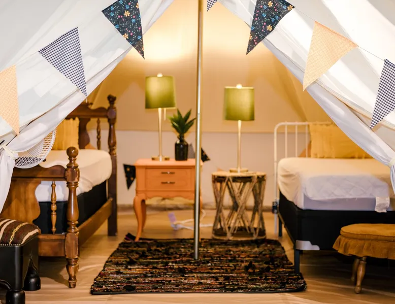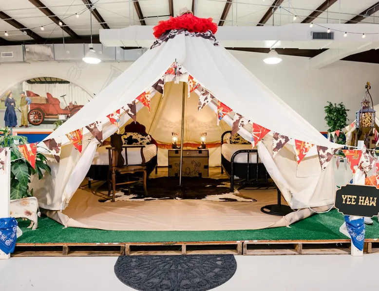 We have 10 furnished teepees inside our 12,000 square foot building. Each teepee sleeps two, so the entire building sleeps up to 20 guests. As our guests, you'll have access to a full size fridge, large sink, microwave, Keurig coffee makers, outdoor grill and a huge lobby area. Pack like you're going camping and BYOB, bring your own bedding! Rental is available upon request. Our place is good for couples, families (with kids), and big groups.