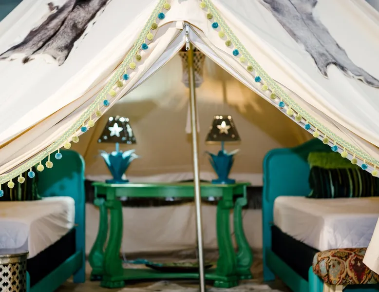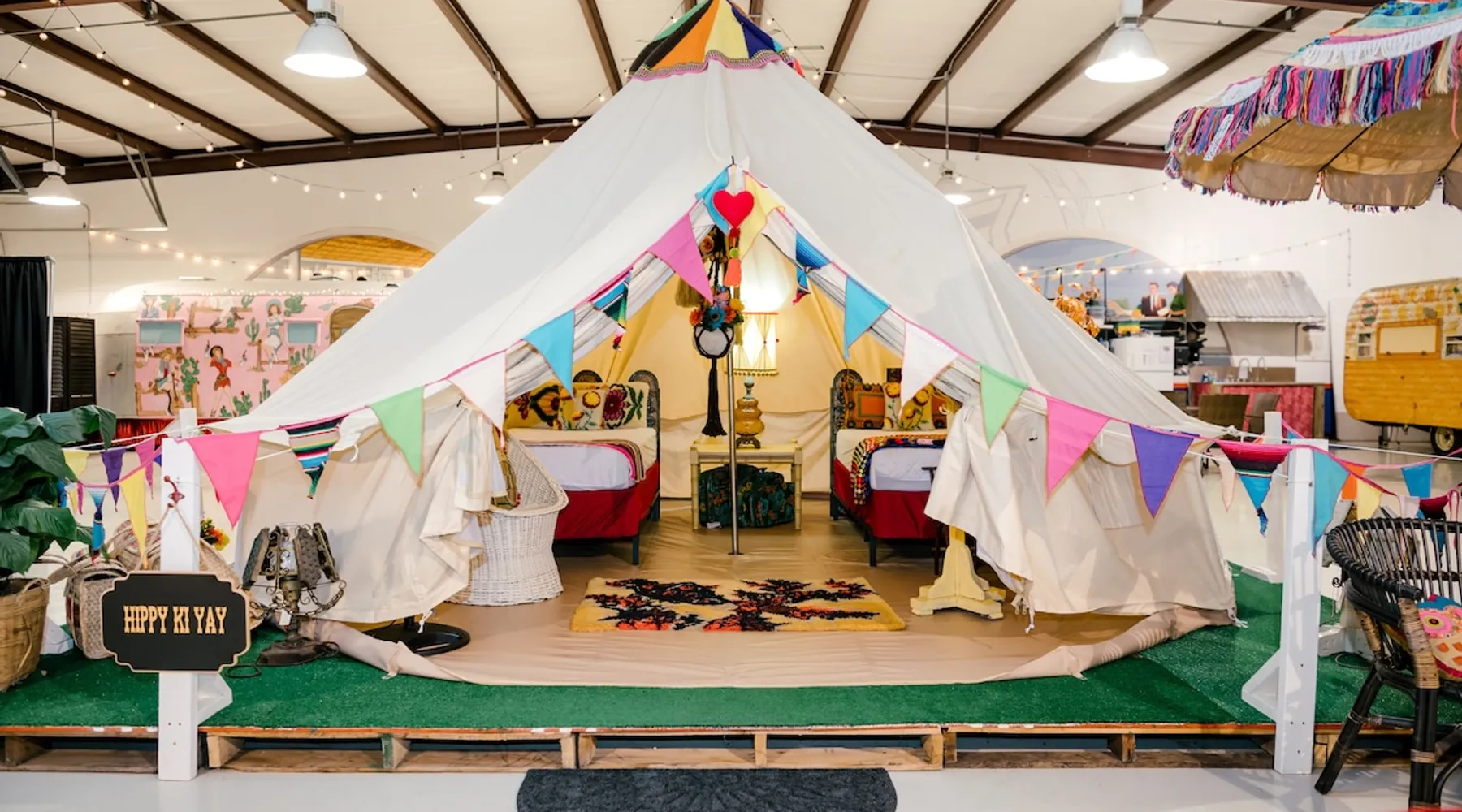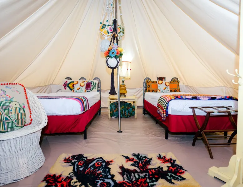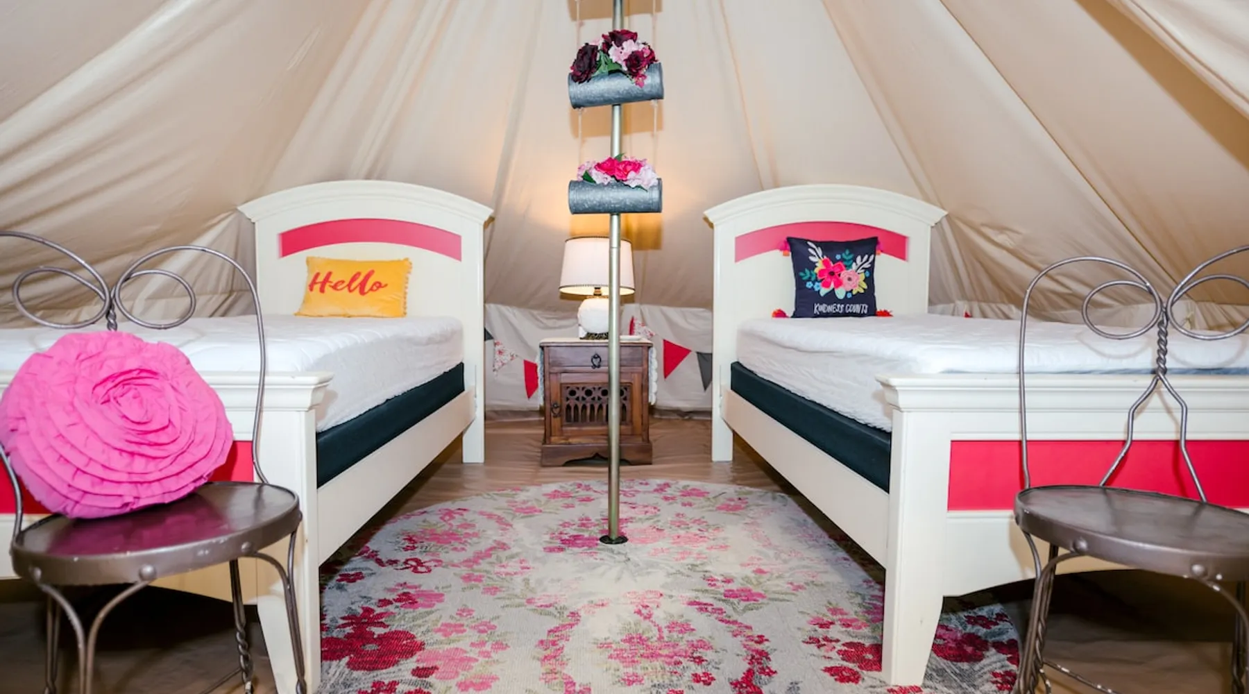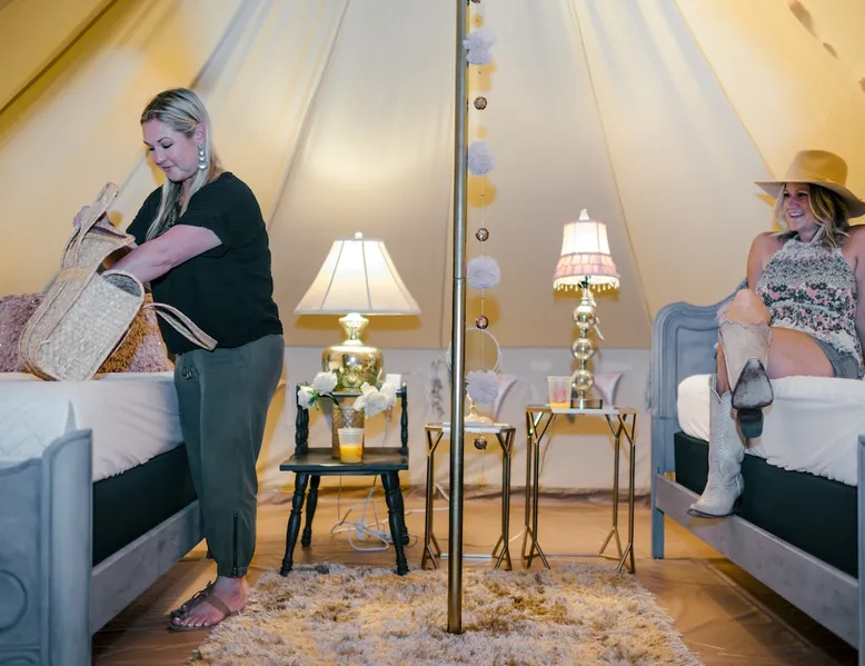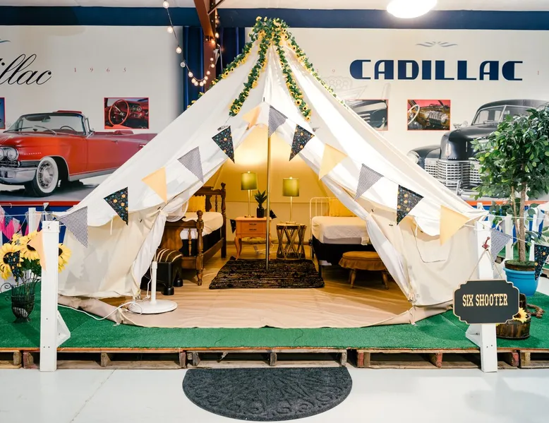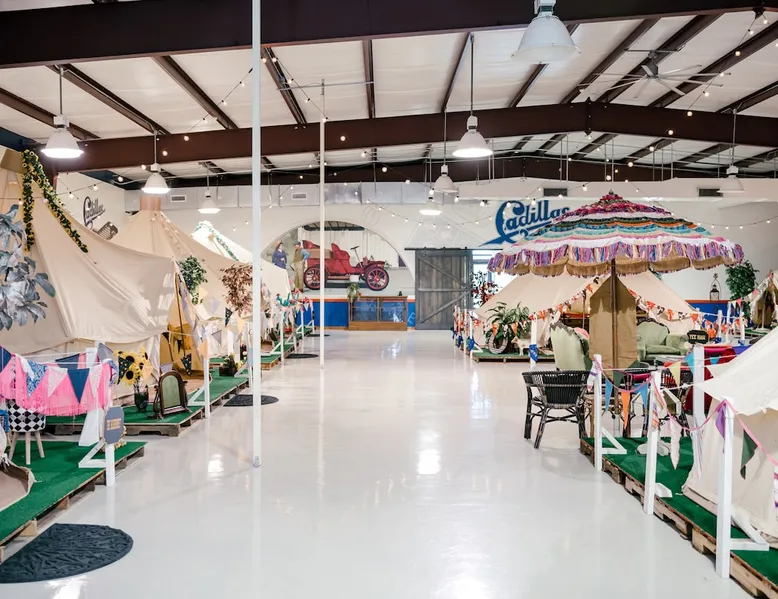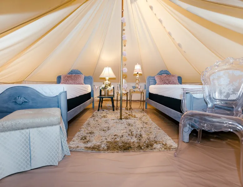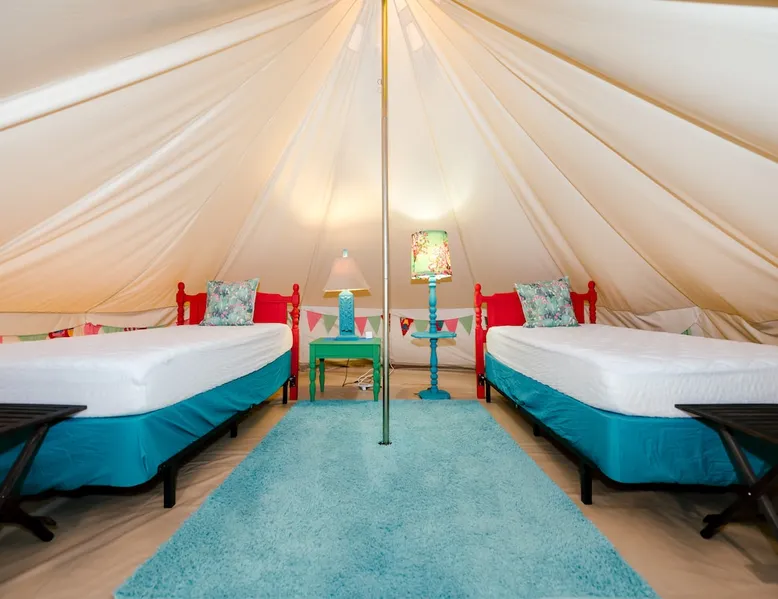 We have 10 furnished teepees inside our 12,000 square foot building. Each teepee sleeps two, so the entire building sleeps up to 20 guests. As our guests, you'll have access to a full size fridge, large sink, microwave, Keurig coffee makers, outdoor grill and a huge lobby area. Pack like you're going camping and BYOB, bring your own bedding! Rental is available upon request. Our place is good for couples, families (with kids), and big groups.