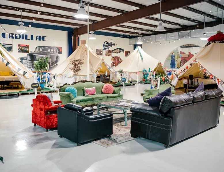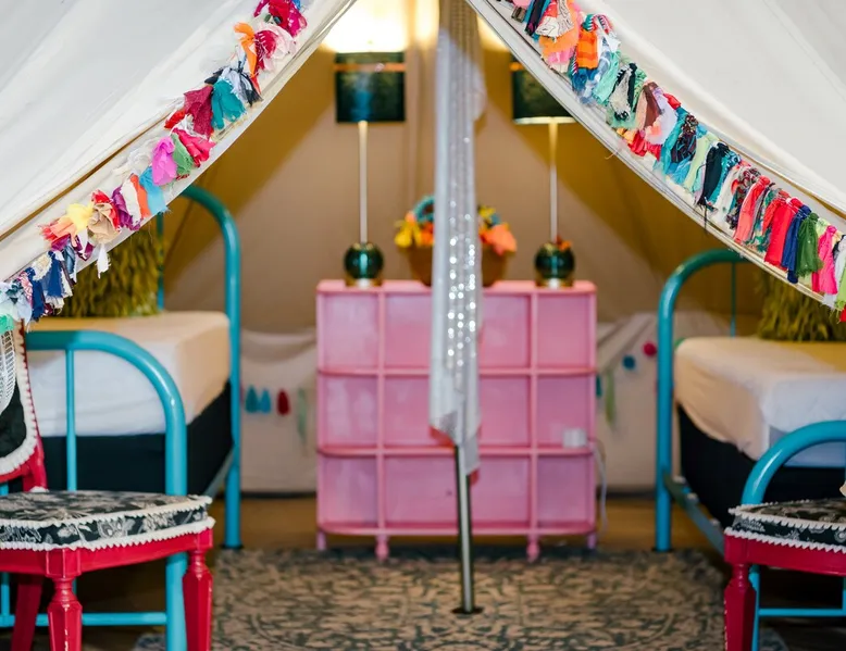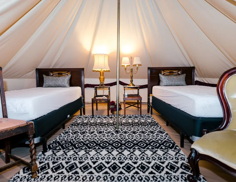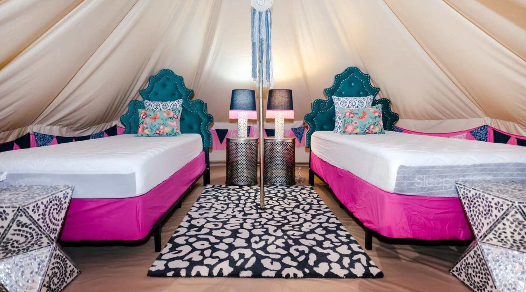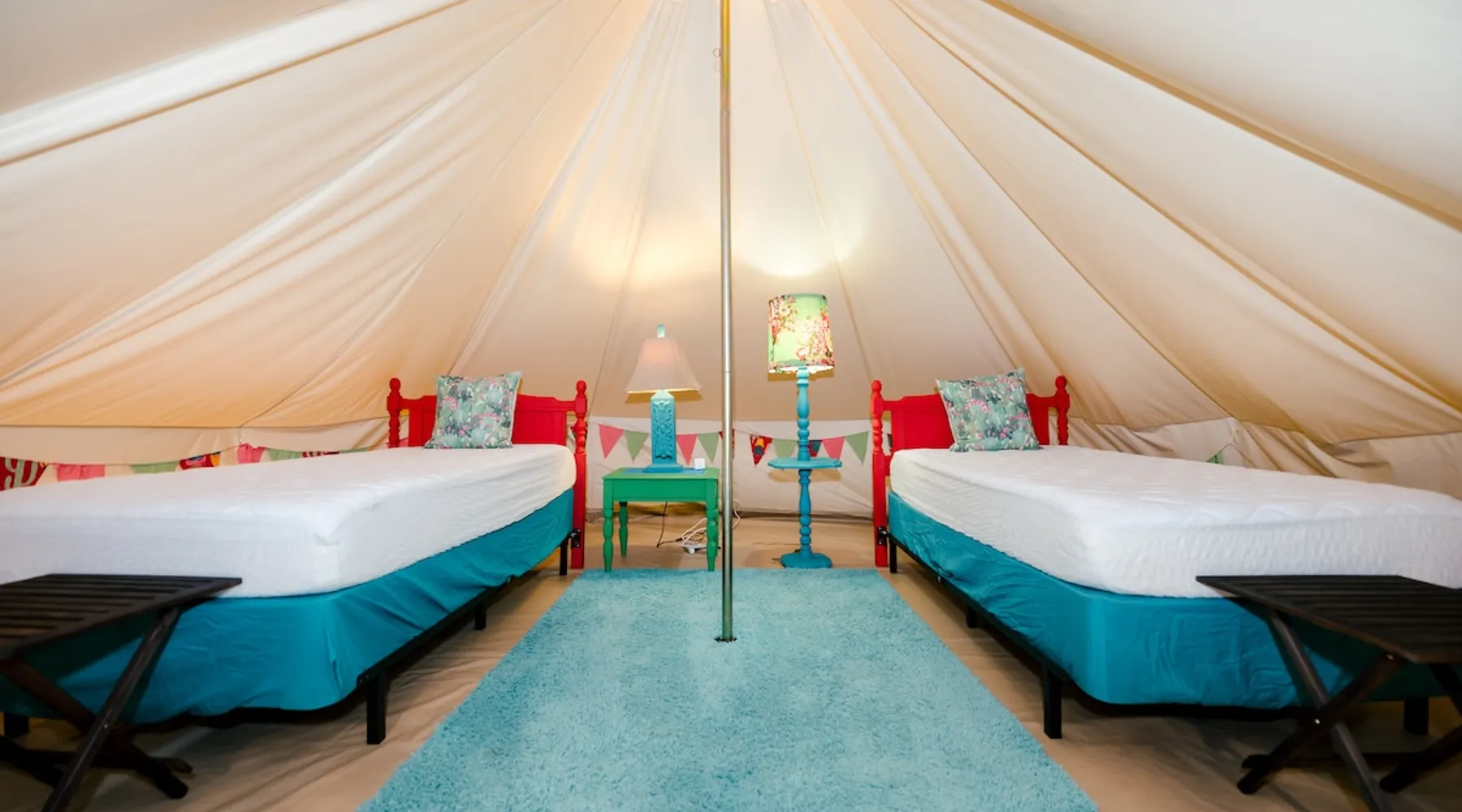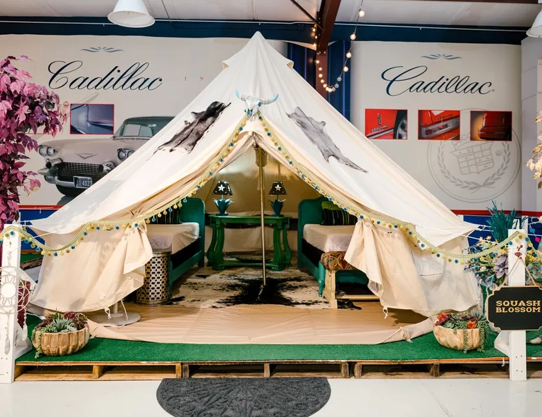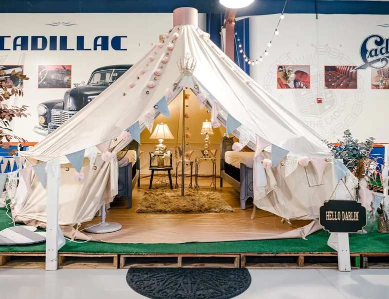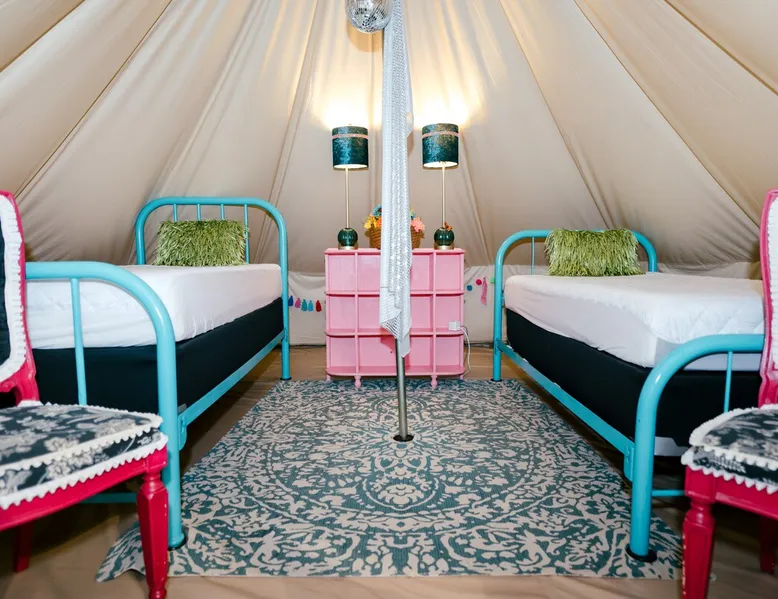 We have 10 furnished teepees inside our 12,000 square foot building. Each teepee sleeps two, so the entire building sleeps up to 20 guests. As our guests, you'll have access to a full size fridge, large sink, microwave, Keurig coffee makers, outdoor grill and a huge lobby area. Pack like you're going camping and BYOB, bring your own bedding! Rental is available upon request. Our place is good for couples, families (with kids), and big groups.