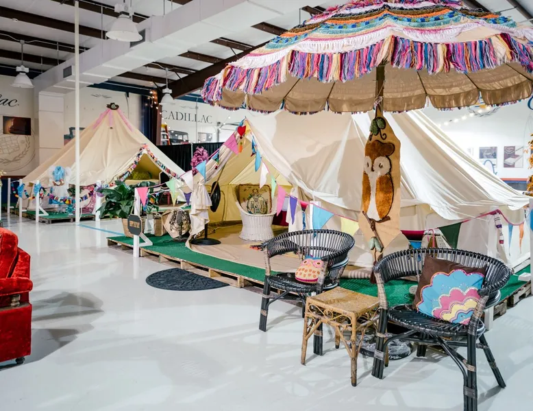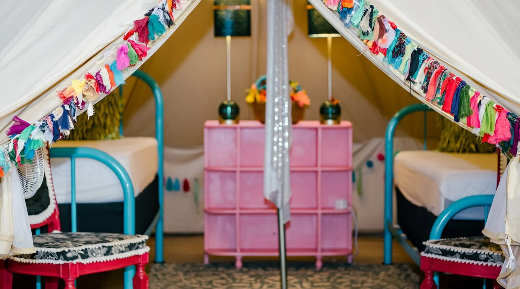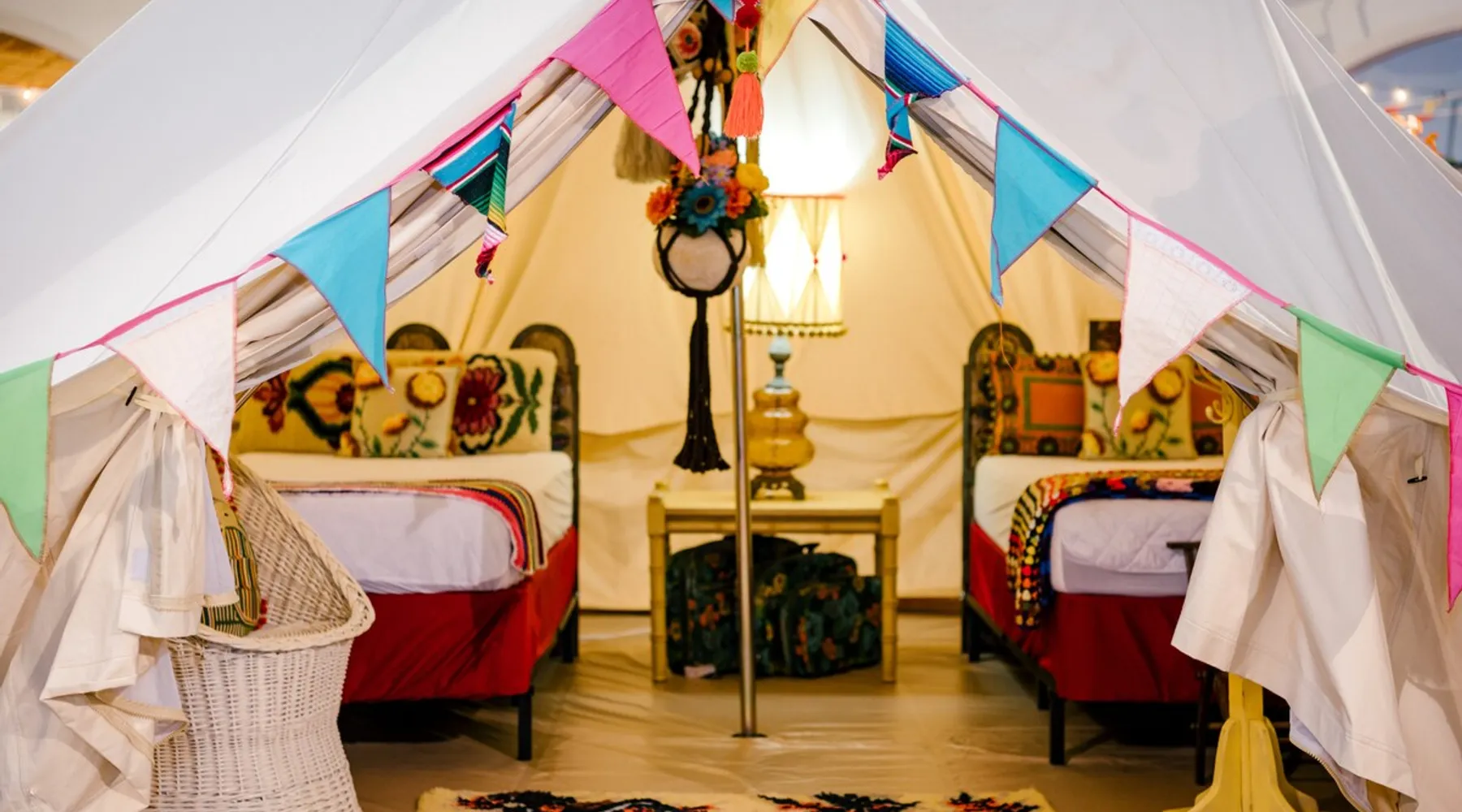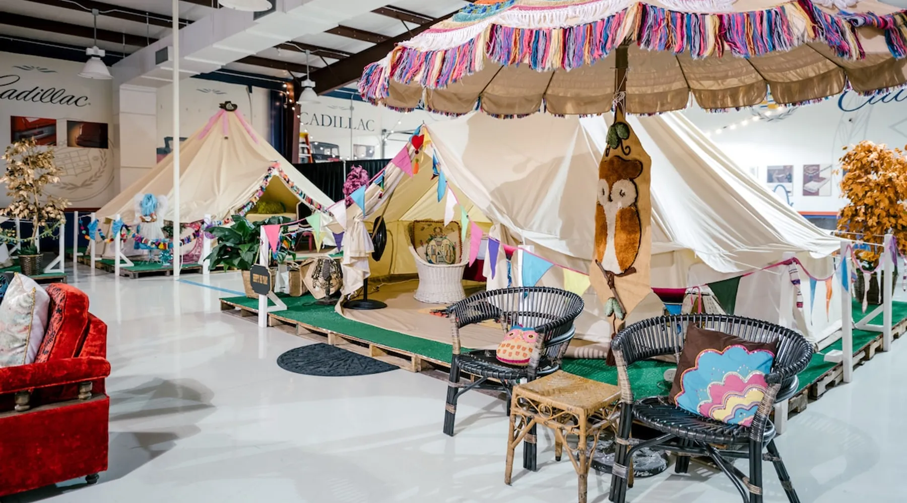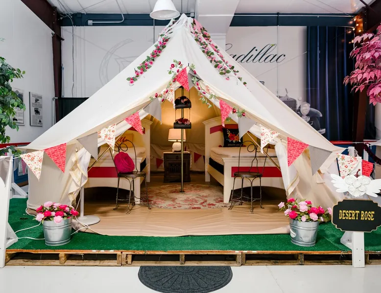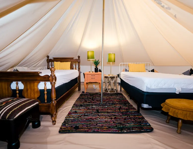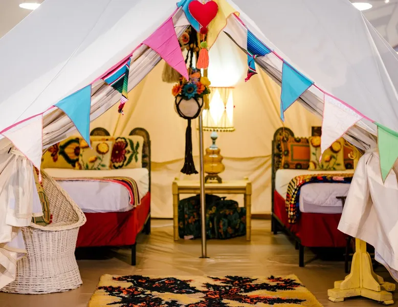 We have 10 furnished teepees inside our 12,000 square foot building. Each teepee sleeps two, so the entire building sleeps up to 20 guests. As our guests, you'll have access to a full size fridge, large sink, microwave, Keurig coffee makers, outdoor grill and a huge lobby area. Pack like you're going camping and BYOB, bring your own bedding! Rental is available upon request. Our place is good for couples, families (with kids), and big groups.