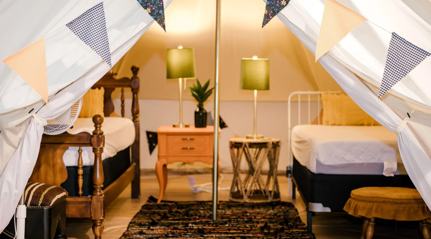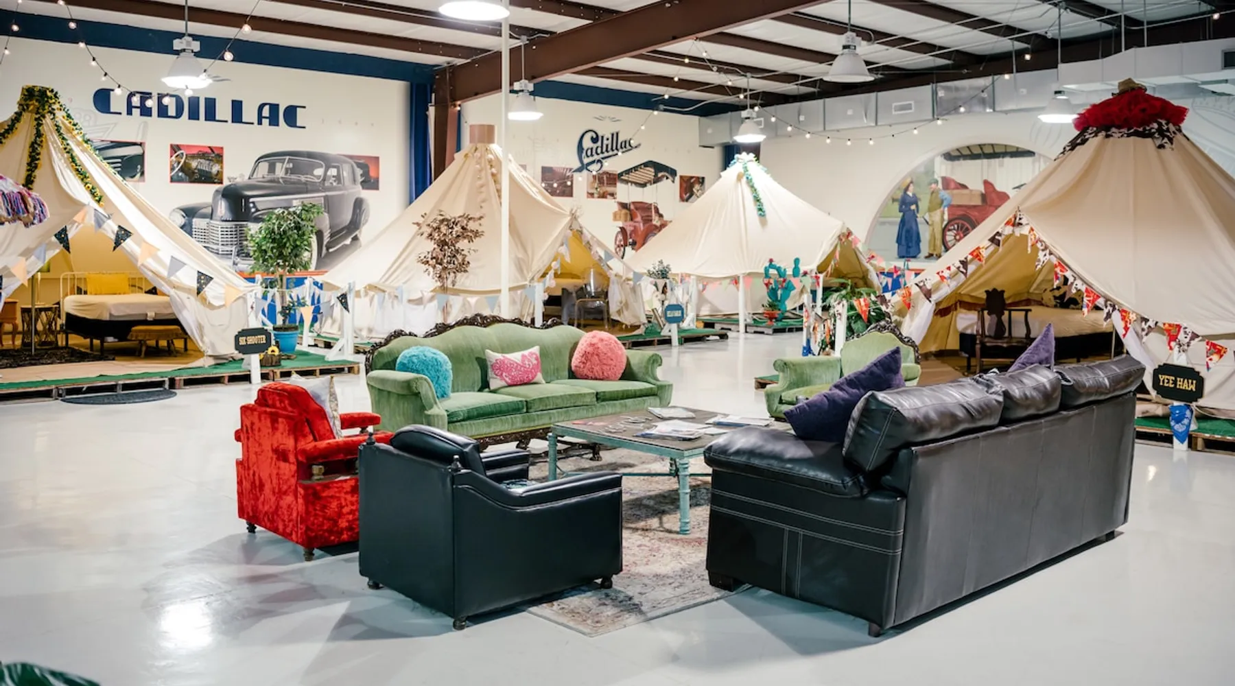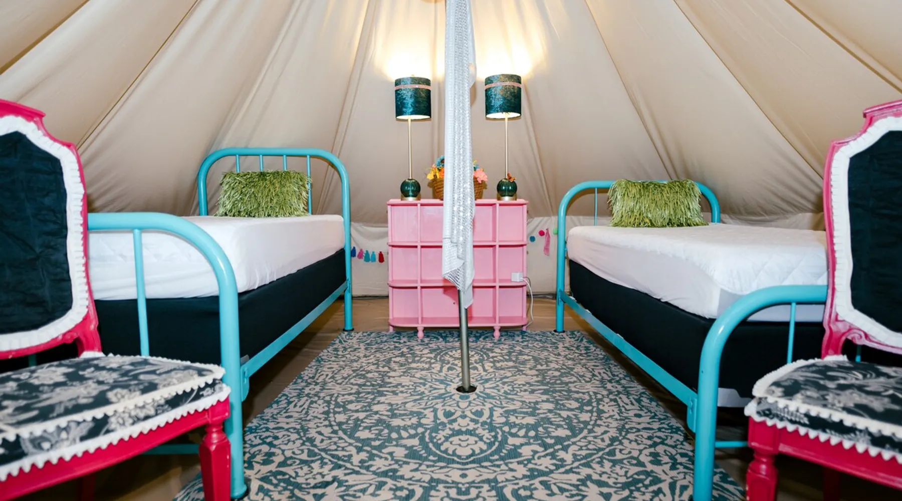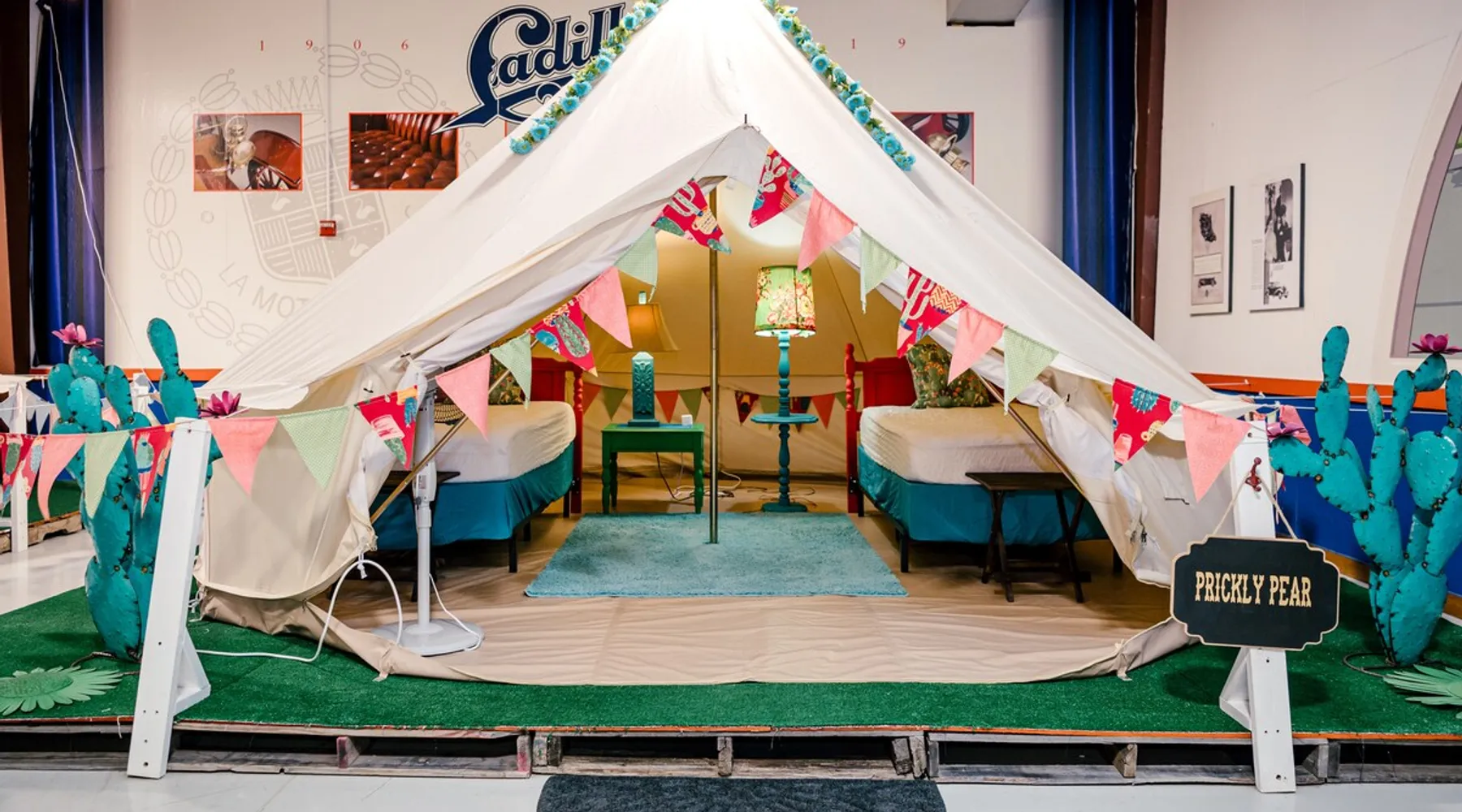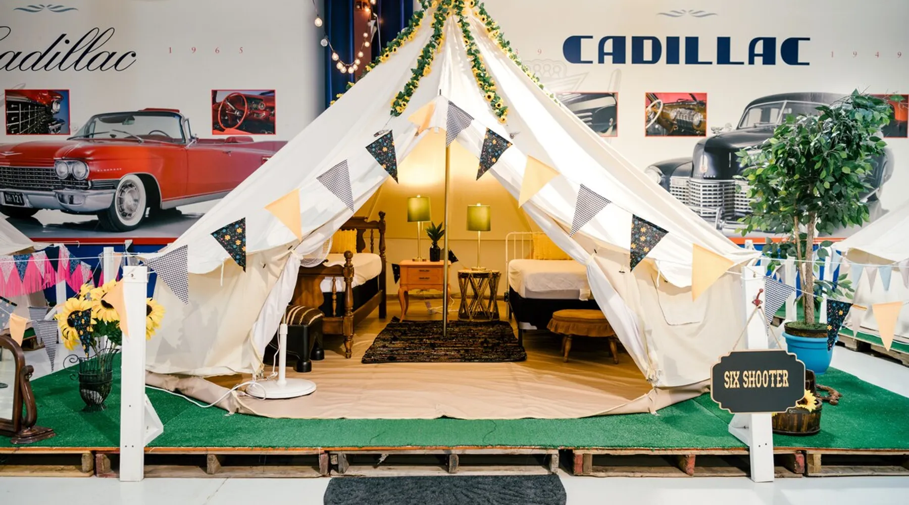 We have 10 furnished teepees inside our 12,000 square foot building. Each teepee sleeps two, so the entire building sleeps up to 20 guests. As our guests, you'll have access to a full size fridge, large sink, microwave, Keurig coffee makers, outdoor grill and a huge lobby area. Pack like you're going camping and BYOB, bring your own bedding! Rental is available upon request. Our place is good for couples, families (with kids), and big groups.