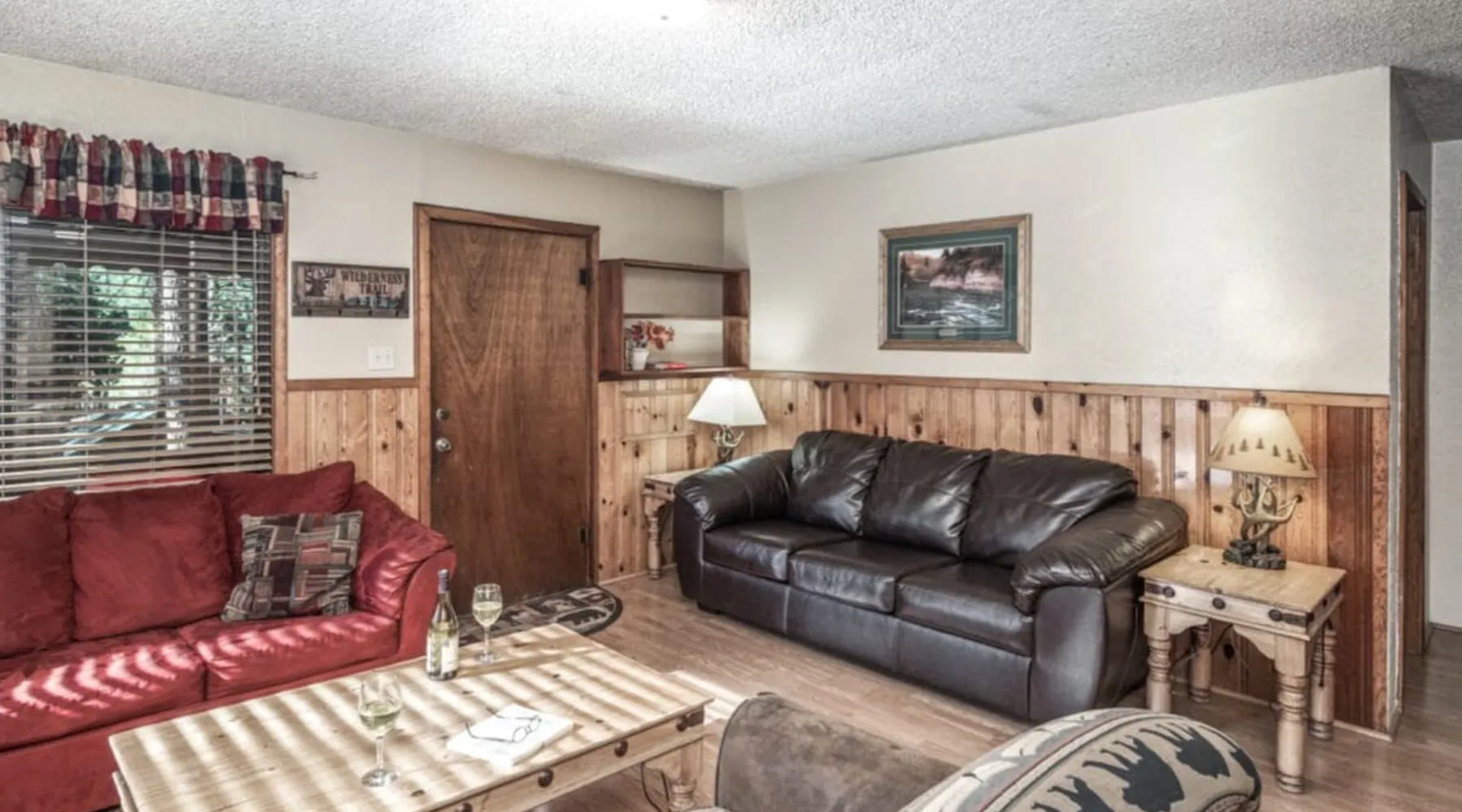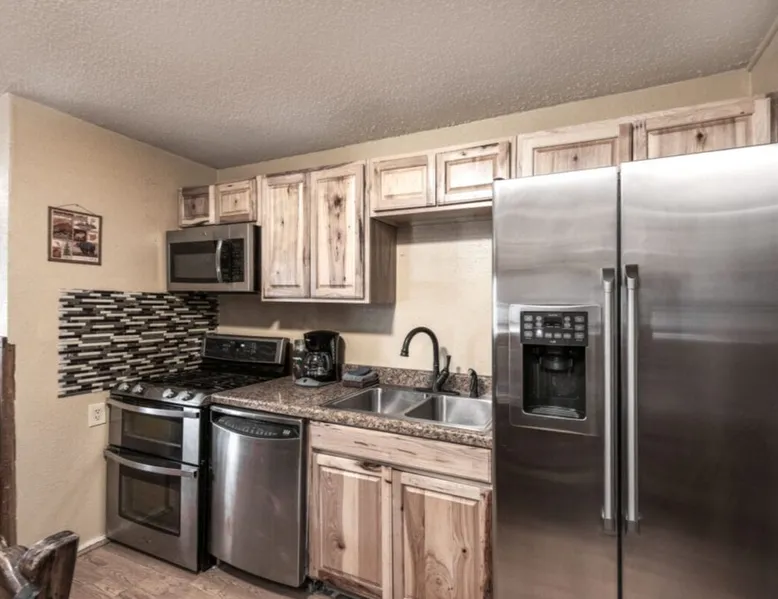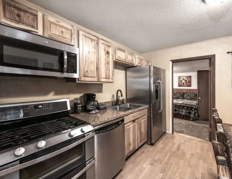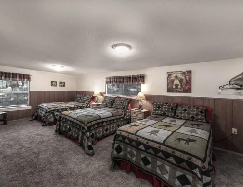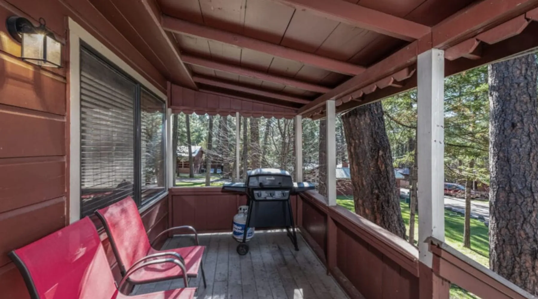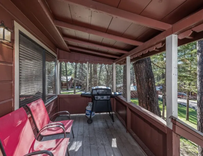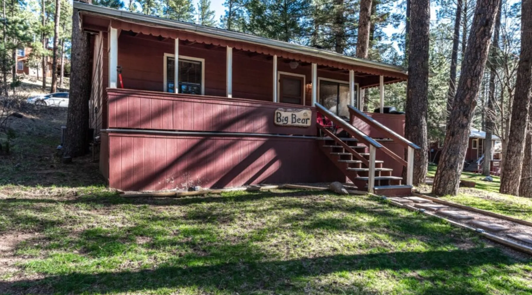 "Big Bear Cabin" - Located at Canyon Cabins (Historic Upper Canyon) - The one with the green space and gazebo! Check out Canyon's gazebo with fire table and chairs! Cozy 3 bedroom cabin - Sleeps 10: 2 King beds, 3 double beds 2 full bathrooms Full Chef's Kitchen, Central AC, Gas Furnace, Electric Fireplace Huge covered Deck with gas grill (we supply the propane!), table and chairs + picnic table The space Big Bear is one of 10 popular cabins at Canyon Cabins. Canyon cabins is in a prime location in the Upper Canyon, minutes to Midtown and short walks to the River. Canyon Cabins has a private green-space with a newly built gazebo (firetable and chairs - AKA "The Zebo"). You should see this place at Christmas!! The gazebo is also rentable for private events such as family reunions, concerts and weddings (come check out our free concerts in the summer!). Multi-cabin rentals at Canyon is also possible for larger groups. Big Bear is the largest cabin at Canyon but perfect for families or a large group with the third bedroom able to sleep up to 6 guests. Amongst the 100' tall Ponderosa Pines you will be so happy you stayed here especially with the wildlife that the green space attracts. Not a day goes by where a deer isn't spotted having a snack in this area. Packed with everything you need from a full chef's kitchen, 2x King beds, large Roku TV for streaming, Huge covered deck with gas grill and furniture. This is one of the most popular locations at Canyon as the deck overlooks the green space nicely. This location is often rented by large groups along with some smaller cabins at Canyon Cabins as it is perfect for the central location for cooking and gathering. Other things to note pet friendly for a fee - we will not accommodate loud or aggressive dogs