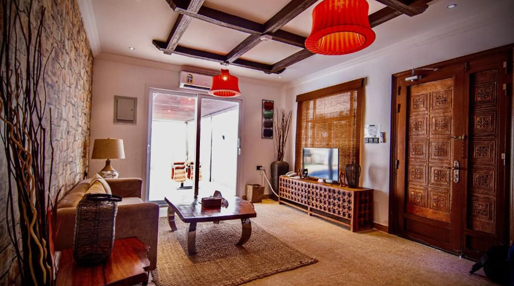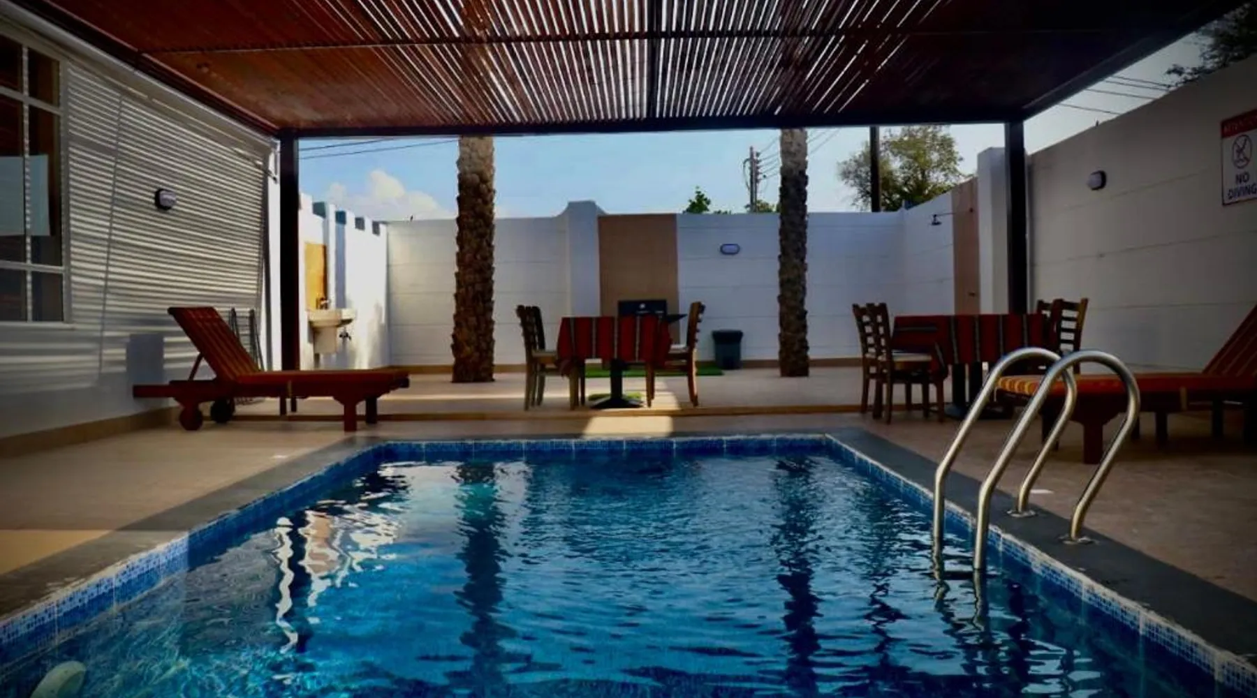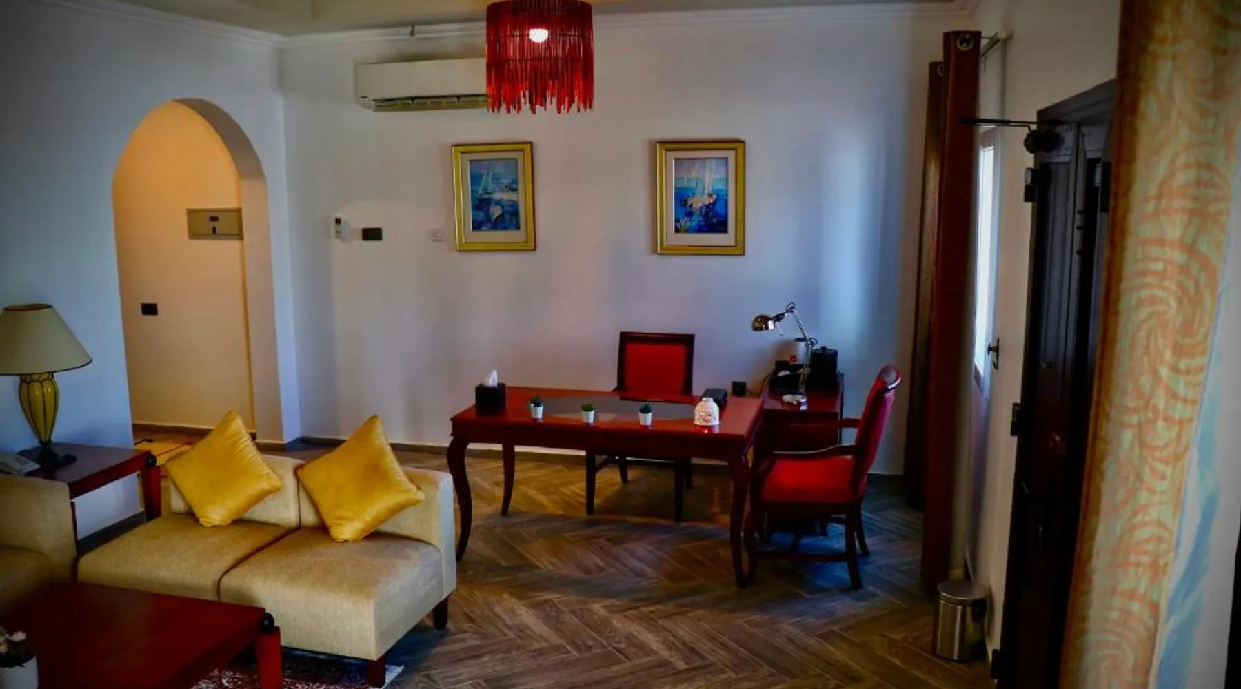 Comfortable Accommodations: Coastline Resort in Al-Musannah offers family rooms with air-conditioning, private bathrooms, and modern amenities. Each room includes a mini-bar, flat-screen TV, and free WiFi, ensuring a pleasant stay. Dining Experience: The resort features a family-friendly restaurant serving international cuisine with vegetarian and vegan options. Guests can enjoy breakfast with continental, American, Italian, full English/Irish, and local specialties. Dining areas include traditional, modern, and romantic ambiances. Leisure Facilities: The resort offers a swimming pool with a view, outdoor fireplace, and children’s playground. Additional amenities include an outdoor seating area, electric vehicle charging station, and bicycle parking. Free on-site parking is available for guests. Convenient Location: Located 50 mi from Muscat International Airport, the resort provides easy access to local attractions. Highly rated for its attentive staff, clean rooms, and excellent swimming pool, Coastline Resort ensures a memorable stay. The pool with a view and fireplace are the special features of this villa. Boasting a private entrance, this air-conditioned villa includes 1 living room, 2 separate bedrooms and 2 bathrooms with a shower and a bidet. Featuring a terrace with garden views, this villa also offers soundproof walls and a flat-screen TV with streaming services. The unit has 2 beds.